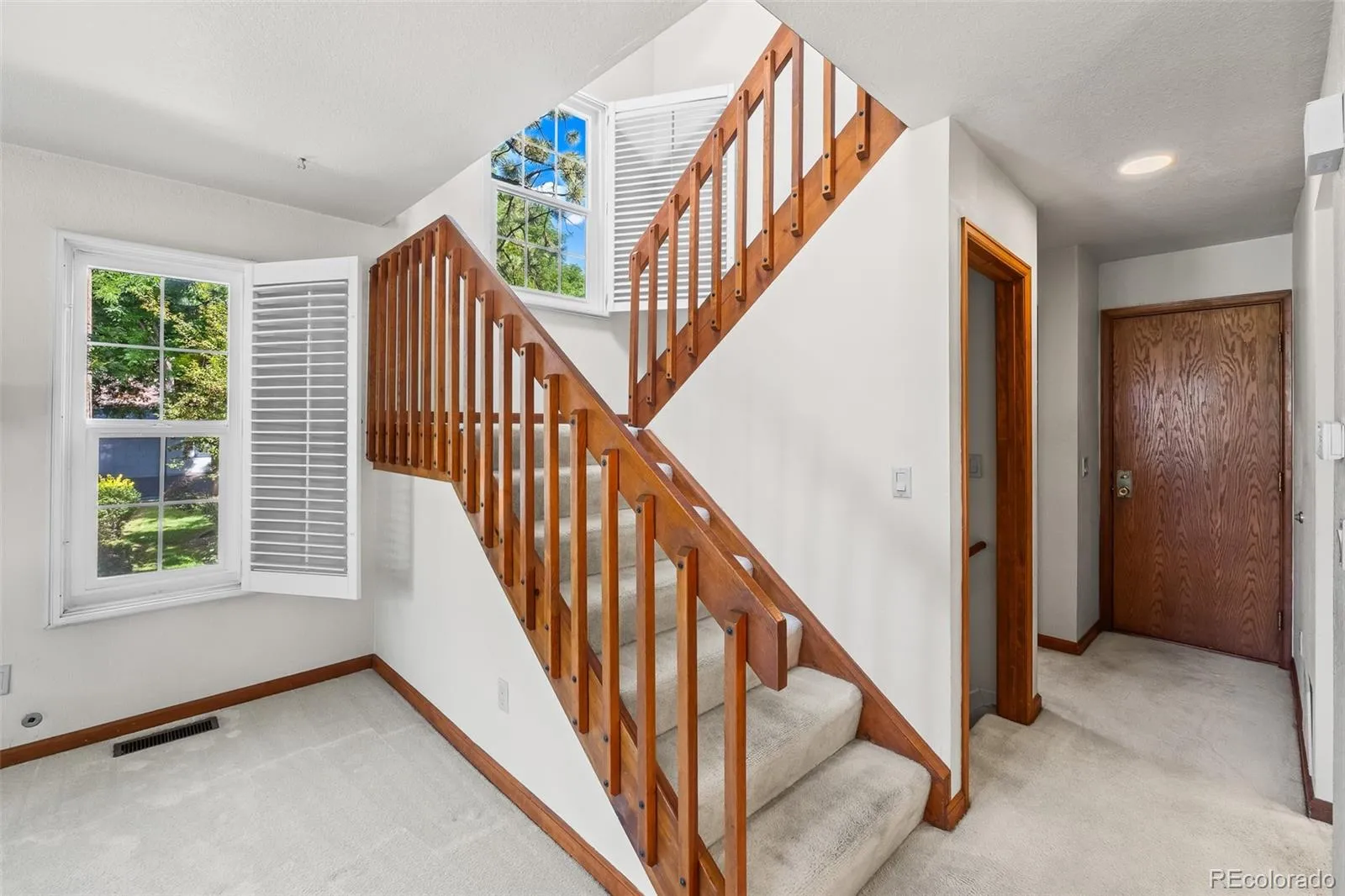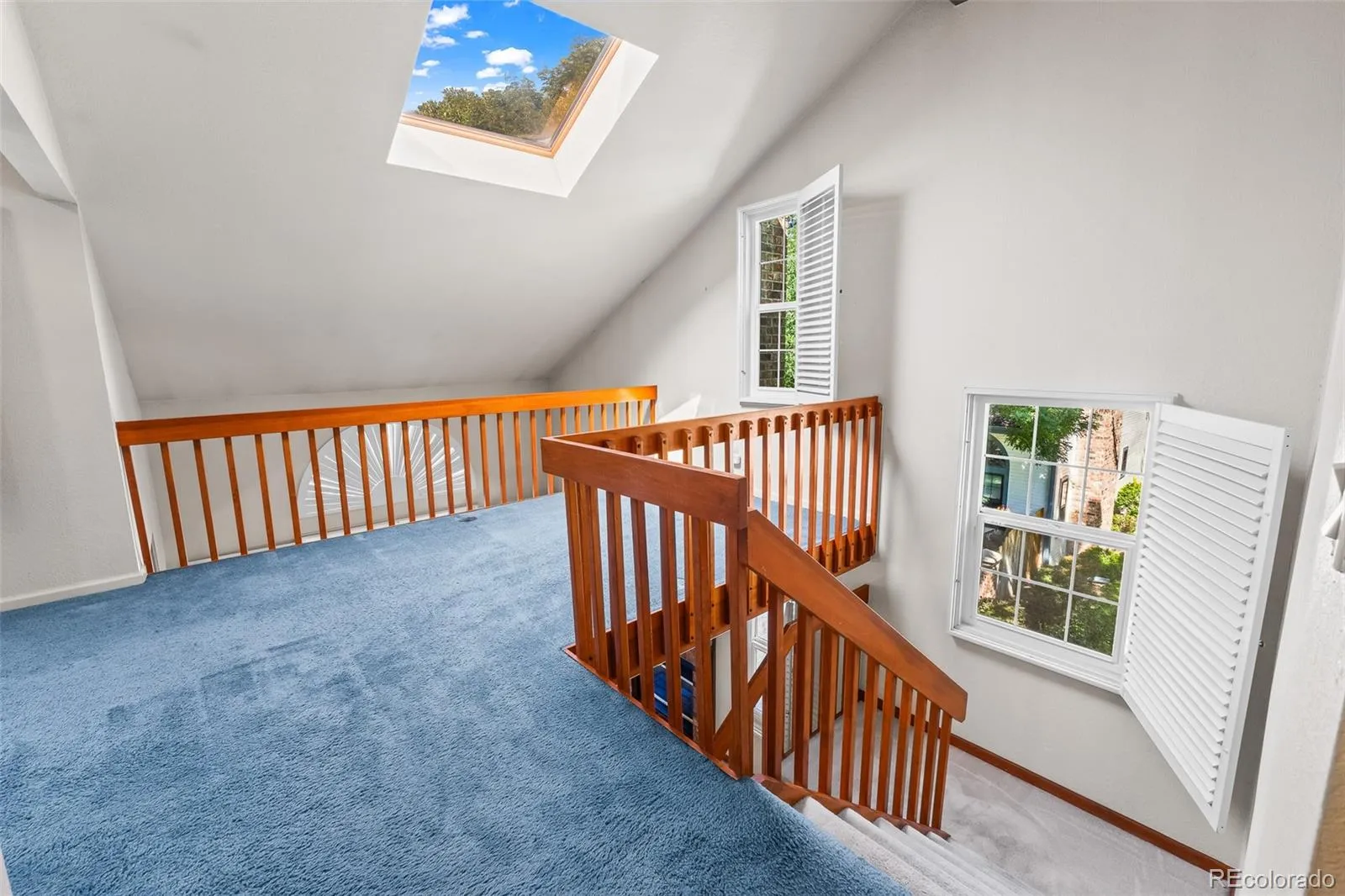 Welcome to the Village at Littleton — where comfort meets convenience in one of Colorado’s most sought-after communities. This beautifully maintained end unit offers 3 spacious bedrooms, 4 bathrooms, a finished basement, and a 2-car attached garage. Start your day or unwind in the evening on the private deck with a retractable awning soaking in stunning Colorado sunsets in peaceful privacy. Step inside to an open, light-filled floor plan featuring a welcoming living room with a cozy fireplace, newer windows, and elegant shutters that frame natural light throughout. The dining area flows seamlessly into a well-appointed kitchen with abundant cabinetry, generous counter space, and all the essentials — stove, dishwasher, microwave, refrigerator — plus a dedicated workspace for your culinary creativity or daily planning. The main floor also includes a convenient half bath and direct access to the attached 2-car garage — ideal for busy mornings or snowy evenings. Upstairs, a versatile loft awaits — perfect as a home office, gym, or bonus retreat. The primary suite is a true sanctuary with a ceiling fan, ensuite bath, and ample room to relax. one additional bedroom shares a full bath and offer comfort and flexibility for family, guests, or hobbies. The finished basement expands your living space with a bedroom featuring egress windows, a generous office or entertainment zone, a ¾ bath, and a dedicated laundry room.