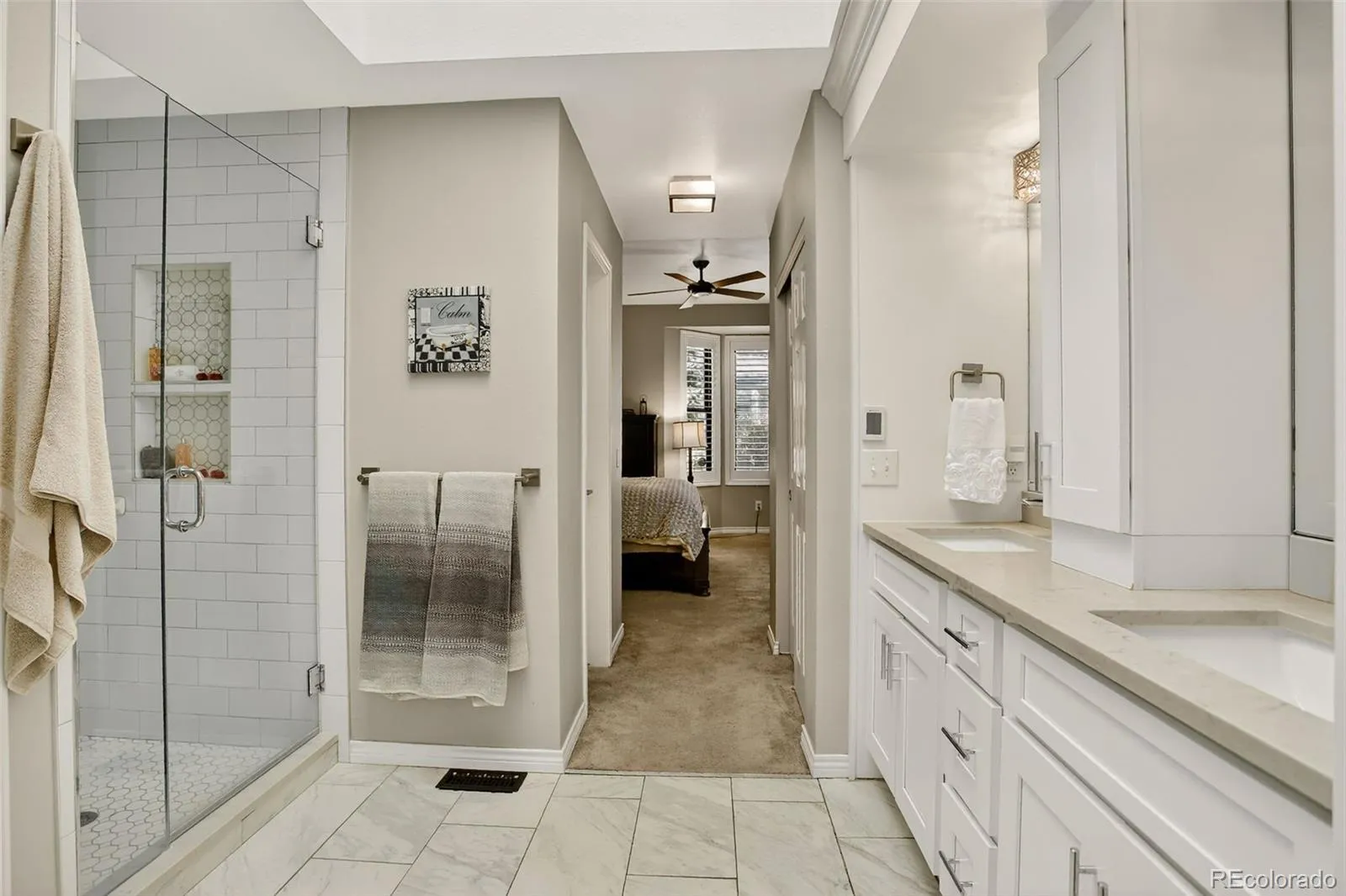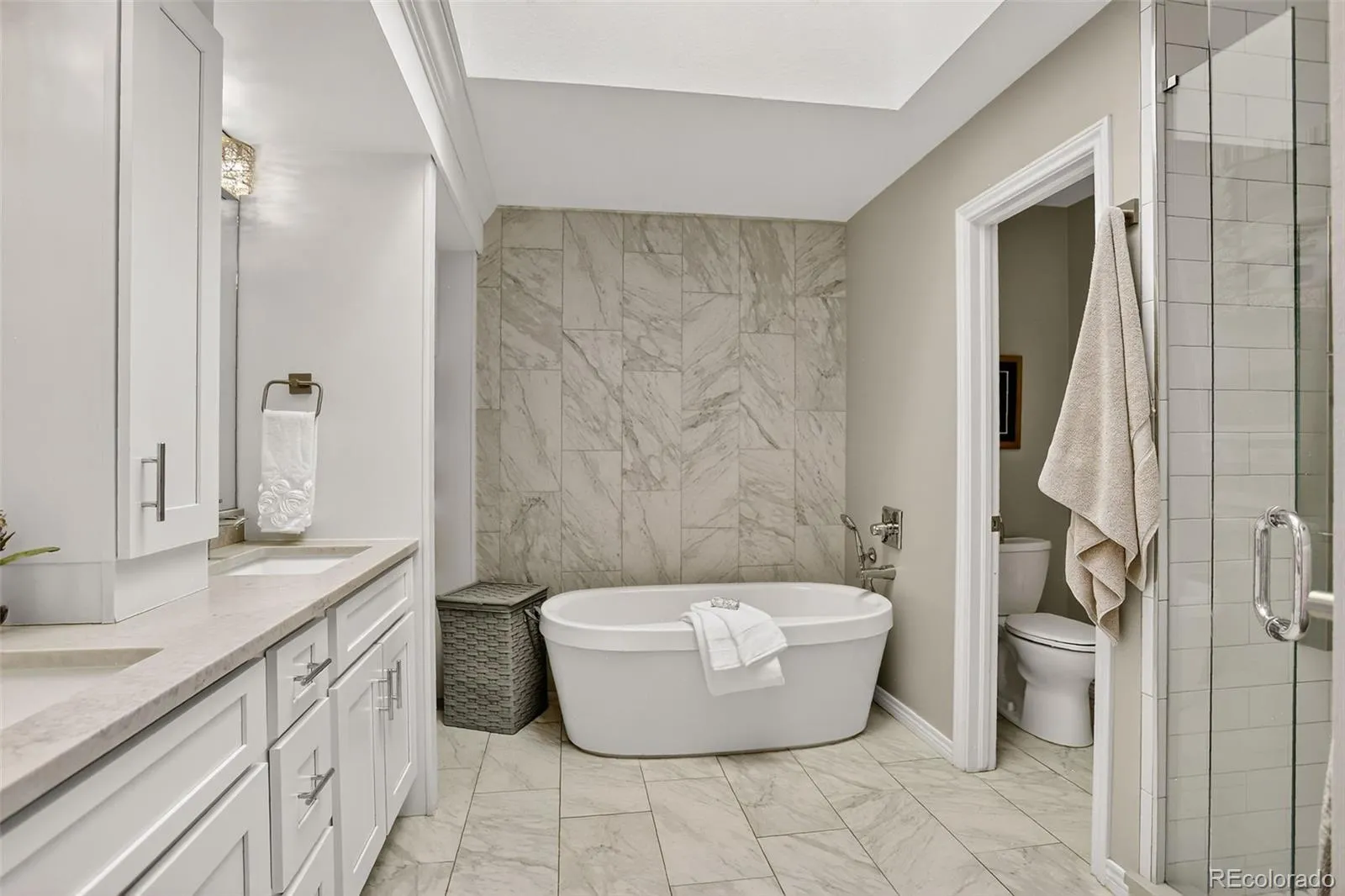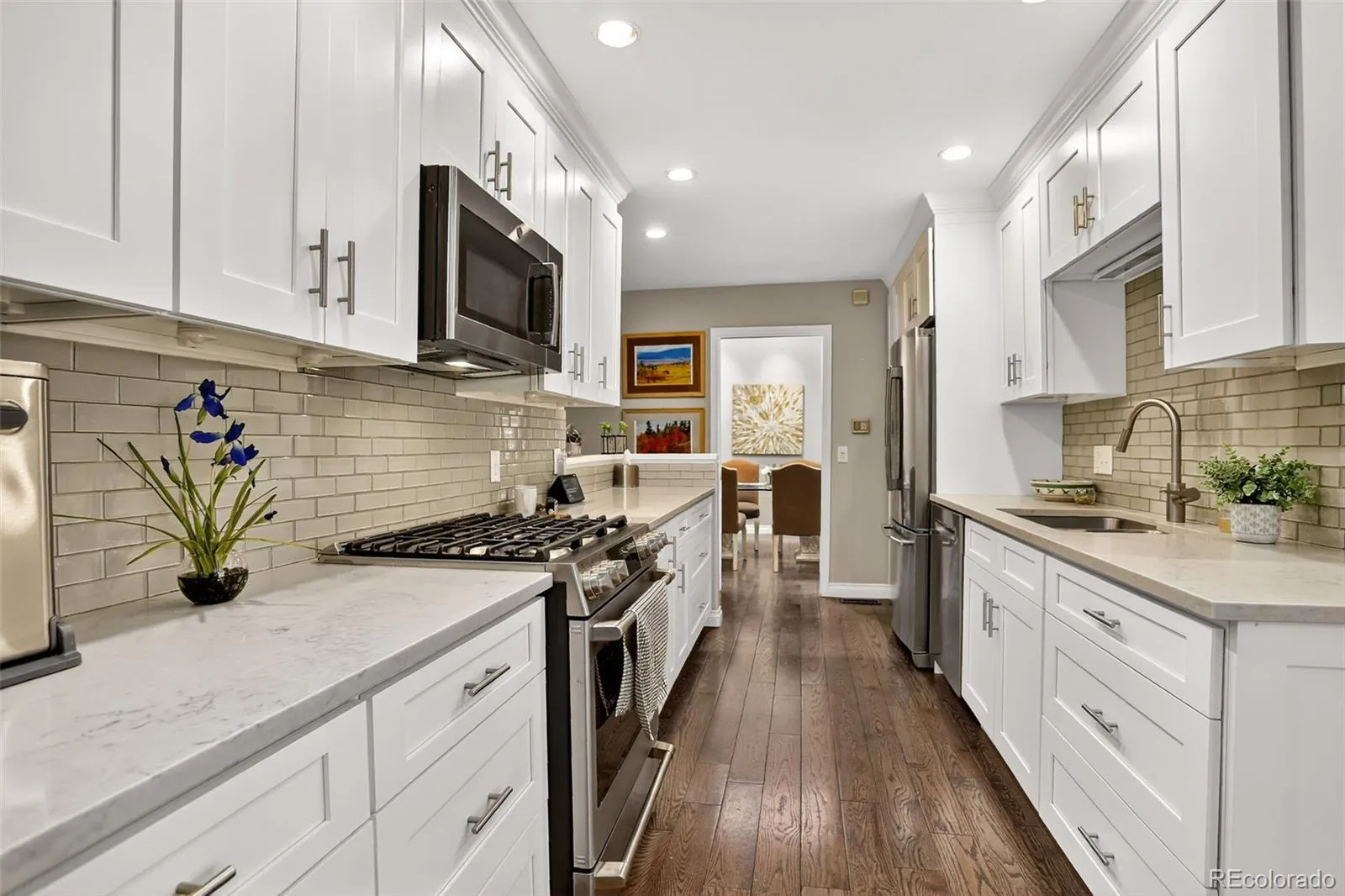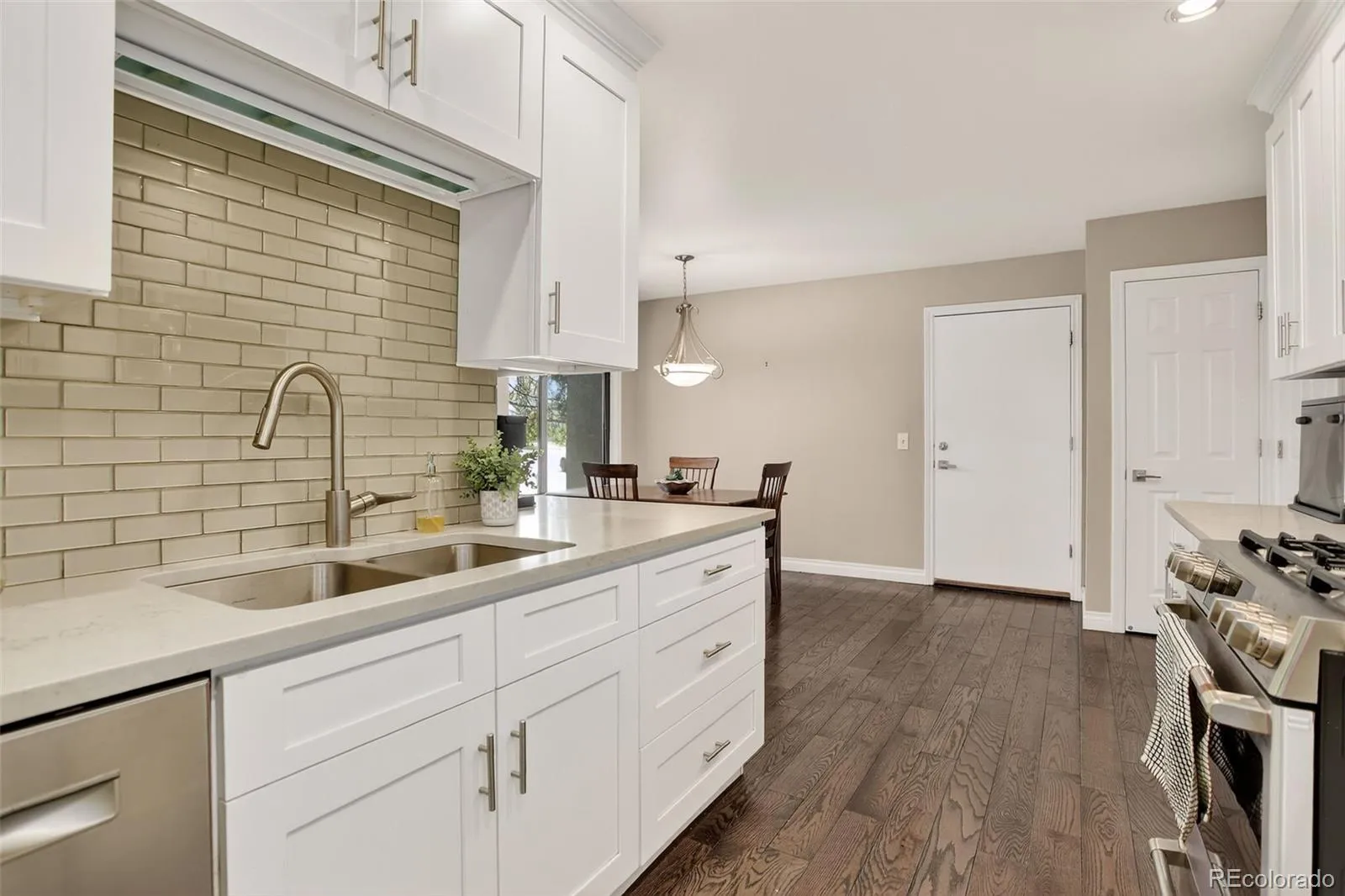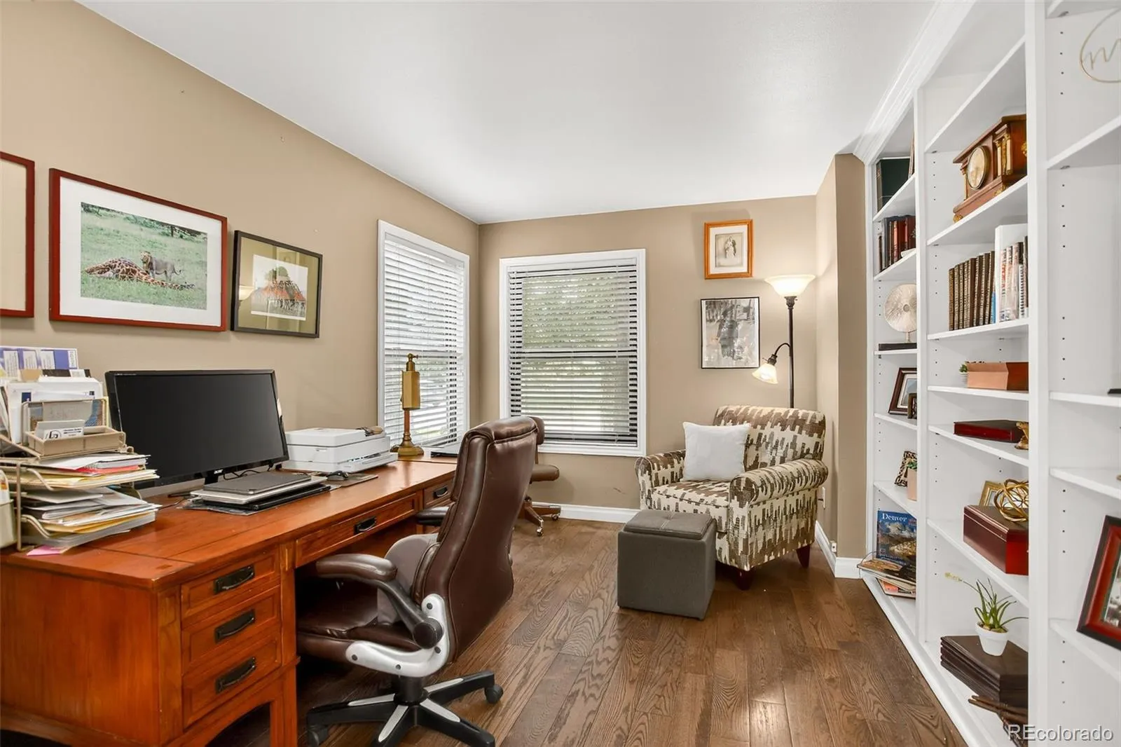 RARE FIND! Your are in luck! These main floor primary bedroom floor plans almost never become available. It is even more rare to find one as beautifully updated as this one. The warm tones of natural hardwood floors and designer colors greet you as you enter into this contemporary home. The southern exposure fills the great room with the loads of natural light that beams through the main floor’s wood shutters. Working from home is enjoyable from the large main floor office featuring custom built-ins and a wonderful calming view of the front yard. Looking for a second bedroom on the main floor? The office easily converts to a bedroom complete with a closet. Wow check out the kitchen! A beautifully designed layout makes this kitchen the focal point of the home. Quartz counter tops, gas range and extra work space makes meal time a breeze. A kitchen nook, an extra large pantry and a laundry area complete the kitchen space. After a long day, retreat to your own luxury style Primary bathroom with deep soak tub and a European glass shower. Take game day to the next level in the basement rec room with a dry bar and an entertainment center. Two bedrooms and a full bath complete the space. Two car attached garage and a large unfinished storage area are an added bonus! Minutes from highway systems and the Cherry Creek Shopping makes this a 10! Showings begin Thursday Sept 25th.