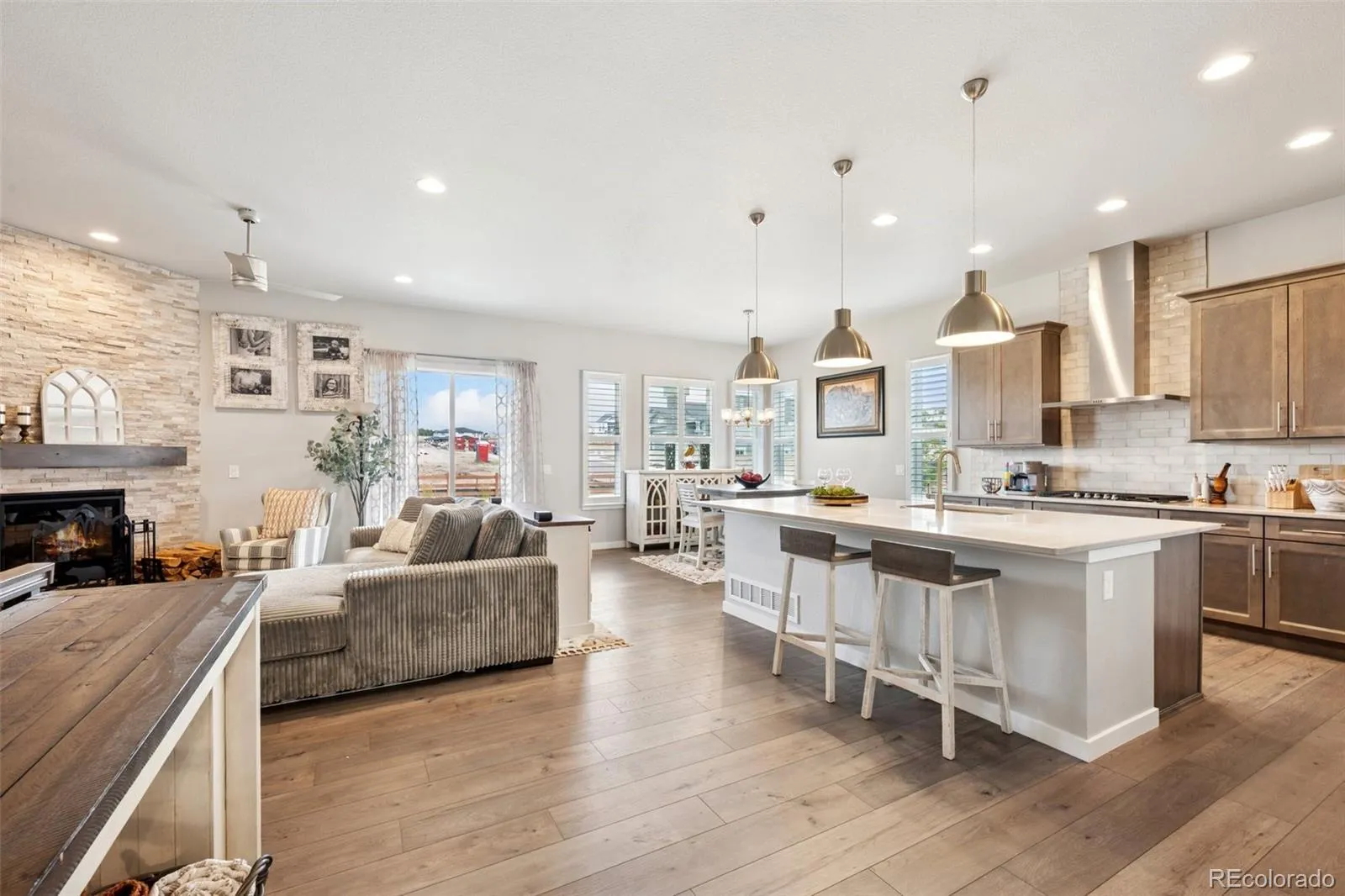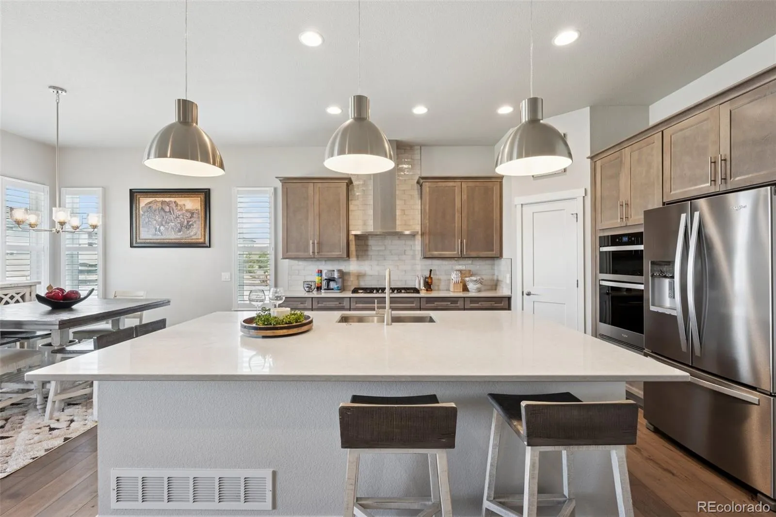 Amazing like new home built by Classic Homes in the Retreat at Timber Ridge! This gorgeous home has plank flooring through the main living areas, 42″ cabinets, stainless hood and gas range, quartz counters and beautiful backsplash! A large kitchen island and open floor plan are ideal for social gatherings! Plantation shutters throughout the home, upgraded lights and horizontal rails at the stairs ! Two bedrooms on the main level! The private master bedroom retreat is an oasis in itself with upgraded carpet, barn door the spa like master bath, upgraded fan and plantation shutters! Some views! The master bath has edgeless glass shower door, quartz counters, a linen closet and large walk in closet! The charming laundry has a sink and space for supplies. Another bedroom on the main level with more upgraded carpet and bath next to it! The basement has 9′ ceilings, wet bar, more plantation shutters and three spacious bedrooms with walk in closets! Two bedrooms adjoin the jack and jill bath! Another hall bath is located near the fifth bedroom! Finished under stair closet and oversized three car garage! Smart package included with Ring doorbell! The huge yard has an extended covered patio, window well covers and is fully fenced and has views to the north. It backs to open space, is near walking trails and on a quiet cul-de-sac! You are going to love living here! Loaded with extras and upgrades!