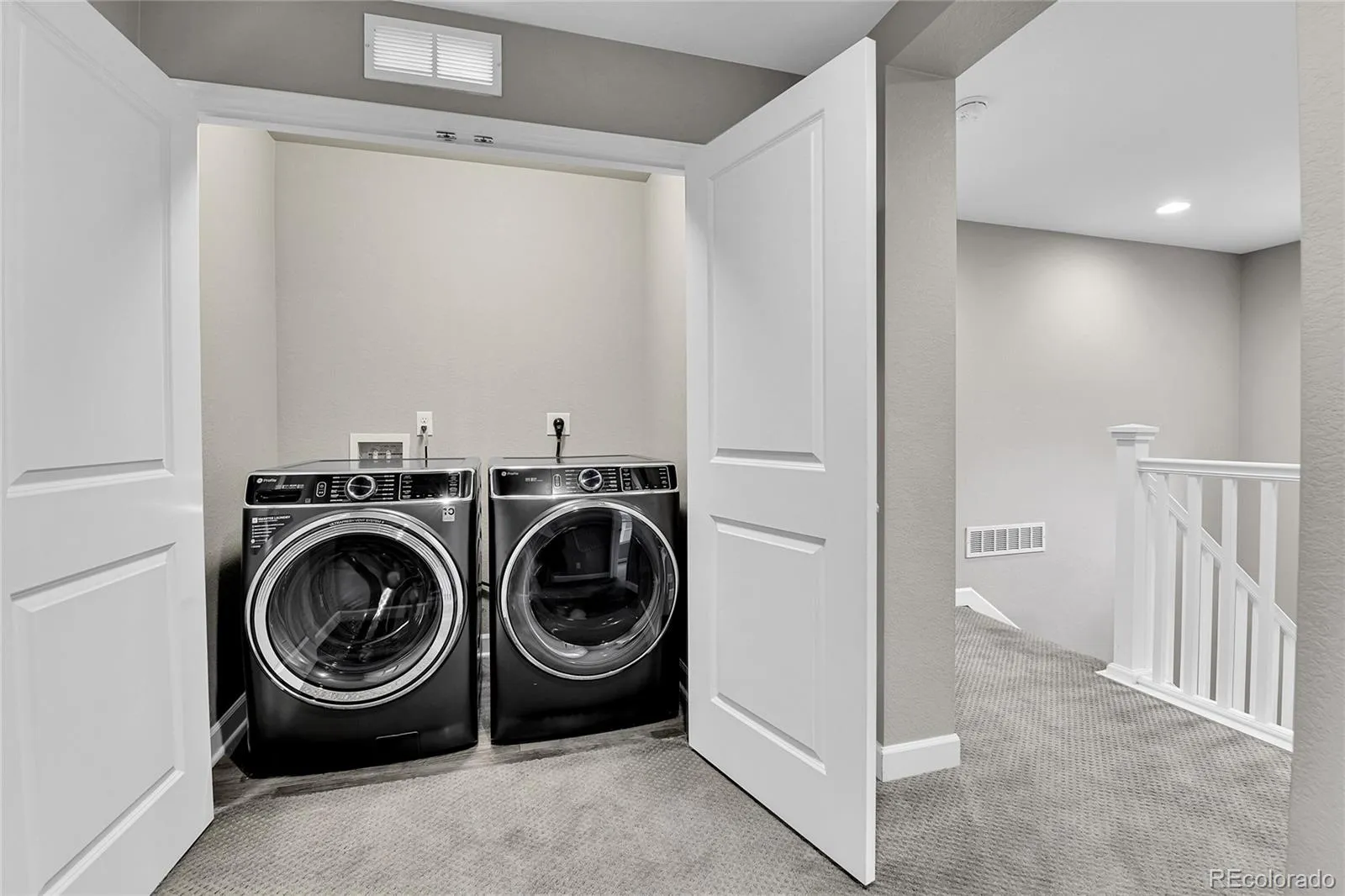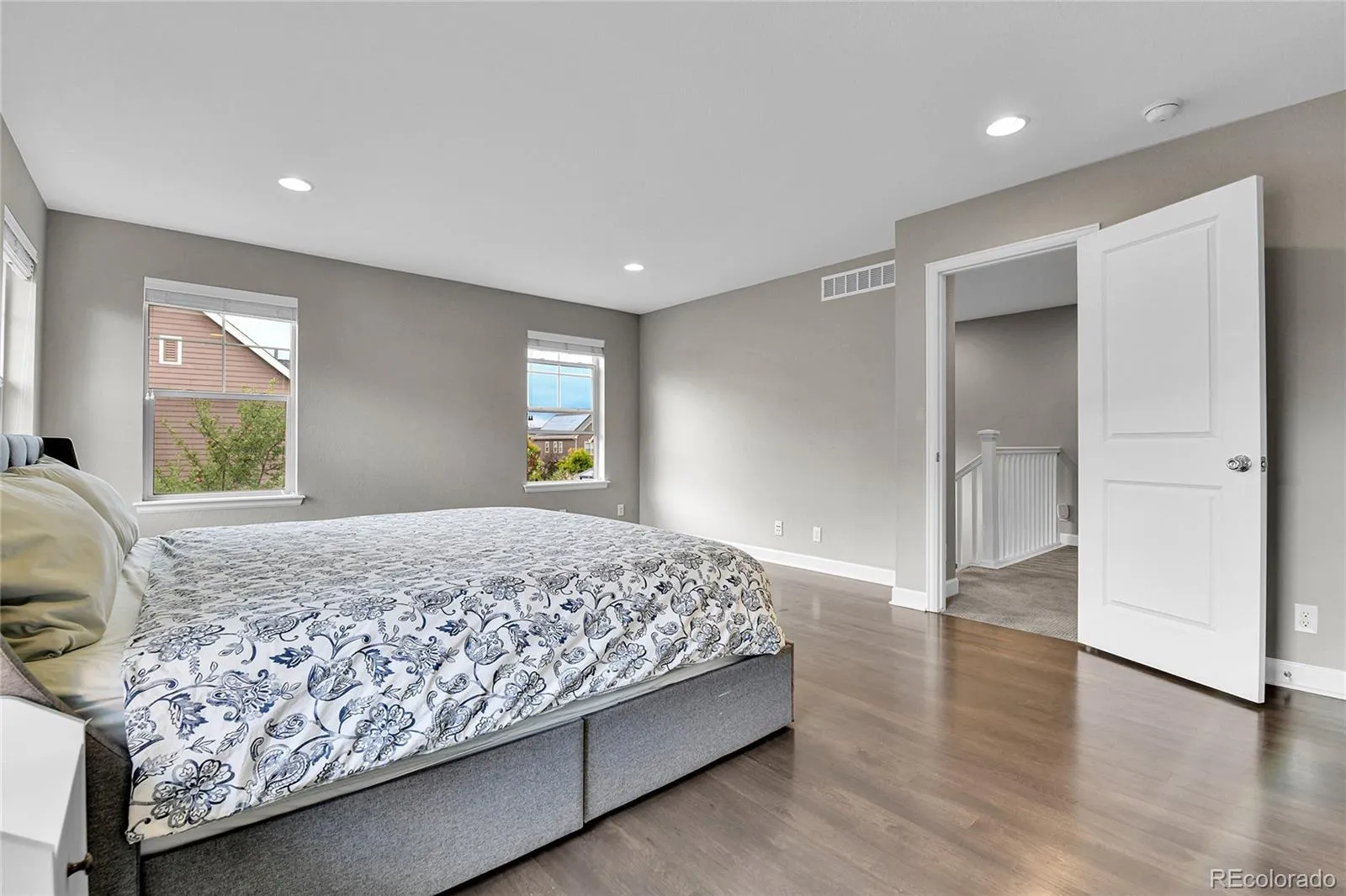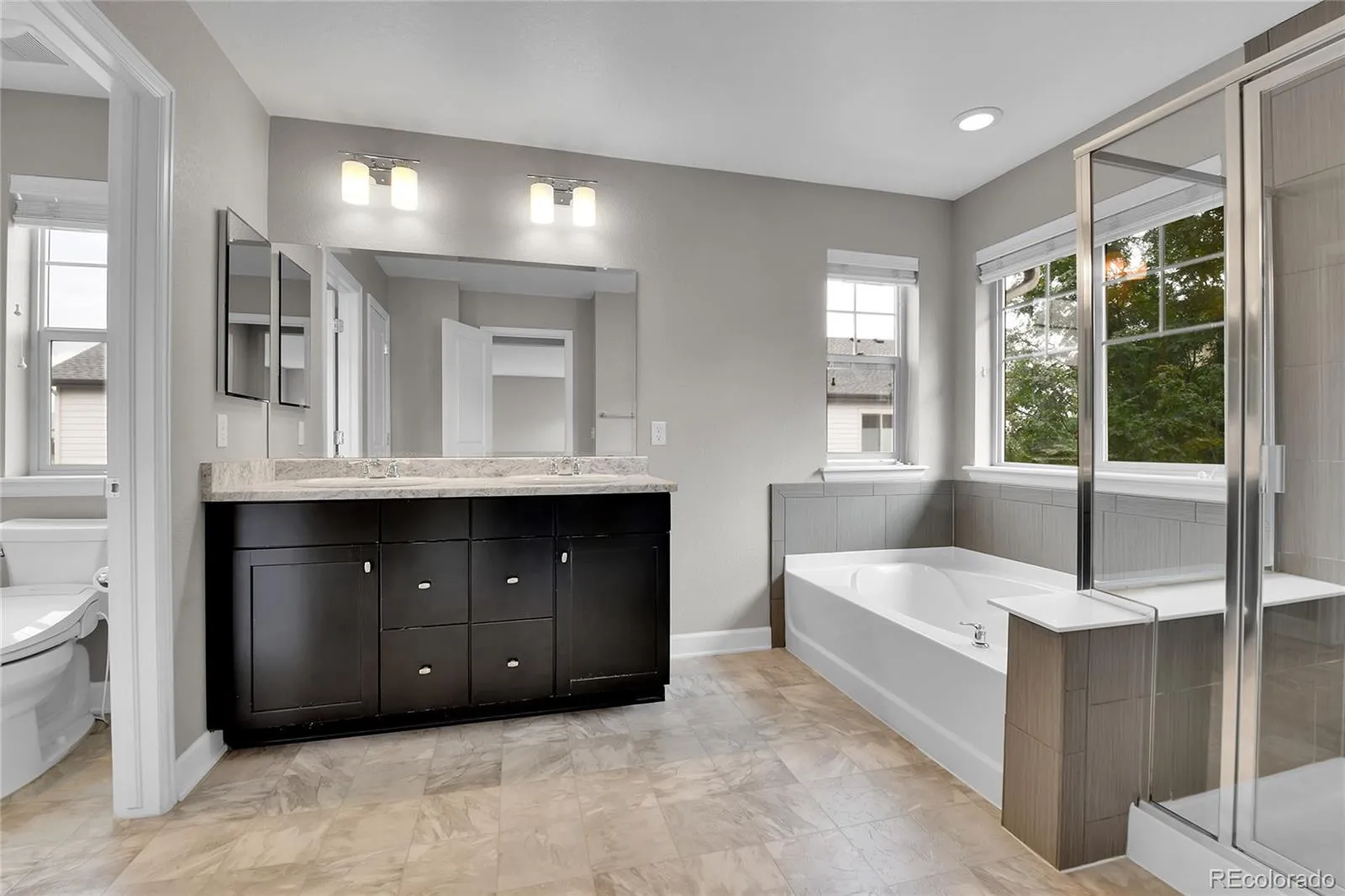 Upstairs, the primary suite delivers comfort and space with two walk-in closets, dual vanities, and a spa-like shower. Two additional bedrooms and a bath share the level, each bright and inviting.