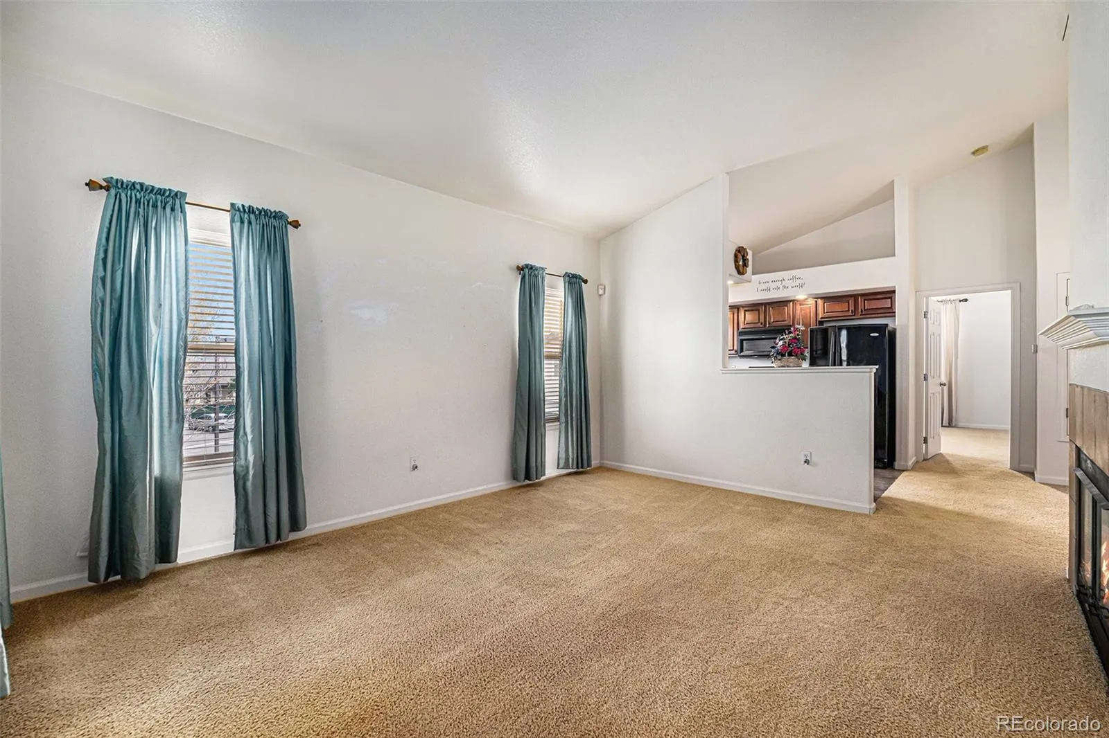 Step inside this well-maintained condo and you’ll immediately notice the dramatic vaulted ceilings that create a bright, open feel. The spacious floor plan flows easily from the living area to the dining and kitchen, making the space comfortable for both everyday living and entertaining.A cozy fireplace anchors the living room, while large windows bring in plenty of natural light throughout. The kitchen is well equipped with black appliances, ample cabinet storage, and generous countertop space. Just off the kitchen, the adjacent dining area offers room for casual meals or more formal dinners with friends. The primary bedroom features its own full bath, providing convenience and privacy, while neutral paint and a move-in ready condition make it easy to settle in and add your personal touch. Ideally located just minutes from Denver International Airport, the lightrail, and major highways including I-70 and 470, this condo makes travel quick and simple. Everyday essentials are close by, and residents enjoy access to community amenities through the HOA, including a pool, clubhouse, and available community parking. Perfect for those seeking comfort, accessibility, and a great location—don’t miss out on this move-in ready home!