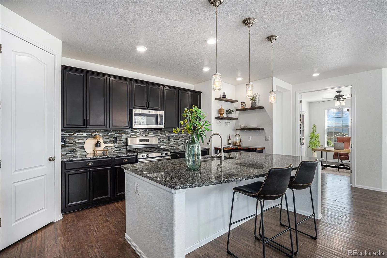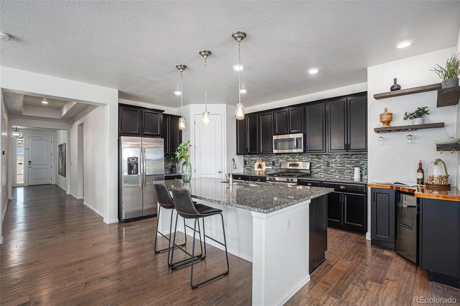Located in the desirable Leyden Rock community, this ranch-style home combines stunning mountain views with a flexible,modern layout. The main level is warm and inviting with luxury vinyl plank flooring and an open-concept design that flowsseamlessly from the spacious great room into the dining area and gourmet kitchen. The kitchen features a large centerisland, granite countertops, and stainless steel appliances—perfect for both everyday living and entertaining. Tucked at theback of the home, the private primary suite showcases breathtaking mountain views, a walk-in closet, and a spa-like 5-piece ensuite bath. Two additional bedrooms, a full bath, a half bath, and a dedicated office on the main floor provideplenty of space for family, guests, or working from home. The fully finished basement is a standout feature with half of itdesigned as a complete apartment for multi-generational living, an au pair or extended stays. With its own full kitchen,spacious living area, bedroom, multi-purpose room, 3/4 bath, 1/2 bath, and separate laundry hookups, it’s a true homewithin a home offering endless possibilities. Beyond the walls of this beautiful property, Leyden Rock offers a lifestylecentered on outdoor living and community. Residents enjoy access to a pool, clubhouse, neighborhood parks, and miles oftrails that wind through scenic open spaces. Whether you’re sipping coffee while soaking in the morning mountain views,enjoying a short drive to Boulder or Golden, or commuting to Denver in about 40 minutes, this home is the perfect blend ofcomfort, convenience, and natural beauty.