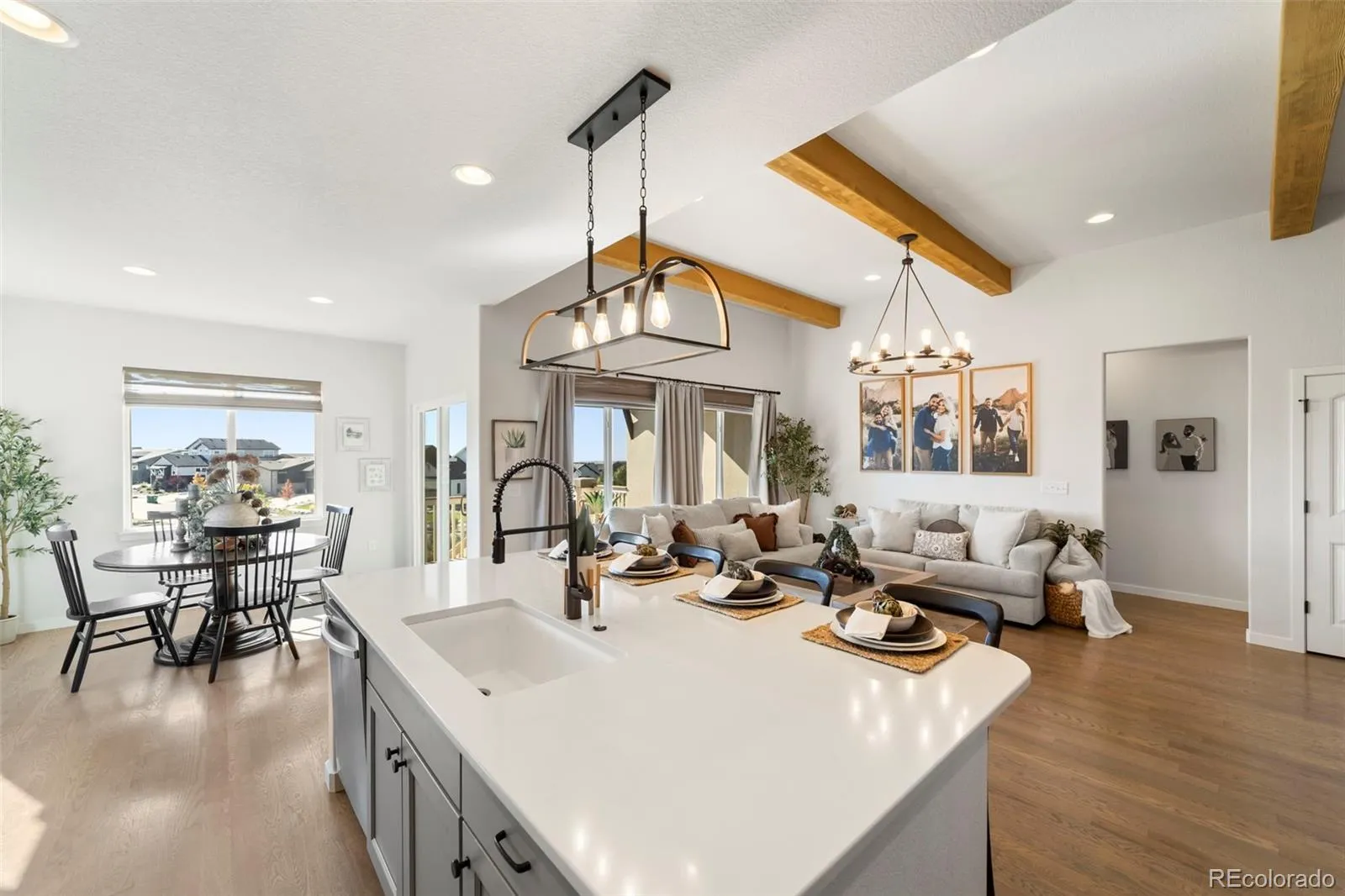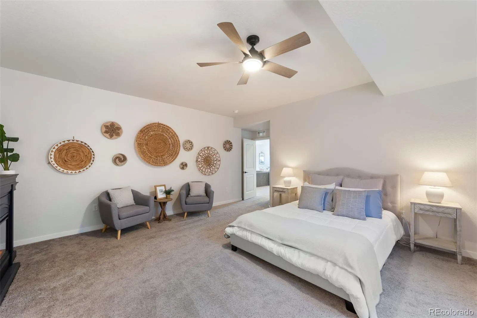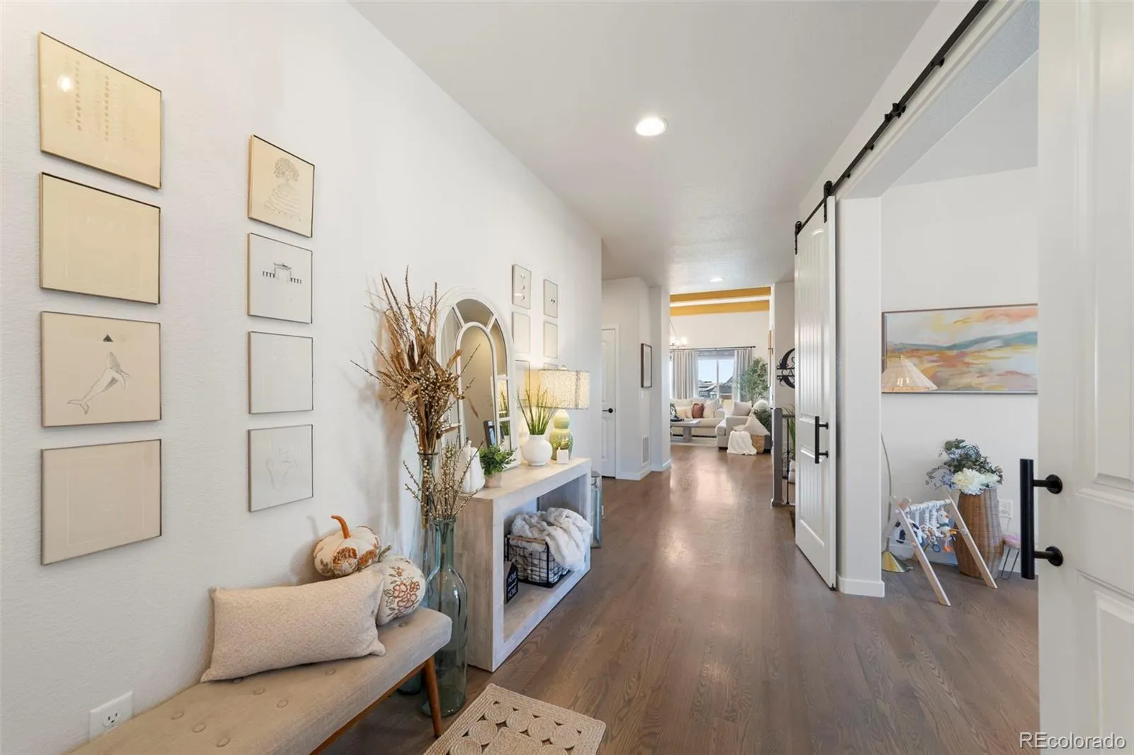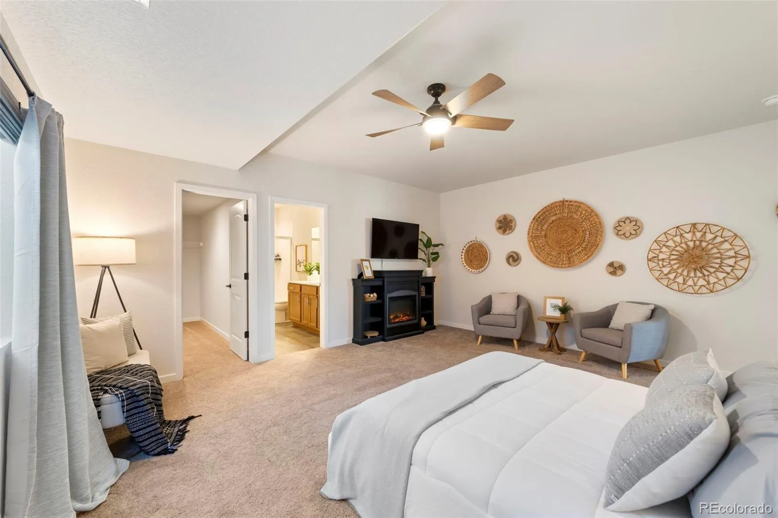 This stunning ranch-style home is nestled in the desirable Cordera community, steps from parks & schools. Thoughtfully designed with timeless style & cozy sophistication, this home combines modern comfort with classic touches that feel straight out of a magazine. Set on a cul-de-sac boasting expansive Pikes Peak views from the front porch, the home flows seamlessly from the main living areas to the outdoors, ideal for entertaining or simply enjoying the serene landscape. Inside, the open-concept layout provides a spacious, light-filled atmosphere w/high ceilings & large windows showcasing our beautiful Colorado weather, while the gourmet kitchen, & dining area invite a relaxed, yet refined lifestyle. The main floor offers luxurious finishes, including hardwood floors, gorgeous beams, upgraded lighting, & a cozy fireplace in the great room. Those chilly Colorado days are perfect in this home w/3 fireplaces (1 negotiable), you also have a large walk-out upper deck & walk-out lower covered patio to a wonderful low-maintenance backyard w/luxury turf, landscape lighting, & a fully fenced yard. This home also has 2 Primary bedrooms each w/ensuite baths & walk-in closets, w/a massive lower family room! Upgraded barn doors in the main level office & Primary bath are beautiful touches! Cordera’s family-friendly environment & top-rated schools, combined with the tranquility of a cul-de-sac location, breathtaking mountain views, make this home an ideal choice for those seeking both serenity & convenience. Exploring nearby parks, taking advantage of the Club House w/pool, playground or other amenities, or possibly grabbing an outdoor concert on the community greens w/friends & neighbors, this home offers a lifestyle that’s hard to beat. Literally steps to the elementary/middle school, Powers corridor for shopping, restaurants, entertainment, plus many hiking/biking trails out your backdoor…this is not a house…it’s a home. Come take a peek…