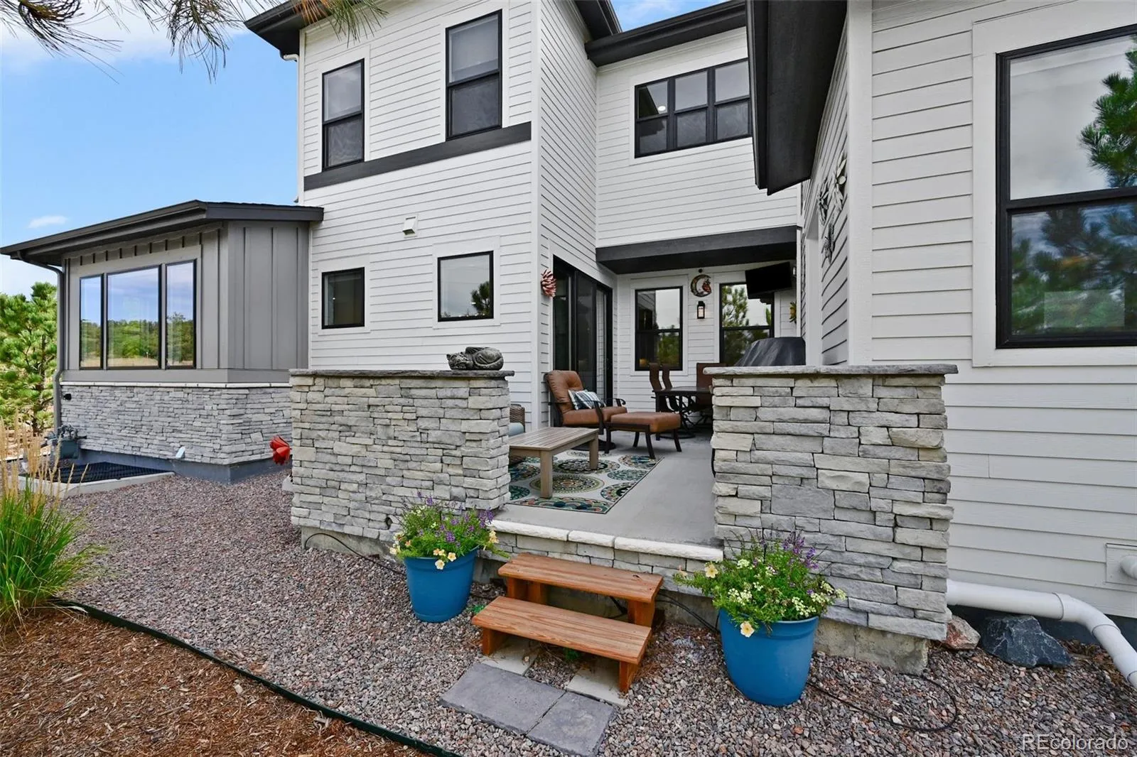 Imagine stepping out your front door and strolling to Danielle’s Scratch Kitchen, Trestles Coastal Cuisine, local coffee shops, Tony’s Meat Market, Woodhouse Spa, and charming boutiques and salons. Yes—it’s all just steps away. This stunning custom paired home in the exclusive, gated community of Castle Pines Village blends modern luxury with Colorado’s natural beauty. Built in 2021 and filled with thoughtful upgrades, this 3,758 sq ft home offers 4 bedrooms, 5 baths, and rare privacy backing to a peaceful greenbelt with rolling hills and mature trees. The light-filled open floorplan features a wall of windows overlooking the serene setting. The gourmet kitchen boasts a large slab-granite island, custom cabinetry, designer hood, tile backsplash, and premium stainless appliances. The great room impresses with a floor-to-ceiling tiled fireplace with a custom wood mantel. Wide-plank wood floors, custom lighting, and iron-railed staircases elevate the space throughout the main level, upper level, and finished basement.