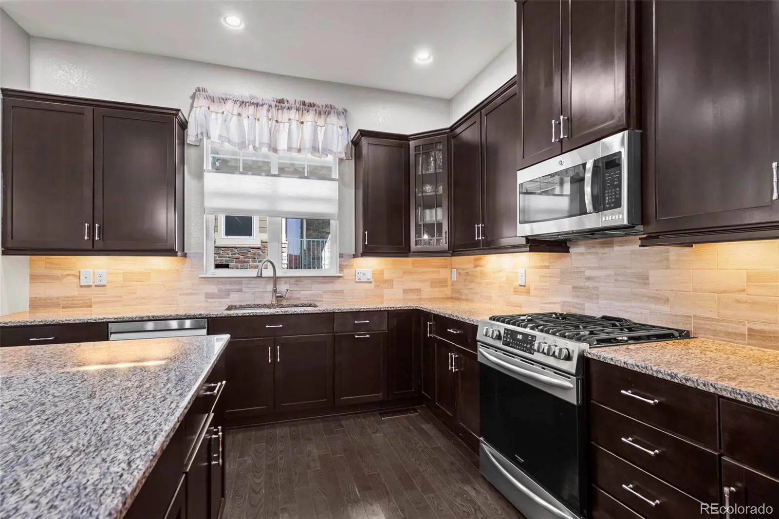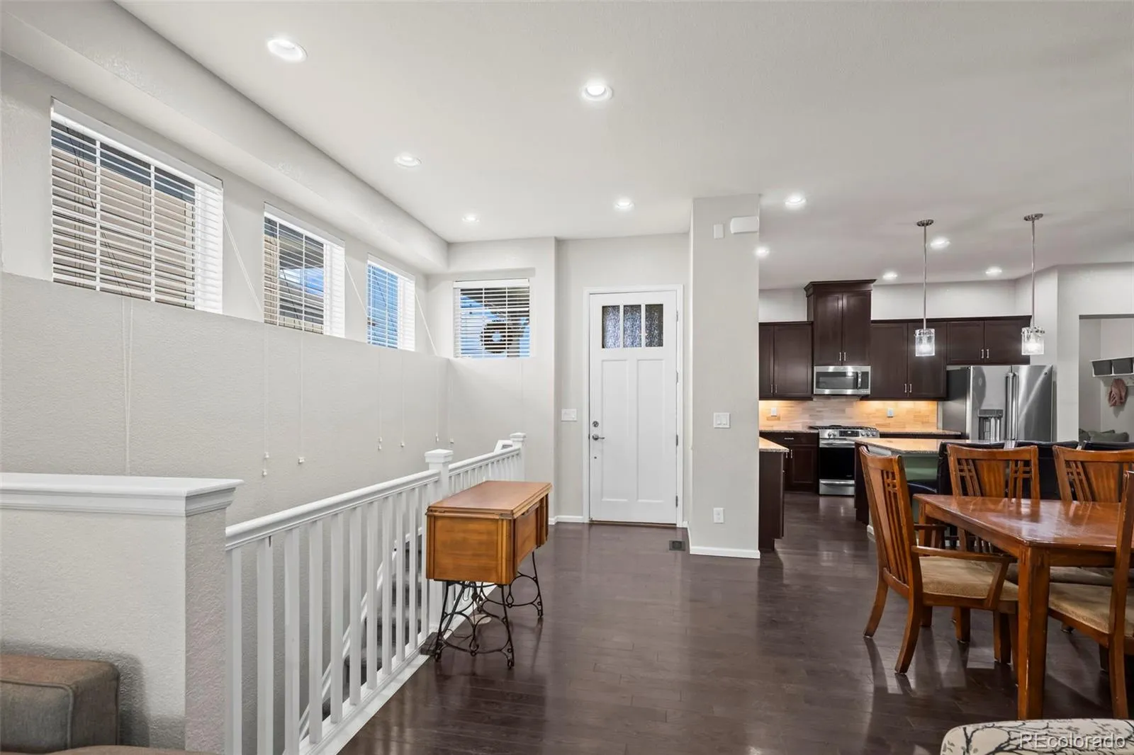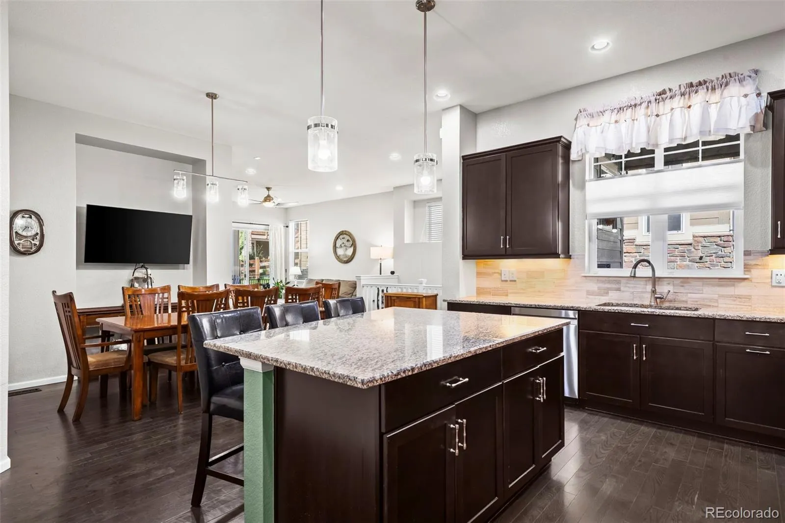Enjoy maintenance-free living in this spacious paired home located in a fantastic West Arvada location. Inside, you’ll find a large living setup with an eat-in kitchen featuring hardwood flooring, granite counters, pendant lighting, a gas stove, and stainless-steel appliances. The open great room offers built-ins and access to the outdoor covered patio, while the bright main-floor office and convenient mudroom add everyday functionality.
