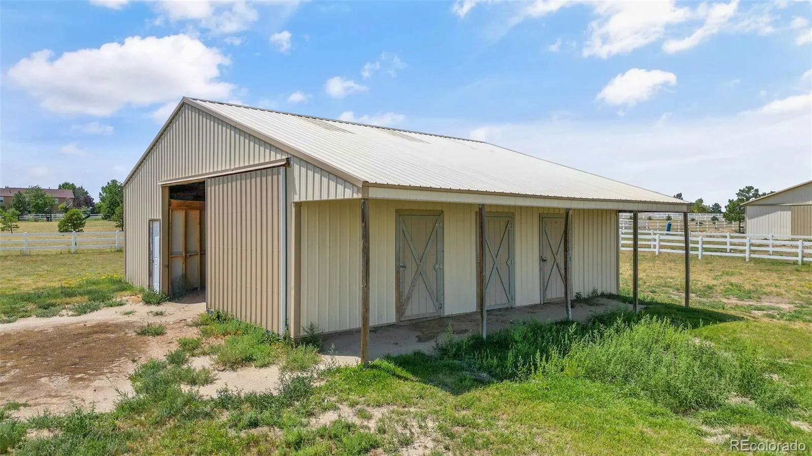 Set on just under 3 acres in the coveted Latigo Trails community, this beautifully maintained 4-bedroom, 4-bathroom home offers 3,606 sq. ft. of living space, a 3-car garage, and RV parking—all with stunning mountain views and breathtaking sunrises and sunsets. The property features a 35’ x 36’ barn with horse stalls, a tack room, two oversized doors, and electricity, plus full fencing and horse zoning. Recent exterior upgrades include new stonework on the front porch and garage façade, a new double front door with updated hardware, rear-facing energy-efficient windows (except kitchen), and a Class 4 roof (2019) for added durability. Inside, the primary suite boasts an attached sitting room, office, or flex space, while the island kitchen offers casual and formal dining options. Enjoy two cozy gas fireplaces, all-new carpet, and recently resurfaced hardwood floors (2025). The finished basement (2025) adds a bedroom, bathroom, entertainment area, and mechanical room. Updates include a new furnace (2024), water heater (2025), refrigerator (2024), and active radon mitigation (2021). HOA includes trash and recycling. Positioned within a 45-acre, state-of-the-art equestrian facility, this neighborhood is ideal for horse lovers—boasting indoor and outdoor riding arenas, horse boarding options, and exceptional training spaces. Experience the perfect blend of rural living and modern comfort in this move-in-ready Latigo Trails gem.