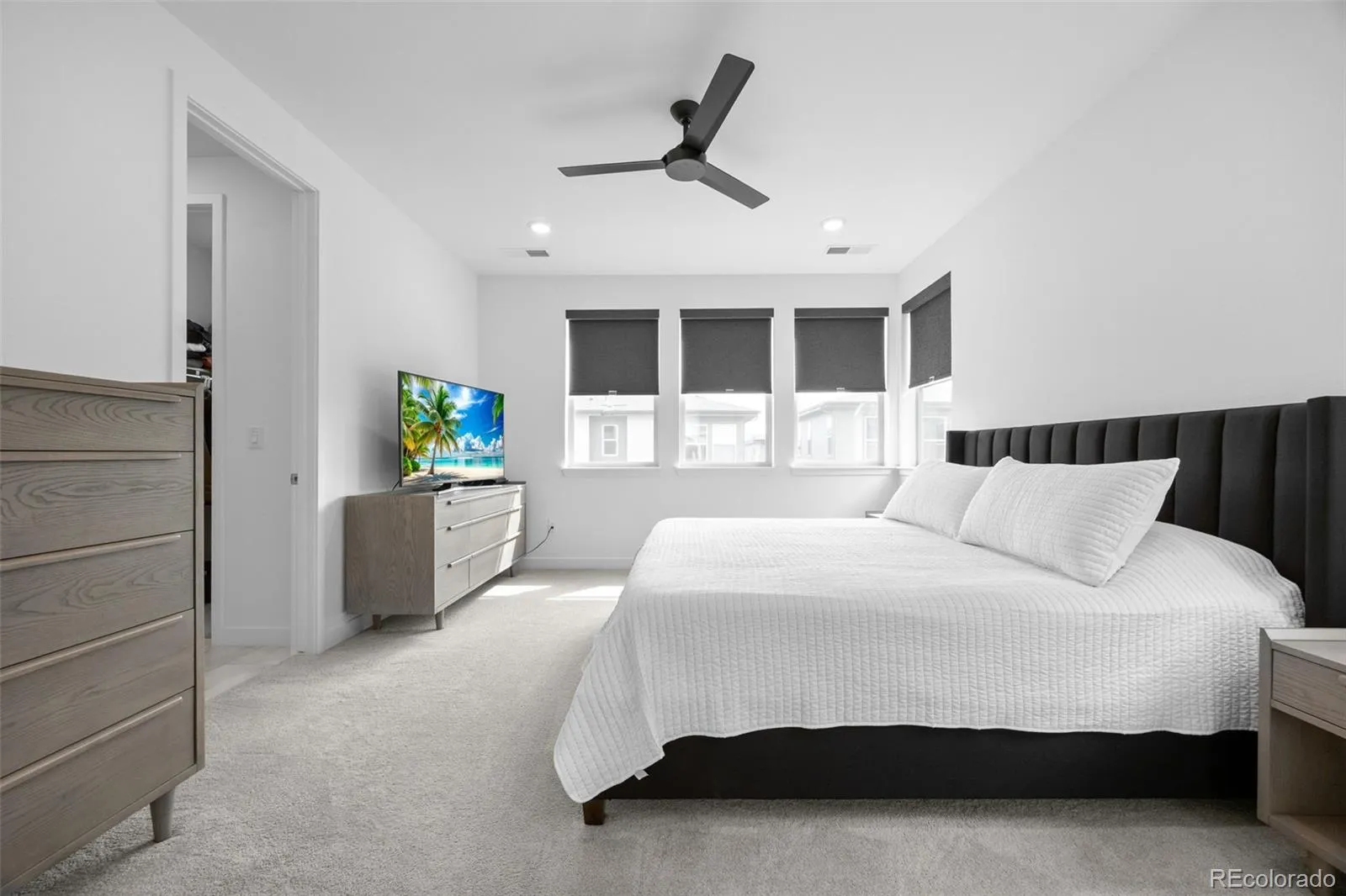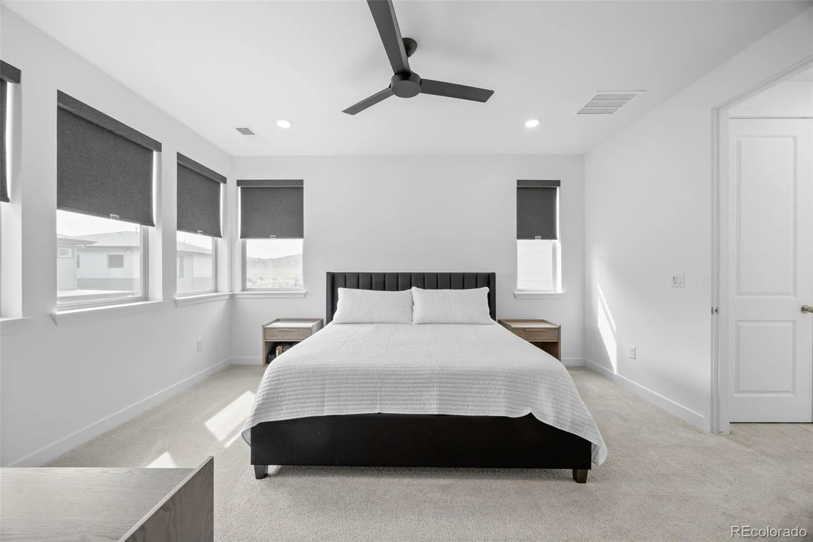 The primary suite features two walk in closets, en suite bathroom with dual vanities and a spa-style feel.