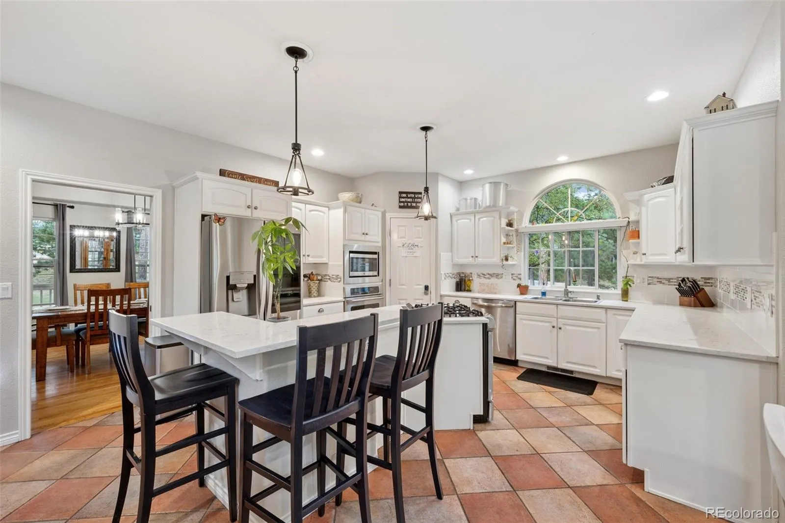 breakfast nook, ample cabinet and counter space, huge island, stainless appliances and pantry. Main level master suite