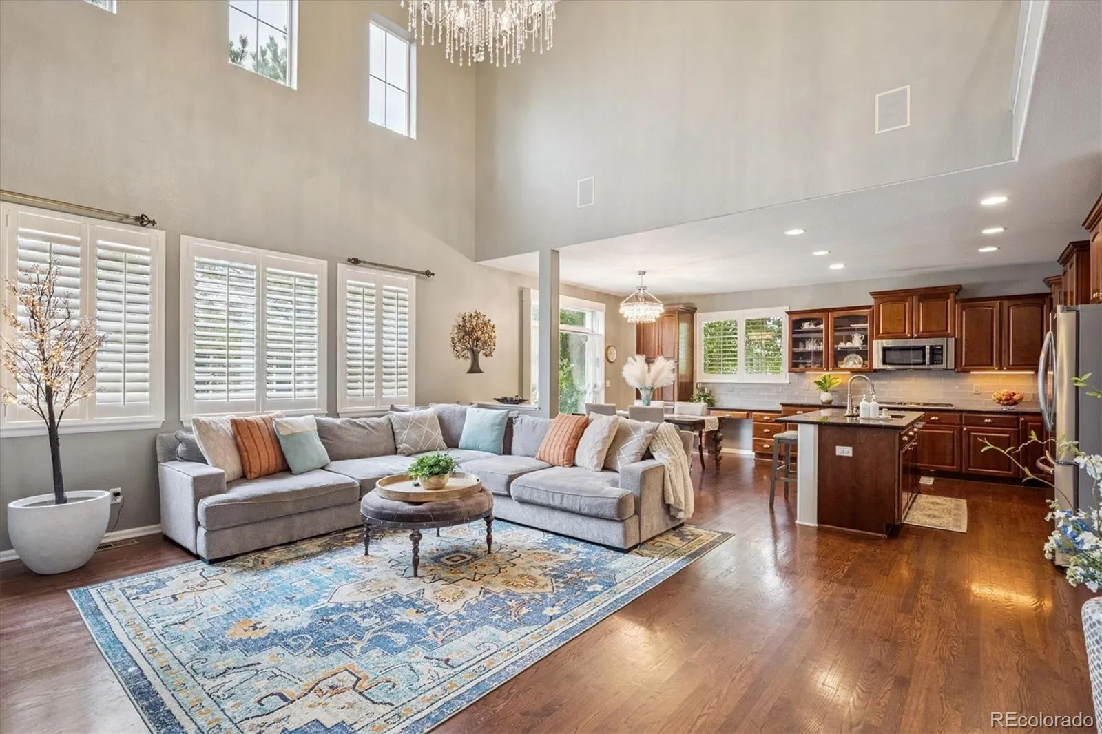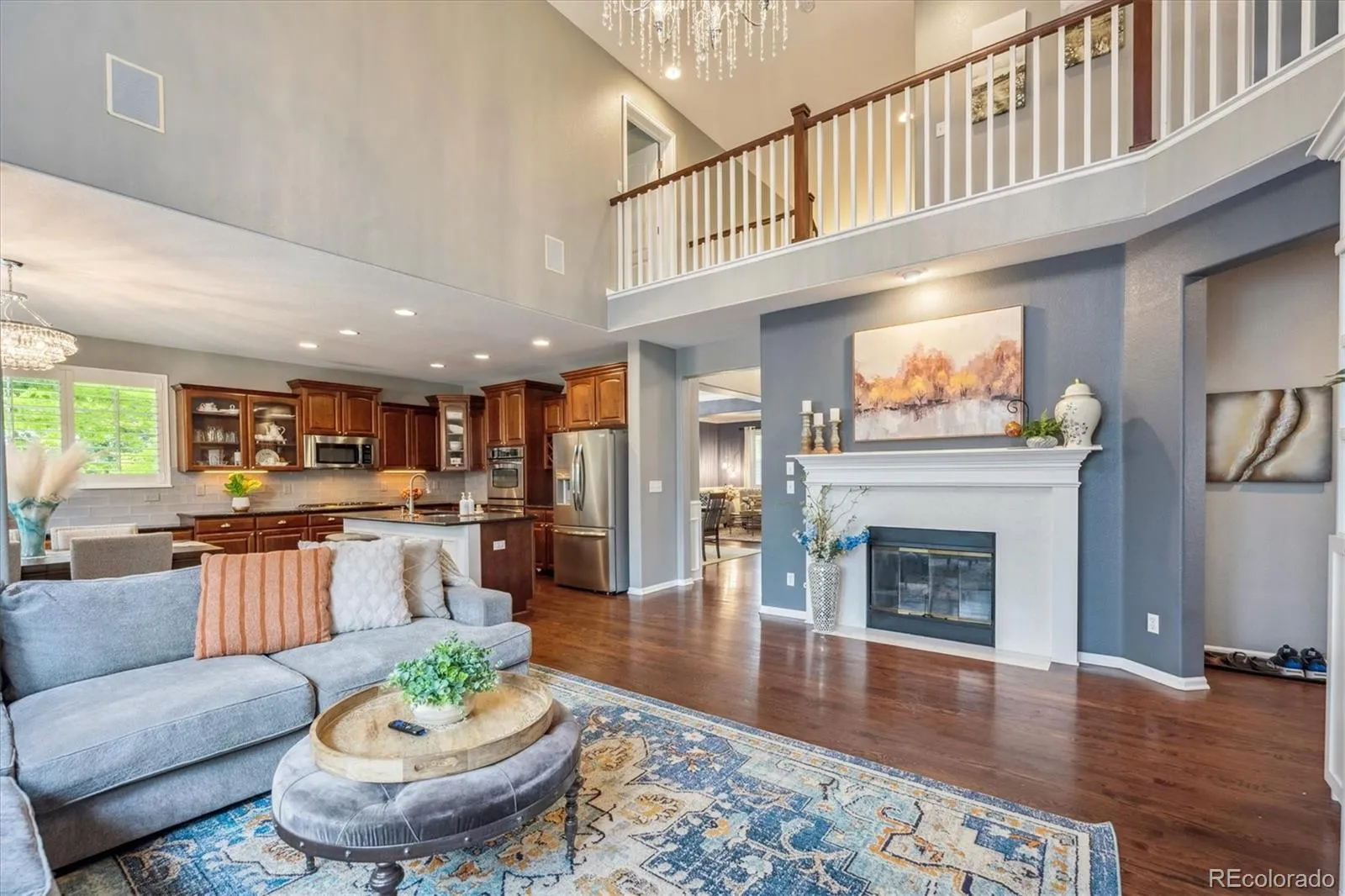 Meticulously cared for & move-in ready, this like-new home is nestled in the welcoming & established neighborhood of Turnberry @ Saddle Rock. The HOA takes care of front yard landscaping & even shovels snow right up to the front door (over 4″), making life here wonderfully easy. Step inside & feel right at home. The formal living & dining rooms are perfect for gathering with family & friends, enhanced by rich walnut flooring. The inviting family room, with it’s 2-story ceilings, custom built-ins, abundant sunshine & cozy quartz-surrounded gas fireplace, is where memories are meant to be made. The heart of the home is the open gourmet kitchen, designed for cooking, conversation, & connection. With expanded cherry cabinetry, granite countertops, stainless steel appliances, a 5-burner gas cooktop, and built-in double ovens, it’s a dream for chefs & entertainers alike. Upstairs, the spacious primary suite offers a peaceful retreat with its tray ceiling, custom walk-in closet & spa-like 5-piece bath featuring dual sinks, newer countertops & updated vinyl wood flooring. 3 additional bedrooms & a full bath with double sinks provide plenty of room for everyone, while the second-floor laundry room—with quartz counters, cabinets a utility sink—adds everyday convenience. Step outside to the private stamped concrete patio, the perfect place for summer barbecues or quiet evenings under the stars. The oversized wide garage provides extra storage & the full unfinished basement offers endless possibilities—ideal for creating more space for family, hobbies or entertainment. Other features include: elegant crystal chandeliers, fully fenced yard, stucco & stone exterior & durable tile roof (insurance saver). Living here means enjoying more than just the home—you’ll have access to neighborhood pools, tennis courts & a clubhouse, all within walking distance of Grandview High School. Plus, you’re just minutes from Southlands Mall, E-470, golf, and the Denver Tech Center.