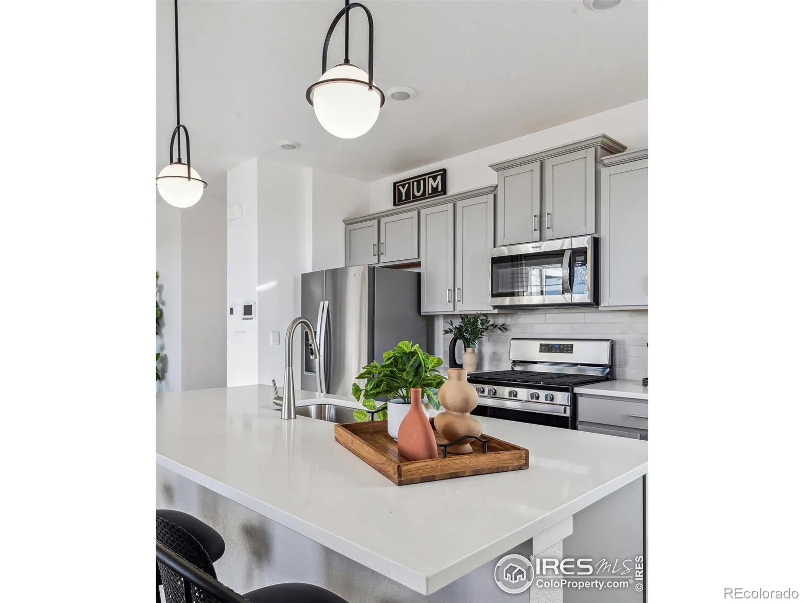 The Vail is a two-story floor plan offered in the Villas at Vantage community in Berthoud, Colorado. The 1,684 square foot home features 4 bedrooms, 2.5 bathrooms, and a 2-car garage. Aiming to impress the Vail floor plan welcomes you in from the front covered porch to the open concept living area. As you enter the heart of the home you will see the stunning kitchen that features premium cabinetry, stainless-steel appliances, and an expansive eat-in island that flows seamlessly into both the living room and dining area. The spacious living room is perfect for relaxing or entertaining and provides ample space for any set-up. A powder room is tucked away but still convenient for guests to use. The large primary bedroom is located upstairs and is complemented with two spacious walk-in closets and an ensuite bathroom that features a dual vanity and walk-in shower. You’ll also find three additional bedrooms with plenty of space and plush carpets. A laundry room and second bathroom that also includes a double vanity sink are centrally located upstairs providing optimal functionality. Home also fronts onto a large grassed common courtyard, and additionally features maintenance-free front yard landscaping, tankless water heaters, active radon systems, blinds, and Smart Home Tech with remote access capabilities – all in a location backdropped by water and mountain views. The Vantage neighborhood includes a unique set of features and amenities such as TPC Colorado privileges including use of their world-class Fitness Center, Resort Style Pool with swim-up bar and hot tub, and restaurants. Use of Vantage Pool, Splashpad, Grilling Area, Playground and 2 Dog Parks in the 5-acre, on-site complex are also included in the HOA. ***Photos are representative and not of actual property***