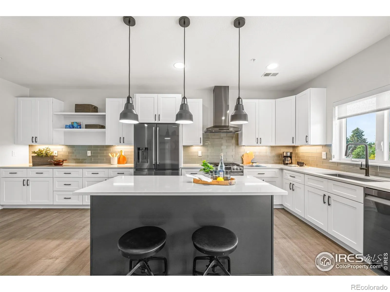 Welcome to 242 Clementina, an exceptional end-unit townhome that combines modern sophistication, comfort, and functionality. Just a short stroll from the charm and vibrancy of historic Old Town Louisville, this move-in ready residence has been thoughtfully designed with high-end upgrades, sustainable features and custom finishes throughout. Natural light fills the interiors from east, west, and south-facing windows and strategically placed Sola Tubes. A smart lighting system provides wireless ambiance control, while seller-owned solar panels (no lease) offer both energy efficiency and long-term savings. At the heart of the home, an open floor plan creates a warm and inviting atmosphere. A double-sided fireplace elegantly connects the living room to the dining area/kitchen, bringing both charm and functionality. The kitchen features upgraded appliances, designer lighting, quartz countertops, high-end cabinetry, and a spacious walk-in pantry. Upstairs, the expansive primary suite is enhanced by a spa-inspired bathroom with premium finishes and a custom-designed walk-in closet. A spacious secondary ensuite bedroom and a laundry room complete the upper level. The lower level offers remarkable flexibility with a room that can serve as a family room, den/office or as an additional guest room. A fourth bathroom and attached two-car garage is on this level as well. This home’s “lock and leave” convenience is enhanced by community amenities, including beautiful landscaping, a picturesque red barn picnic area, a community garden, and direct access to Louisville Community Park and trails. The HOA covers yard care and snow removal, ensuring easy living. Just a short stroll to Louisville’s charming shops and restaurants, as well as quick access to Boulder, Denver, DIA, and the mountains, this residence presents a rare opportunity to enjoy refined, low-maintenance living in a premier location. Don’t miss your chance to experience the best of Louisville living, see it today!