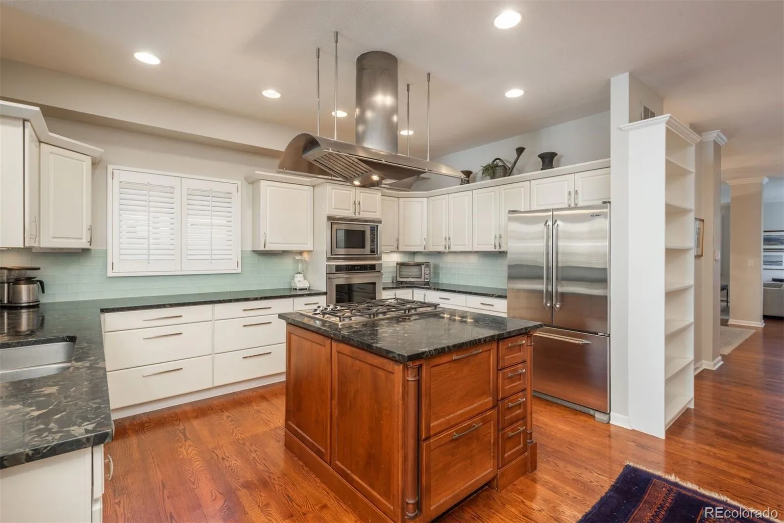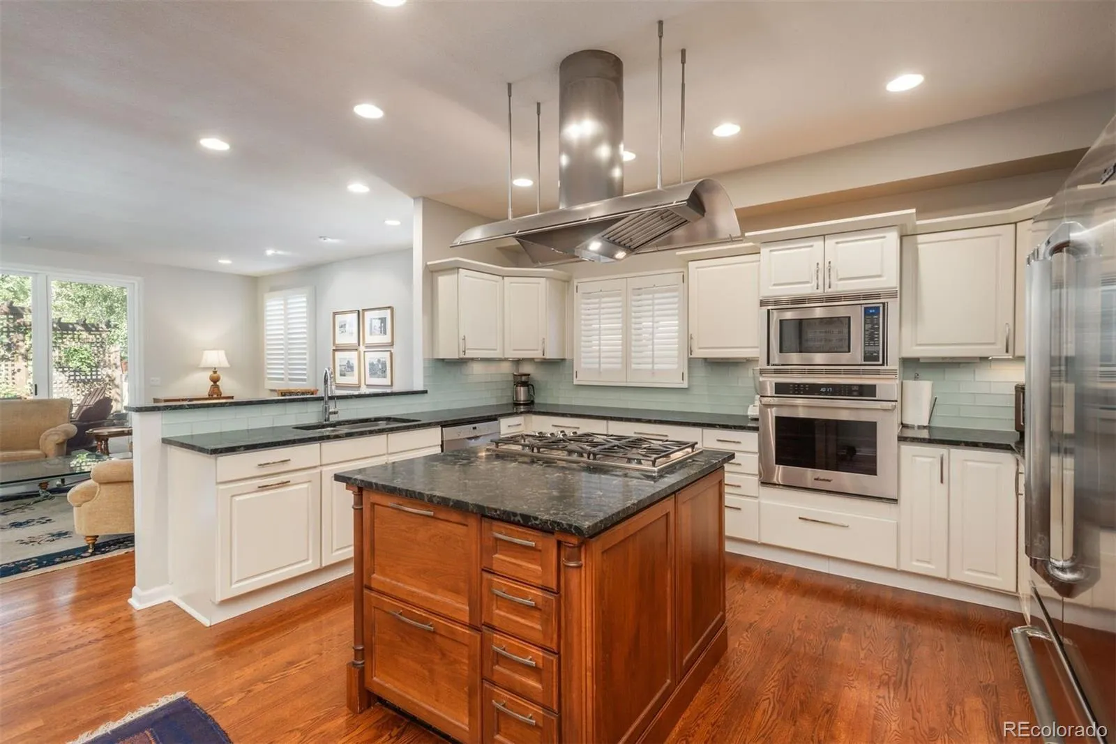 Located on a great block, this beautifully cared for townhouse is convenient to all of the special places, things and happenings the much sought after Cherry Creek North neighborhood has to offer, minus the congestion. From the wrought iron fenced front yard that offers you ideal space for your pet and/or your ‘green thumb’, you are welcomed into a main level, larger than the typical CCN townhouse, by an inviting glass block foyer which leads to both the living room with fireplace and dining room with bay window, each with crown molding. Down the hall, you’ll be treated to a terrific working kitchen with honed granite countertops, 5-burner gas cooktop, newer oven, microwave and dishwasher…plus a refrigerator/freezer and a 2-drawer beverage cooler in the island. Adjacent to the kitchen is a spacious family room with fireplace, that opens to a fabulous private patio with a retractable awning. The personal area of the residence is highlighted by a huge primary bedroom with fireplace, a comfortable 5-piece bathroom and 2-custom designed walk-in closets. A second bedroom with a new en-suite bathroom completes this area of the townhouse. The finished basement has a generously sized rec-room, a nice guest bedroom, a 4-piece bathroom and a laundry room. There is an attached garage, and in 2022, two new furnaces, two new air conditioning units, and a new hot water heater were installed.