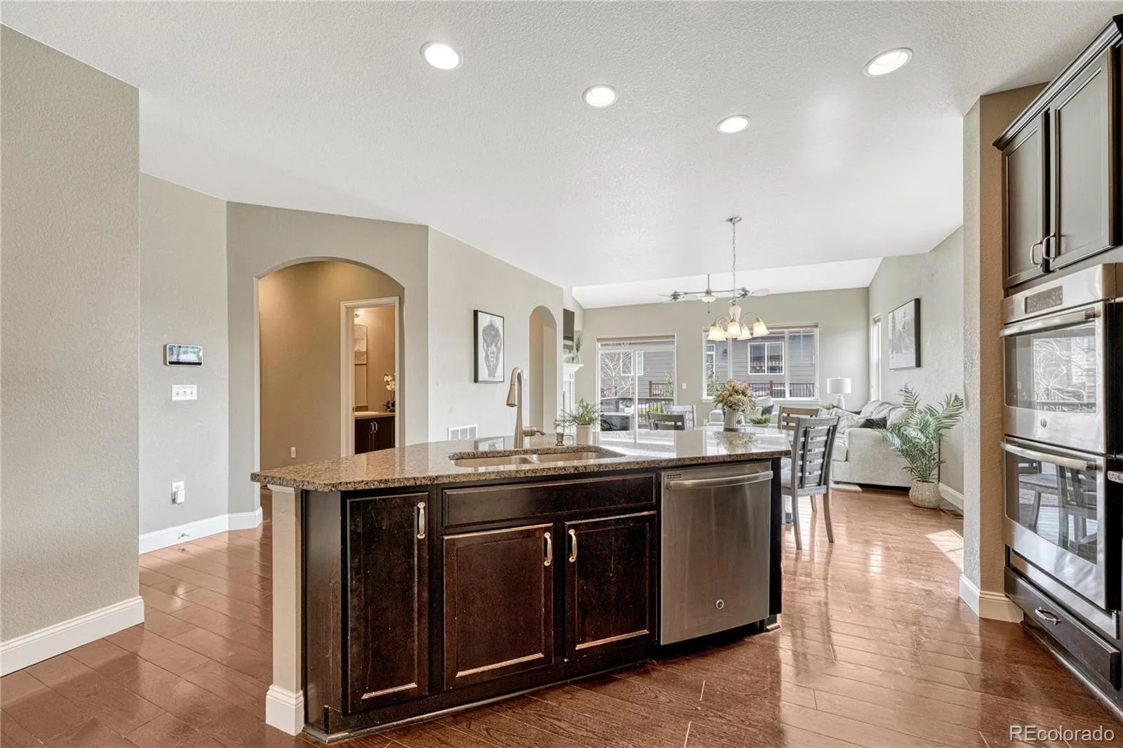 Upstairs: A flexible loft (game room? office? home gym? you decide!), plus three bedrooms – one with its own ensuite and two sharing a spacious full bathroom with double sinks. The dream basement was designed for multigenerational living or the ultimate hangout zone, the basement features a kitchen (fridge included), family room, full bath, and two more bedrooms. Bonus: tons of storage, gun safe included and a radon system already in place. Entertain or unwind on your low-maintenance composite deck with power awning, enjoy your professionally landscaped yard, and take advantage of the large side yard. Fully fenced and ready to go! Extras You’ll Love, front porch with privacy screen, hardwood floors throughout the main level, whole-house humidifier & upgraded interior doors, brand-new hot water heater (2024), top-down/bottom-up blinds for perfect light & privacy, low HOA dues ($88/month!) Location, Location: Just minutes from Downtown Parker, with easy access to I-25, DTC, shopping, dining, and endless trails.