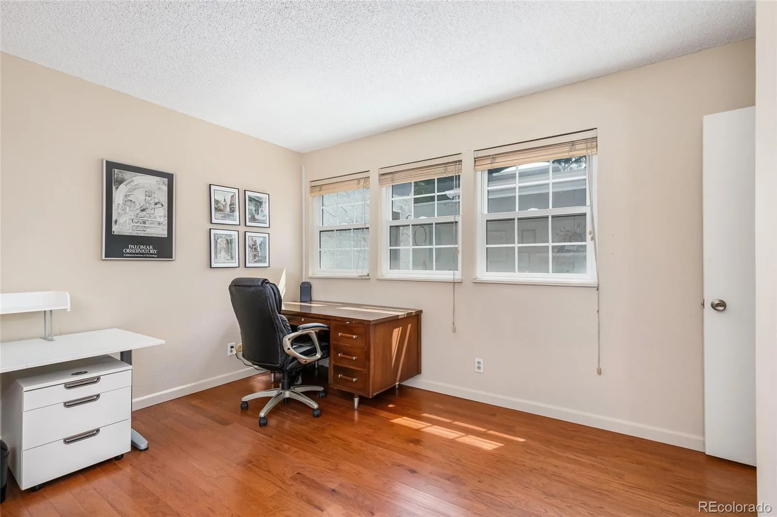 A serene oasis in the city! An open floor plan welcomes you, highlighted by a dramatic skylight and soaring 2-story ceiling that floods the home with natural light from 21 windows. This 3-bedroom, 3-bathroom contemporary townhome features a main floor bedroom with full bath, upper-level bedrooms each with their own ensuite, and brand-new luxury light wide plank LVP flooring on the main level. Newer sliding glass doors open to a gorgeous fenced back patio—perfect for relaxing or entertaining plus spacious courtyard patio. The oversized 2-car garage, washer/dryer, and newer water heater add everyday convenience, while major system updates in 2025 (new furnace, A/C, electrical panel, sewer line, and radon mitigation system) provide peace of mind. The Park at Woodstream is a picturesque and peaceful neighborhood where nature meets modern living, now with freshly painted exteriors plus renovated pool and tennis court in progress. Steps from High Line Canal & Cherry Creek Trail, and close to Paul Hentzell Park, Babi Yar Park, and Kennedy Golf Course—yet just minutes to Cherry Creek, Lowry, Downtown, and DIA. A rare find that truly has it all!
