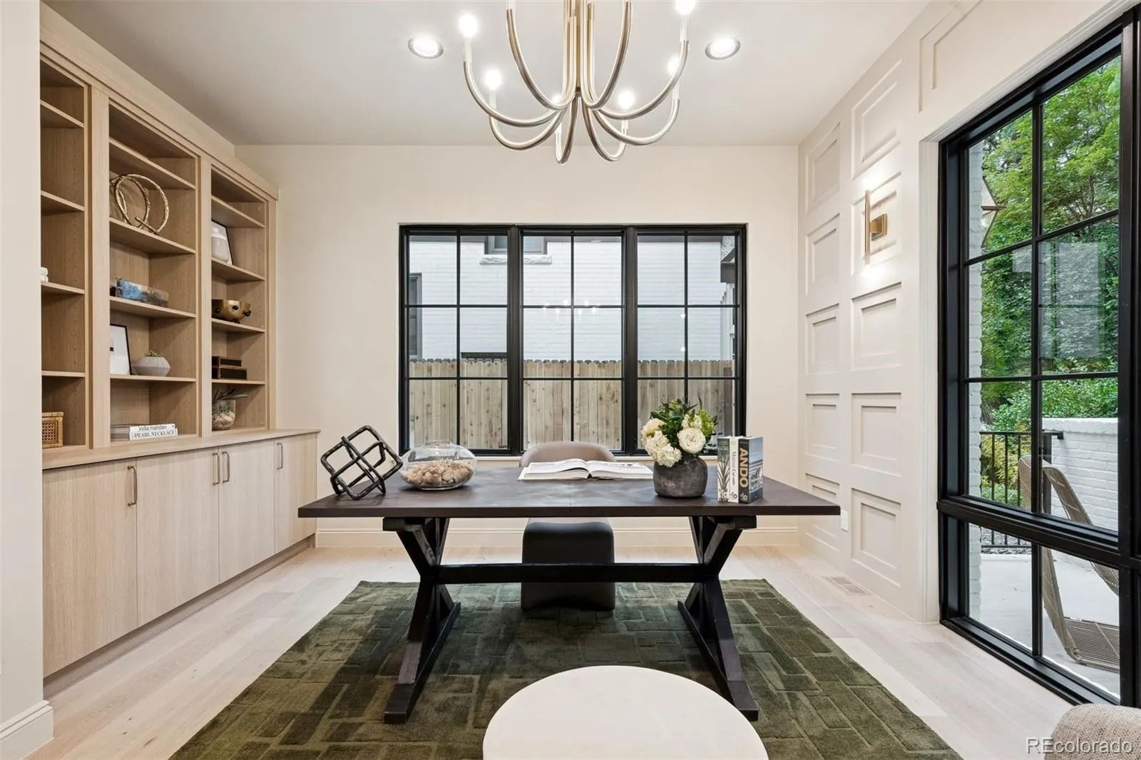 Absolutely exquisite brand new home in East Wash Park. Situated on a quiet tree-lined street ideally centered between Wash Park & the shopping and restaurants on S Gaylord. Transitional design with rich, layered textures that combine with an airy, organic feel. The main floor features a chef’s kitchen with Wolf & SubZero appliances, natural wood floors, a striking dining room surrounded by oversized windows, a custom fireplace mantle with an art TV, beautiful custom millwork, and a show-stopping floating staircase set against a dramatic wall of windows. A private home office color drenched with custom built-ins and a striking entryway, is the first impression. Upstairs, you’ll find four ensuite bedrooms, including a luxurious primary retreat with marble finishes, a soaking tub, oversized shower, and sophisticated gold fixtures. The fully finished basement offers soaring 11 ft+ ceilings, a spacious family room with space for a theater and game room, two additional bedrooms, and a full bath—perfect for guests or extended living. The basement offers a ton of flexibility for a home gym, pool table, or guest suite. The indoor-outdoor living is ideal in this home. Just a short stroll from Wash Park and the shops and dining along Gaylord Street, this home blends modern charm with everyday convenience in one of Denver’s most desirable neighborhoods.