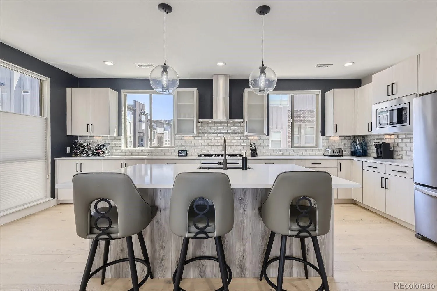 Experience the delight of Colorado living in desirable Platte 56 community on the bank of the South Platte River and very close to Old Town Littleton, light rail and multiple restaurants and retail. This location offers easy access to the South Platte River Trail for biking, walking and beautiful views of the front range. This modern townhome is packed with upgrades and custom additions which include a finished garage with an epoxy floor coating, custom shelving and racking which all stays with the property. Custom built-ins have been added to the mudroom, linen closet and primary closet. This community has a private dog park and nearby shipping and is designed for those who cherish both community and privacy. Whether you are drawn to the outdoors or the cozy luxury within, this home is a sanctuary designed for any discerning buyer who wants it all.