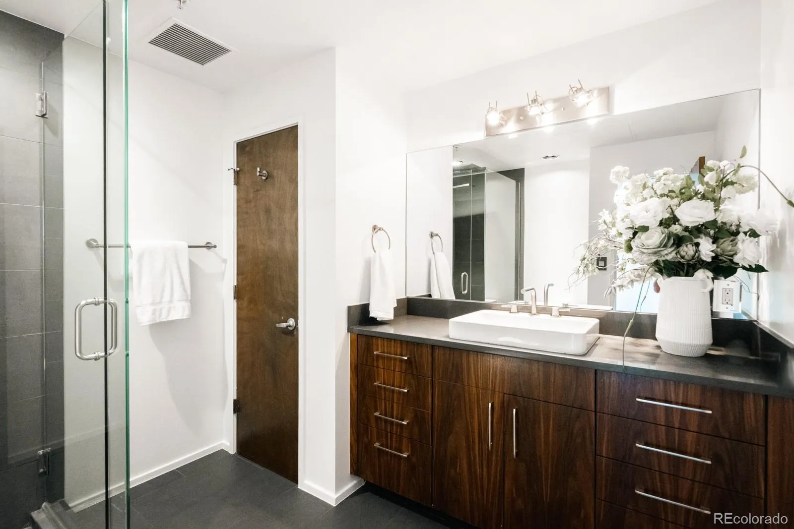 *HUGE PRICE REDUCTION* Modern Urban Loft at One Wynkoop Plaza // An upscale downtown residence w/ 3 stunning outdoor balconies sits in the heart of Downtown & McGregor Square. This expansive end unit boasts 2,500+ sq ft of space immersed in natural light w/ 3 beds, 2 baths and 2 flex spaces perfect for an at-home office or gym. Private elevator access opens directly into an entry flex space + onward into a dreamy open dining, living and kitchen area wrapped in gorgeous custom designer finishes. Modern updates & finishes w/ Caesarstone counters, new custom hardwood floors + stainless steel Jenn-Air appliances, a chic kitchen w/ a wraparound counter provides ample space for entertaining. A master suite boasts designer light fixtures, a private outdoor patio, generous closet space + a flexible den area. The en-suite bathroom boasts double vanities, wood accents, a deep soaking tub + walk-in shower. Gorgeous views of Downtown + Coors Field, direct access to McGregor Square amenities + proximity to Union Station, Whole Foods + I-25 create a microcosm of city living. 2 secured parking spaces: 1 interior spaces in garage + 1 exterior reserved space in covered gated lot. Also included is a huge 8ft X 15ft secured storage room. The new hardwood floors are lighter than pictured in photos. This is Downtown Living at its Best!