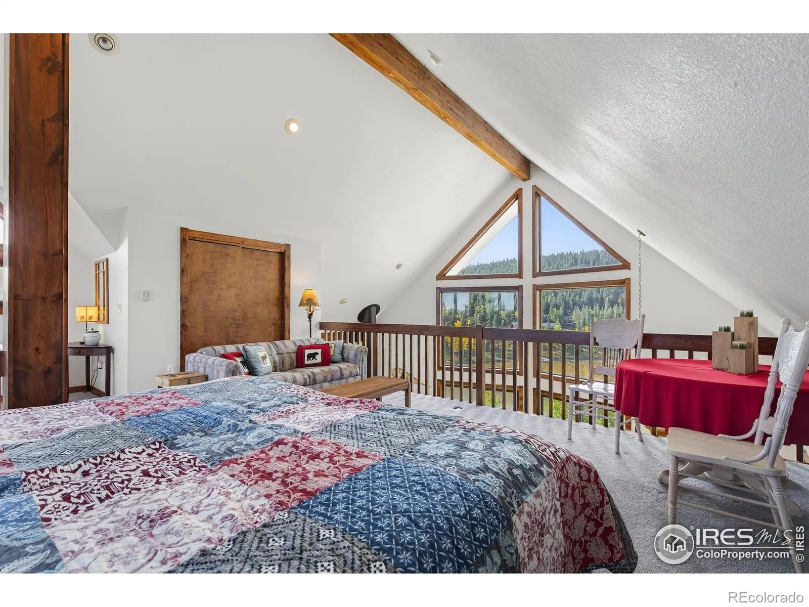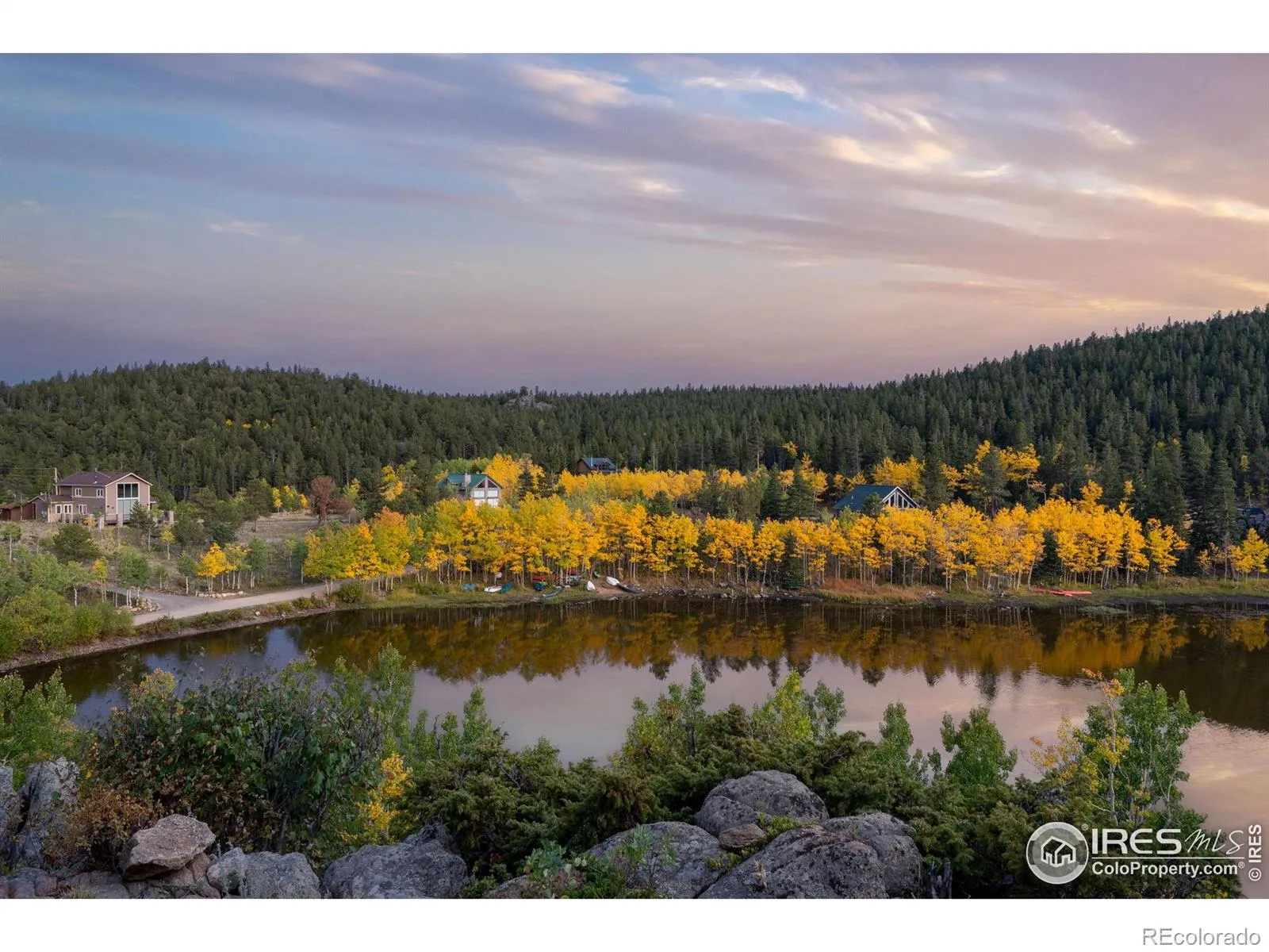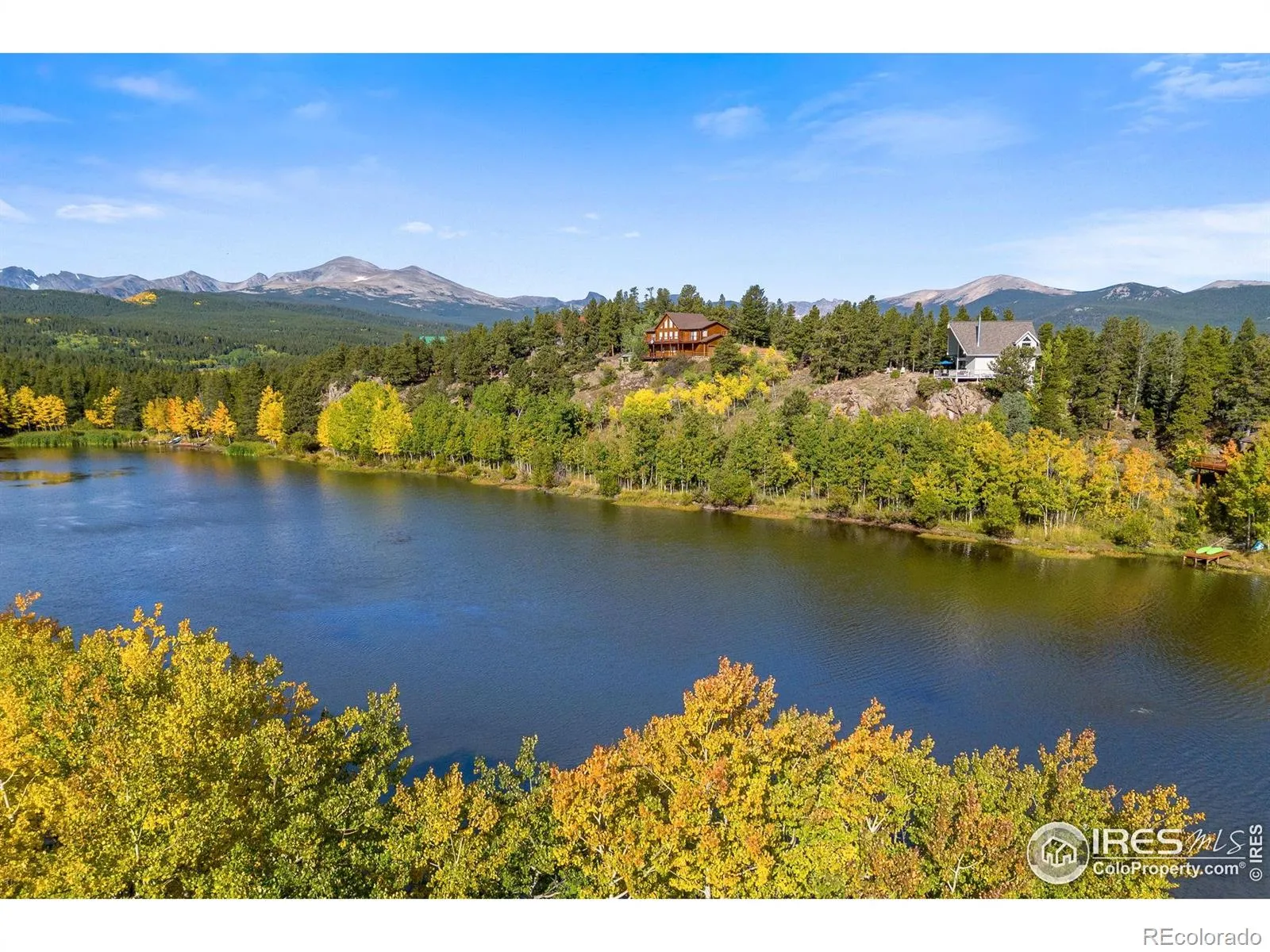 Welcome to Hidden Lake, a private mountain community just north of Ward where residents enjoy fishing, boating & swimming on their own shared alpine lake. A rare property, one of only 10 homes with direct lake frontage, offering a setting that feels both intimate & extraordinary. The home itself carries all the charm of a mountain retreat with striking rooflines, soaring windows that frame endless views & a wraparound deck designed for outdoor living. From this elevated vantage you can take in the expanse of lake & mountains, while a more secluded sitting area among the pines offers a quiet spot for Adirondack chairs & evenings around the fire. Inside, the main level living space is warm and inviting, anchored by a stone fireplace & wood beam accents. A wall of glass opens to the lake & surrounding forest, bringing the outdoors in & filling the room with natural light. The kitchen & dining area flow easily for meals together or hosting friends, while the lower level guest room provides privacy & comfort. The lofted primary bedroom overlooks the living space below & captures sweeping vistas that stretch across the mountains, giving you a sunrise-to-sunset experience each day. For nearly two decades, this home has been a shared retreat for families who treasured its serenity & convenience, and it is now ready to welcome its next chapter. Recent updates include a full exterior repaint, while practical features like a whole-home water filter, well & septic, and electric baseboard heat ensure comfort. The grounds are thoughtfully mitigated & hold the respected Wildfire Partners Certification. Whether launching a kayak, watching wildlife from the porch, or setting off for adventures in the nearby Indian Peaks Wilderness and Brainard Lake, this is a true basecamp for mountain living. Boulder is just 30 minutes away, with DIA under ninety minutes, keeping the world within reach while you enjoy the peace of your own lakeside escape.