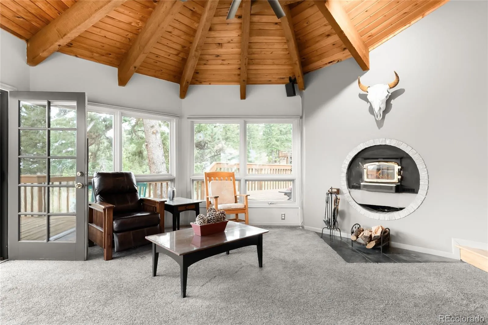 Experience the secluded elegance of this custom-designed mountain retreat, where charm meets tranquility in a breathtaking setting. Poised at the top of coveted Boulder Heights, this entirely bespoke build-out is a true showstopper. A spacious wrap around deck sets the scene for outdoor relaxation with 180 degree views and beaming exterior appeal beckons residents further inside. Abundant natural light streams through the home where a thoughtful floorplan is showcased. 3 fireplaces inspire a cozy setting and the bright living area is a site to bestow with floor-to-ceiling windows on all sides. The eat-in kitchen presents wood cabinets, center island, walk-in pantry and direct access to the deck. Four sizable bedrooms afford flexibility for residents’ needs. The sweeping primary suite is flooded with natural light, a fireplace, corner window, skylight and highlights an oversized shower and spacious walk-in closet. Relish in the convenience of three additional spacious bedrooms and 2 updated baths. The solarium is a gardener’s or wildlife observer’s dream and the finished lower level adds additional living space and plentiful storage. Indoor/outdoor connectivity is a breeze with multiple seating areas, large patio doors directly to the living space and a new hot tub. Nature awaits on this sun-drenched property with plentiful grass, perennials, mature trees, privacy and endless possibility. Peaceful mountain living and bustling city life converge on this private lot, with forest and nature trails right outside the front door but coveted city amenities are within reach with rapidly developing North Boulder located just minutes away. This rare opportunity awaits but will not last long.