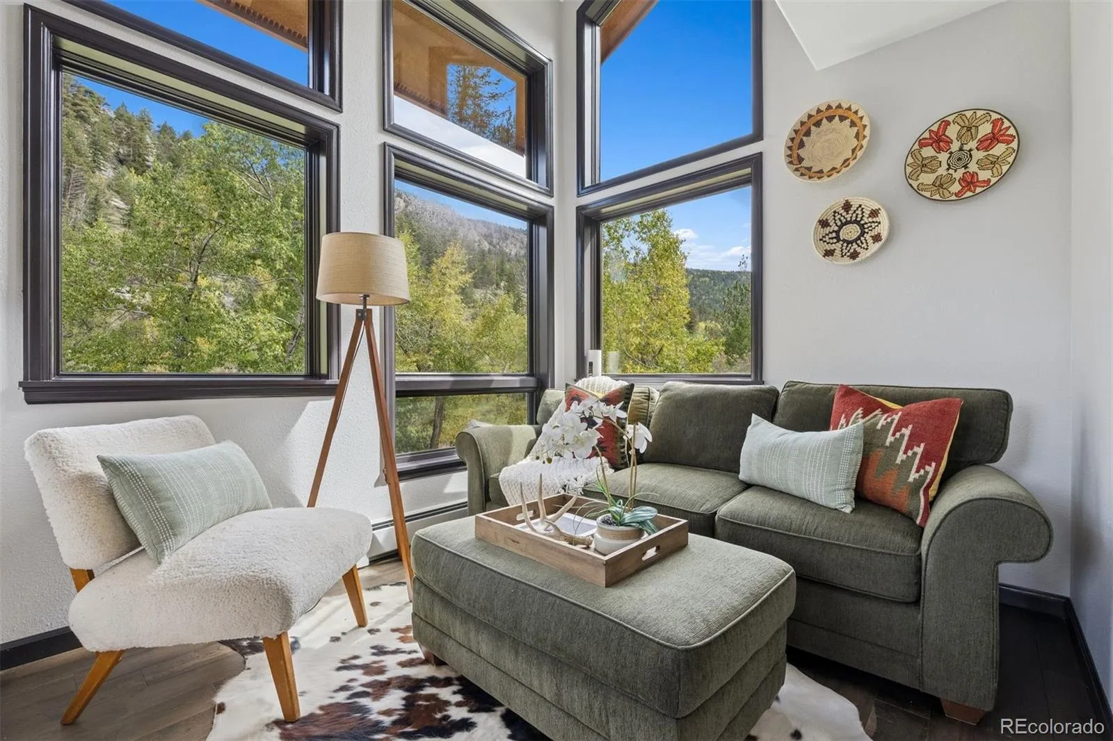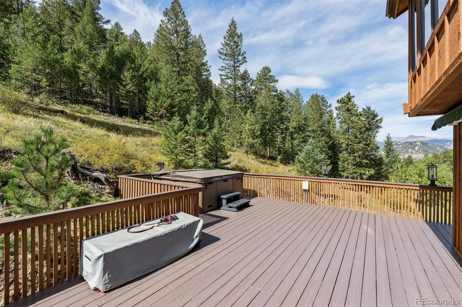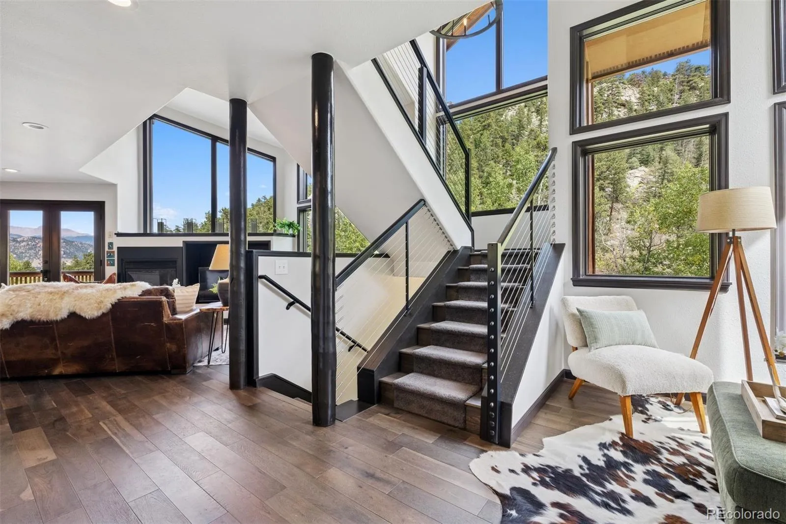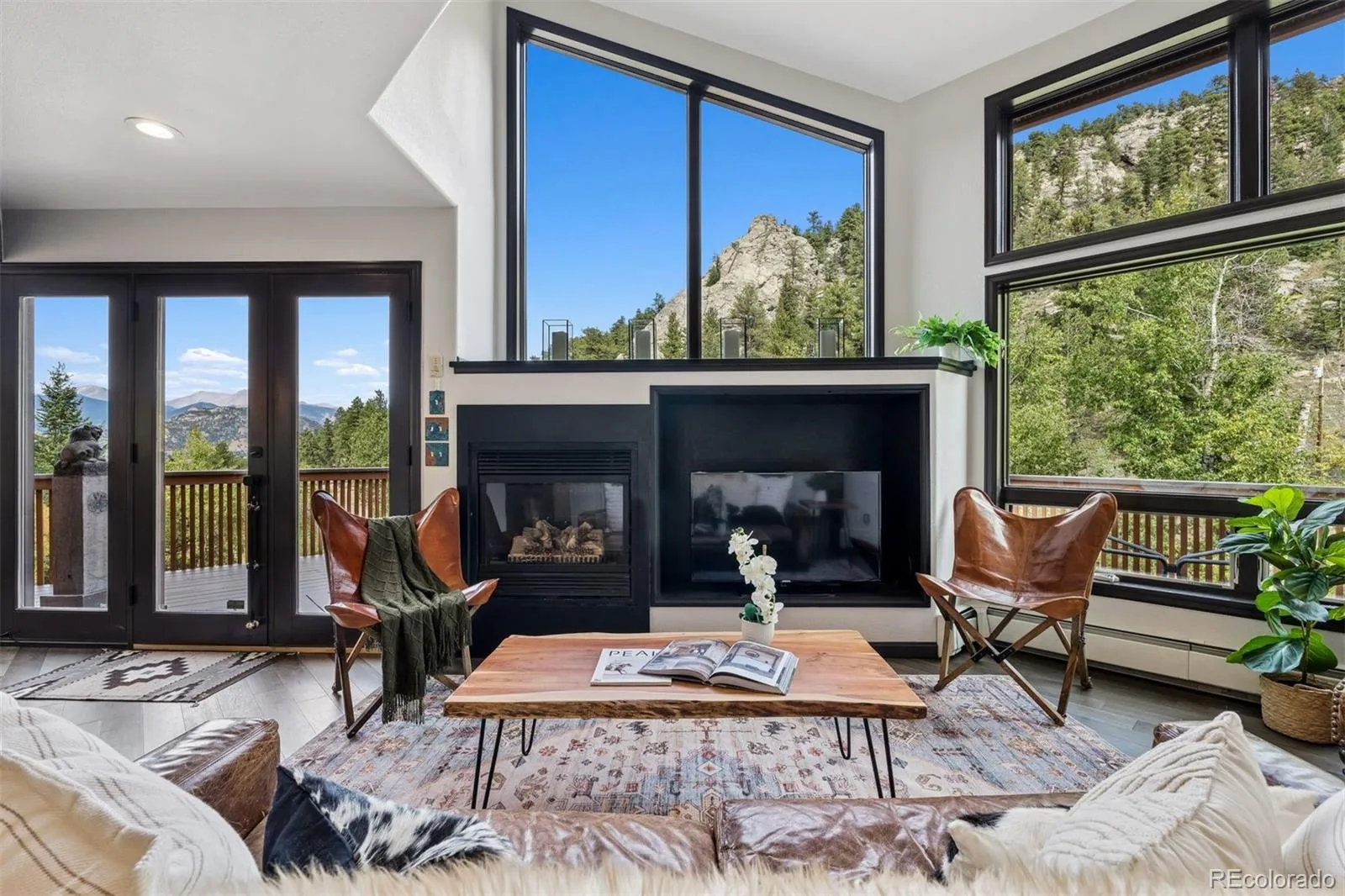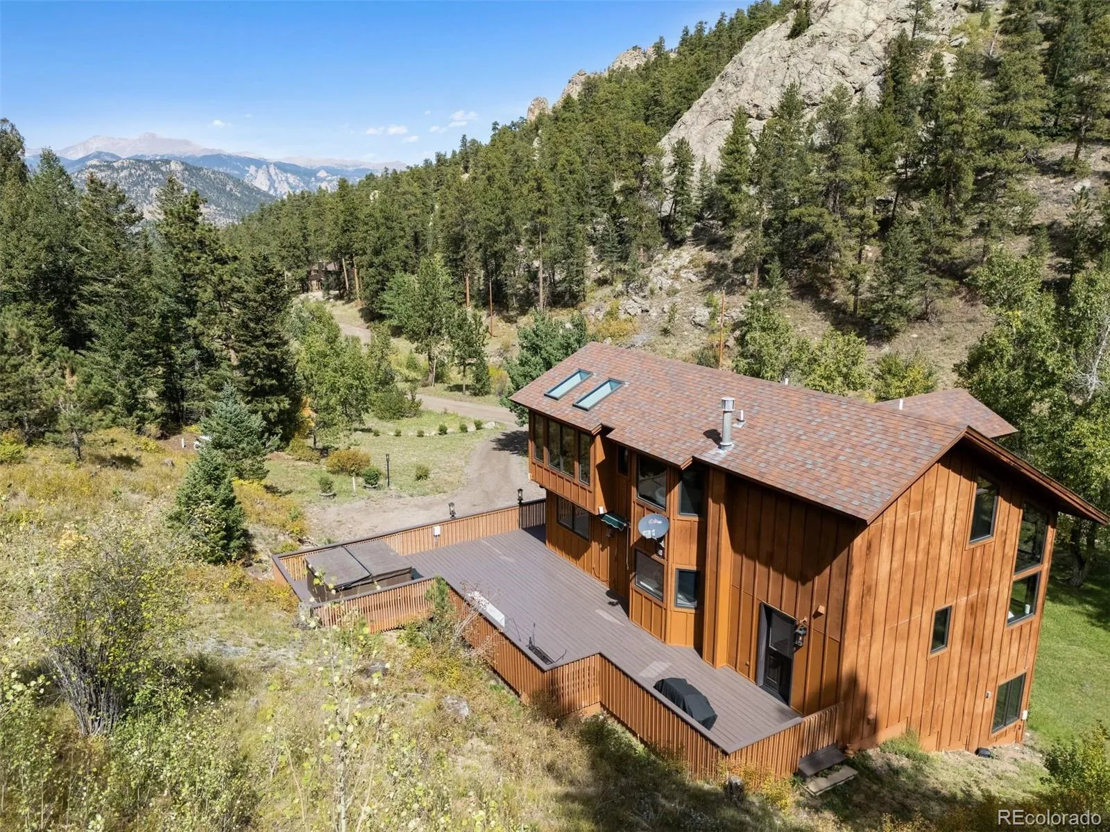 *OPEN HOUSE this Saturday, October 4th 1:00 – 3:00** Set on nearly twenty acres abutting Roosevelt National Forest, this mountain modern retreat captures the essence of refined mountain living with thoughtful updates, captivating views, and a sense of seclusion just minutes from the town of Estes Park. The property enjoys a year-round creek, meadowland vistas, and a wraparound deck newly painted and designed for seamless indoor-outdoor living, complete with a hot tub for quiet evenings under the stars. Inside, over 2,000 square feet of living space reflects a 2020 renovation that balances modern luxury with rustic character. The great room showcases natural light and inviting views, while a den offers a cozy space for reading or rest. The upstairs loft provides flexibility for an office or guest sleeping quarters. The primary suite is a true sanctuary with its fireplace, spa-worthy five-piece bath, and Japanese soaking tub that frames the valley setting beyond. A three-car heated garage adds convenience and practicality, while the flat, grassed yard provides rare usability in a mountain setting—ideal for young explorers or four-legged companions. Thoughtfully curated as a retreat, the property can be offered partially furnished and fully stocked with essentials, making it an exceptional second-home opportunity. Daily encounters with elk and abundant wildlife add to the sense of wonder. Only ten minutes from the heart of Estes Park, with its vibrant shops, dining, and trailheads, this residence presents an unmatched opportunity to live in harmony with Colorado’s natural beauty while enjoying the comforts of a fully modernized home.