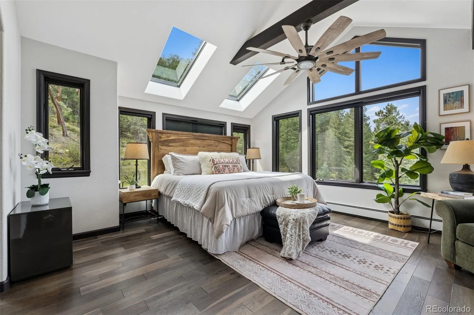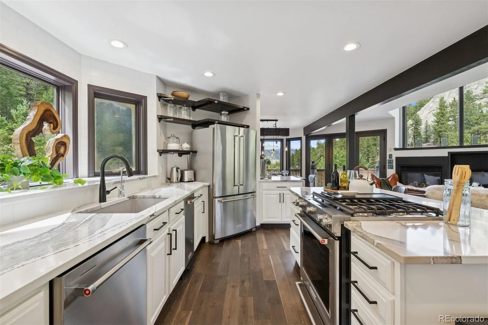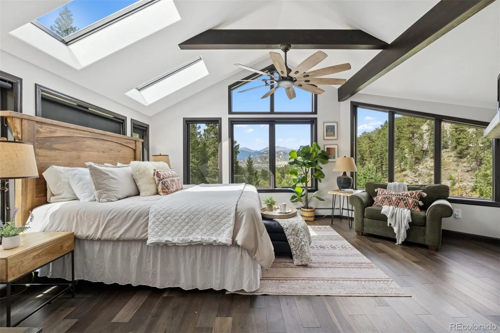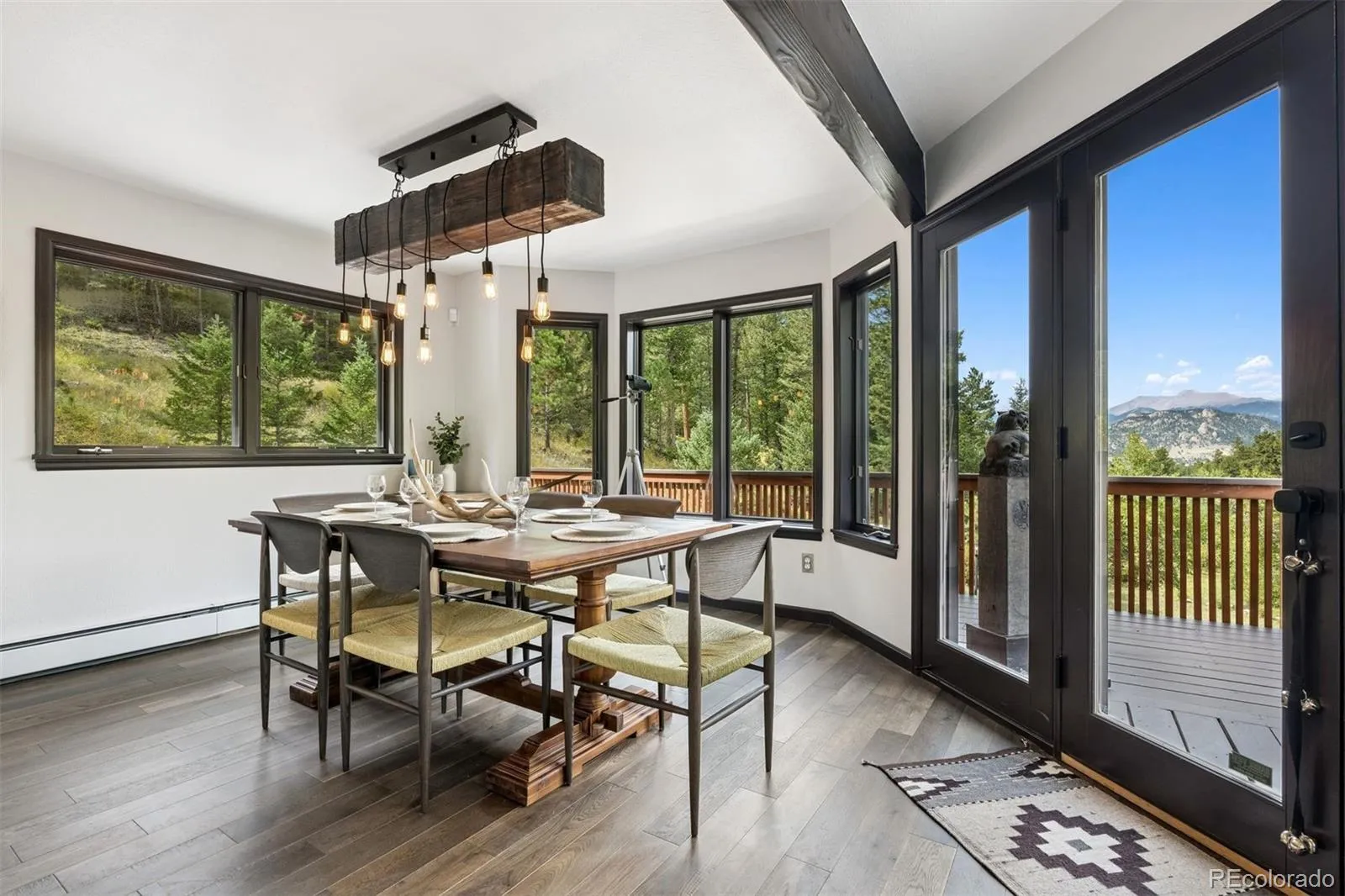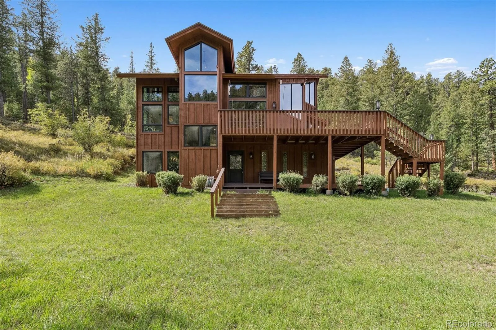 *OPEN HOUSE this Saturday, October 4th 1:00 – 3:00** Set on nearly twenty acres abutting Roosevelt National Forest, this mountain modern retreat captures the essence of refined mountain living with thoughtful updates, captivating views, and a sense of seclusion just minutes from the town of Estes Park. The property enjoys a year-round creek, meadowland vistas, and a wraparound deck newly painted and designed for seamless indoor-outdoor living, complete with a hot tub for quiet evenings under the stars. Inside, over 2,000 square feet of living space reflects a 2020 renovation that balances modern luxury with rustic character. The great room showcases natural light and inviting views, while a den offers a cozy space for reading or rest. The upstairs loft provides flexibility for an office or guest sleeping quarters. The primary suite is a true sanctuary with its fireplace, spa-worthy five-piece bath, and Japanese soaking tub that frames the valley setting beyond. A three-car heated garage adds convenience and practicality, while the flat, grassed yard provides rare usability in a mountain setting—ideal for young explorers or four-legged companions. Thoughtfully curated as a retreat, the property can be offered partially furnished and fully stocked with essentials, making it an exceptional second-home opportunity. Daily encounters with elk and abundant wildlife add to the sense of wonder. Only ten minutes from the heart of Estes Park, with its vibrant shops, dining, and trailheads, this residence presents an unmatched opportunity to live in harmony with Colorado’s natural beauty while enjoying the comforts of a fully modernized home.