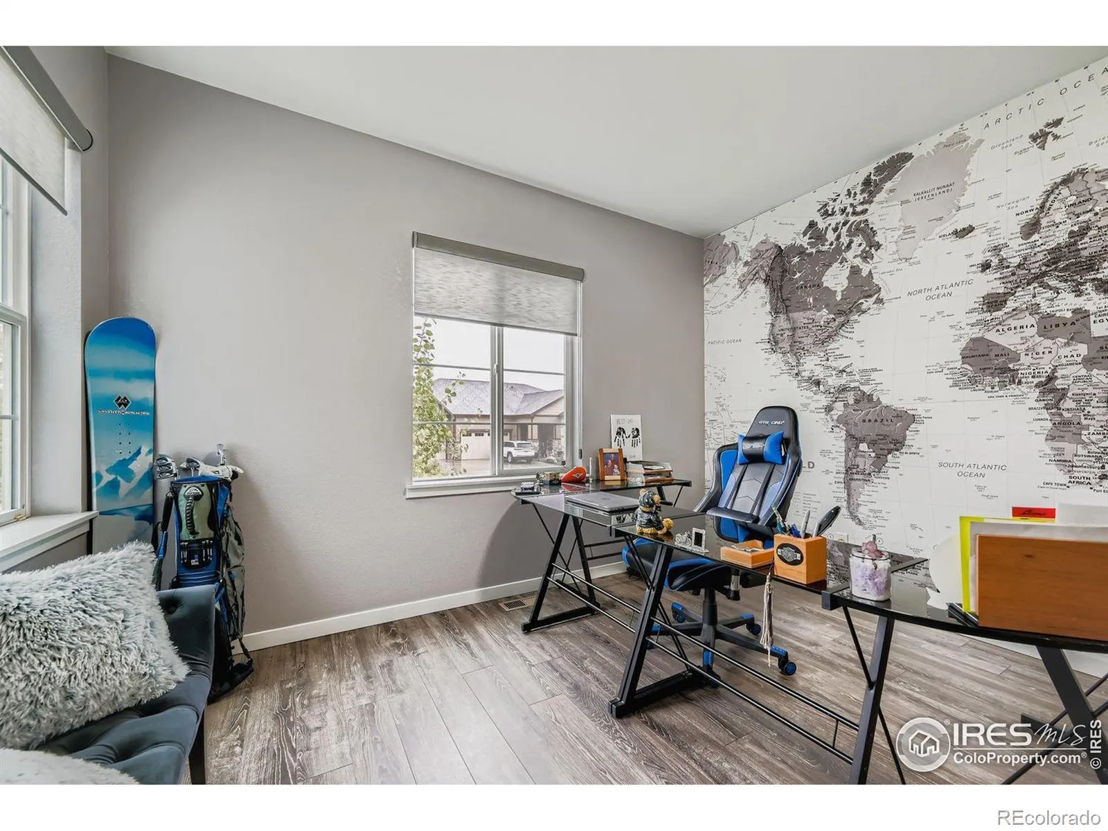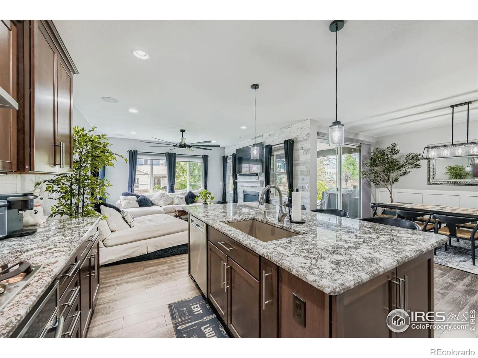 Set on a corner lot with sweeping mountain views, this Colliers Hill two-story combines space, style, and thoughtful updates. A bright two-story foyer welcomes you into the great room with a cozy gas fireplace and open dining area. The gourmet kitchen features granite counters, a large island, stainless appliances, and abundant cabinetry. The main level also offers a private study plus a bedroom with nearby 3/4 bath-perfect for guests or multigenerational living.Upstairs, the owner’s retreat impresses with a remodeled spa-like 5-piece bath and soaking tub. Two additional bedrooms each feature walk-in closets and full baths. The finished basement adds incredible versatility with a workout room, bedroom, 3/4 bath, and spacious great room.Outdoors, enjoy updated curb appeal, a covered patio, and a backyard designed for entertaining with mountain views as your backdrop. Added perks include a brand-new roof, owned solar, total home automation, a tankless on-demand water heater, and a heated 3-car tandem garage with epoxy floors-plus energy-efficient upgrades throughout.Directly across from The Overlook amenity campus-with community lounge, demo kitchen, fitness studio, and pool-this home delivers comfort, convenience, and a vibrant lifestyle near shopping, dining, and commuter routes.
