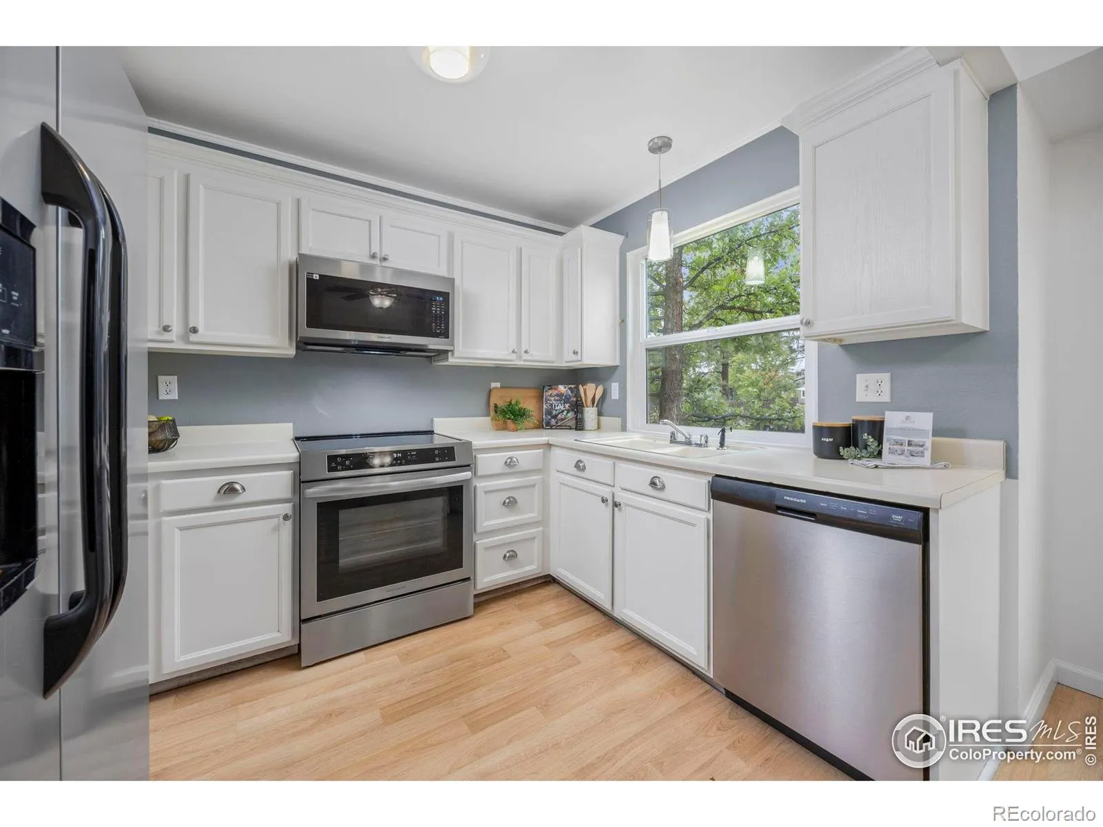 Welcome to this charming home, ideally located in a peaceful cul-de-sac and offering the perfect balance of tranquility and recreation. As you enter the home, you’ll be greeted by vaulted ceilings and abundant natural light that pours in through large windows. With newly refreshed carpet and paint, this home feels bright, airy, and welcoming, with plenty of space for both relaxation and entertaining. The living and dining areas flow seamlessly into the bright kitchen, which offers generous wood cabinetry for storage and sunny windows overlooking the yard. Upstairs, you’ll find a cozy primary bedroom with a 3/4 ensuite for added privacy and comfort. Two more well-sized South facing bedrooms offer plenty of natural light and easy access to a beautifully-updated bathroom. The lower level provides extra living space with a cozy gas fireplace and access to the backyard. Step out onto the expansive, freshly-painted covered deck that is protected from the elements and can be enjoyed all year long. The fully-fenced, lush backyard feels like your own private oasis and backs to an open space park. Enjoy the added bonus of owned solar panels, providing energy efficiency and helping to lower utility costs. This home’s unbeatable location is just a short walk to beautiful Waneka Lake, community parks, schools, shopping, dining, and vibrant Old Town Lafayette.
