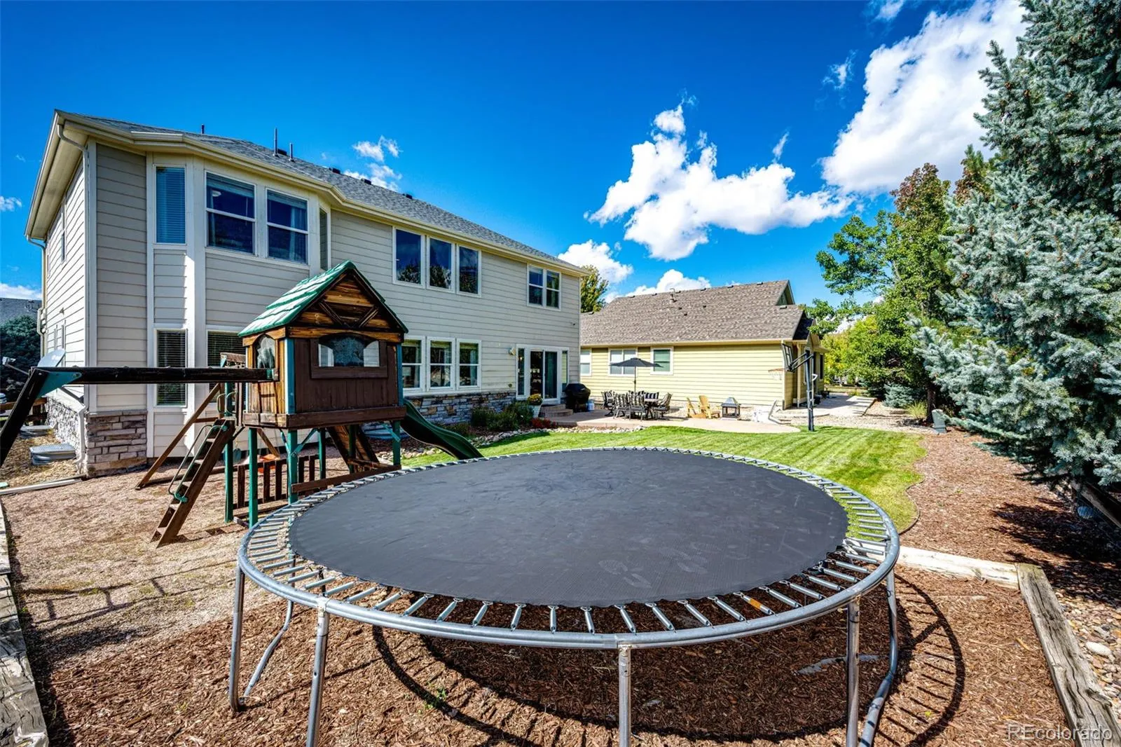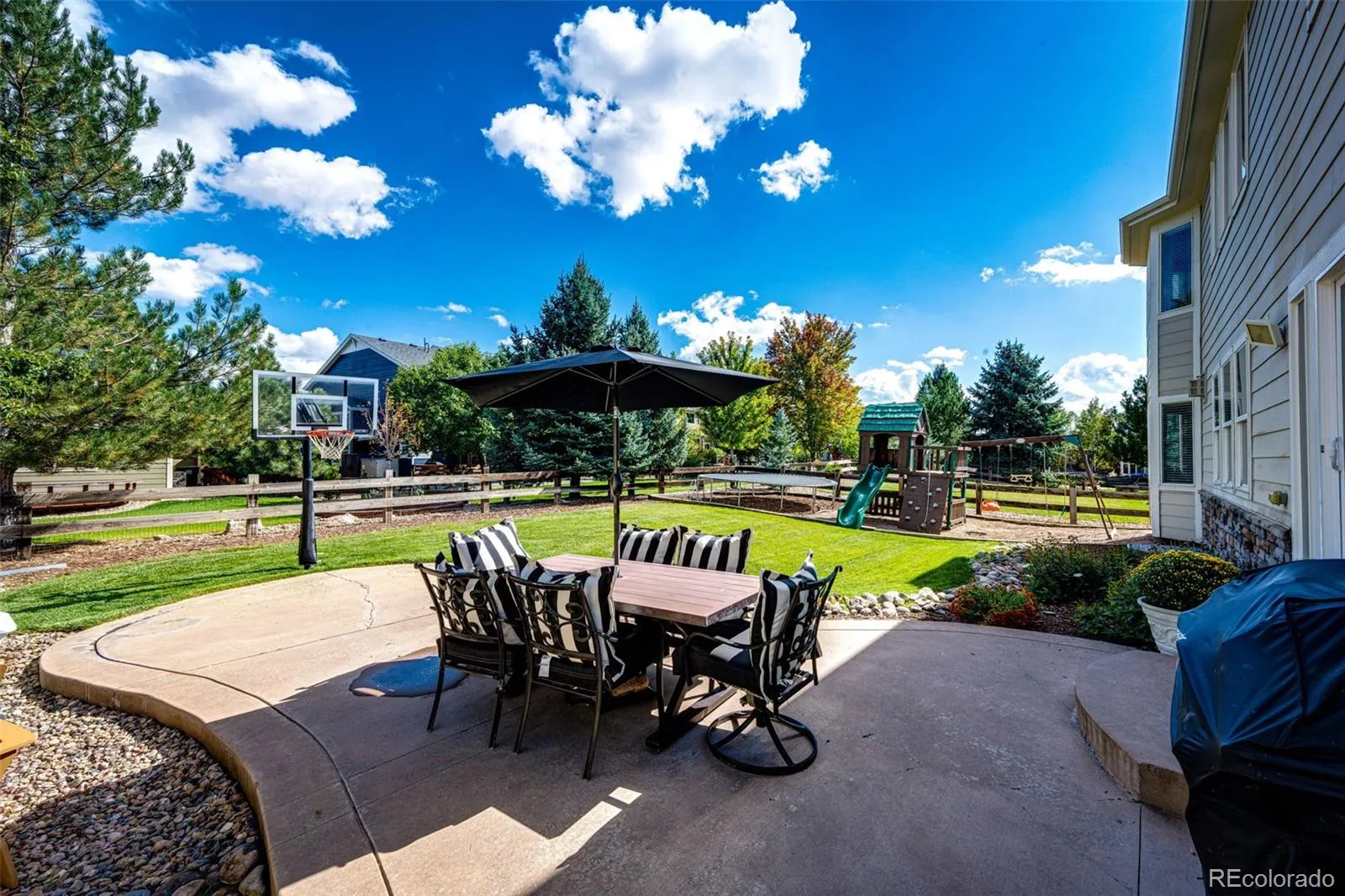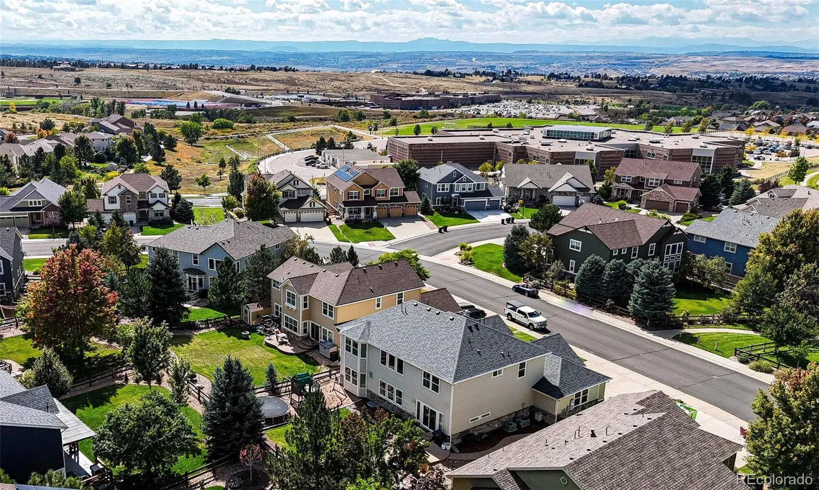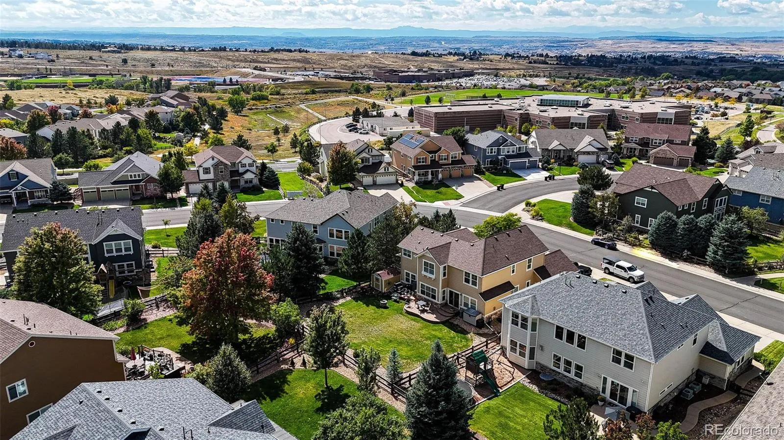 The ideal home in the perfect location has just hit the market, close to schools, parks, open space and hiking/biking trails are just minutes from this home. You will love the home the second you open the door the open floor plan that boasts of formal living and dining rooms, a 2 story great room is welcoming and invites you to relax in front of fireplace as you enjoy the light that flows through floor to ceiling windows. The updated kitchen is a chefs dream with a huge center island finished with a beautiful quartz countertop, large breakfast nook, abundant cabinets and huge walk in pantry for storage. The laundry room is just off the kitchen, the main floor is completed by a bedroom that could be used as a study, half bath and wood floors throughout. The second floor is beautiful and updated with new carpet. The primary suite is the perfect retreat, the room is large, boasts of a tray ceiling, the primary bath has a spa-like feel, beautiful tile, soaking tub, separate vanities and two large walk-in closets. Three additional bedrooms are separated from the primary suite by a cat walk that overlooks the great room, bedroom 2 boasts of a private bath. Bedrooms 3 and 4 share a hall bath that is spacious with dual sinks. The finished basement completes the home with a theatre room, large bedroom, and bathroom. The lot is oversized, as you step outside to a backyard a large patio is the perfect spot to gather, a large play area finishes the space, perfect for playing and enjoying the outdoors. The home is completed with a 3-car garage, Don’t miss out on this home, all you want is close by, community parks, scenic trails, Black Bear Golf Club, Colorado Golf Club, easy access to Parker for dining, shopping, and everyday needs. This home is just waiting for you, come see today!