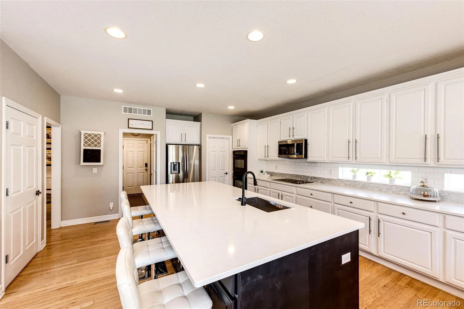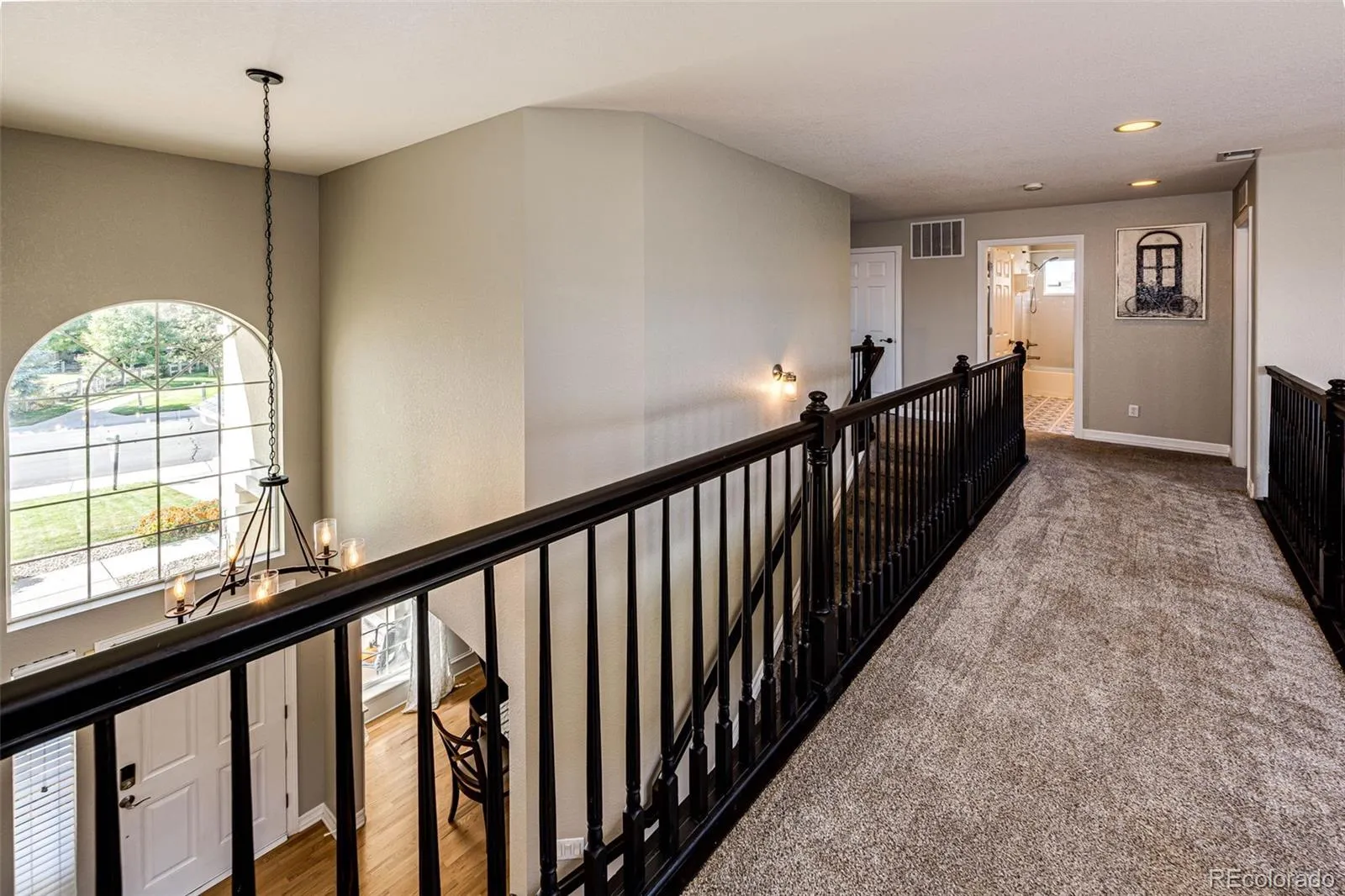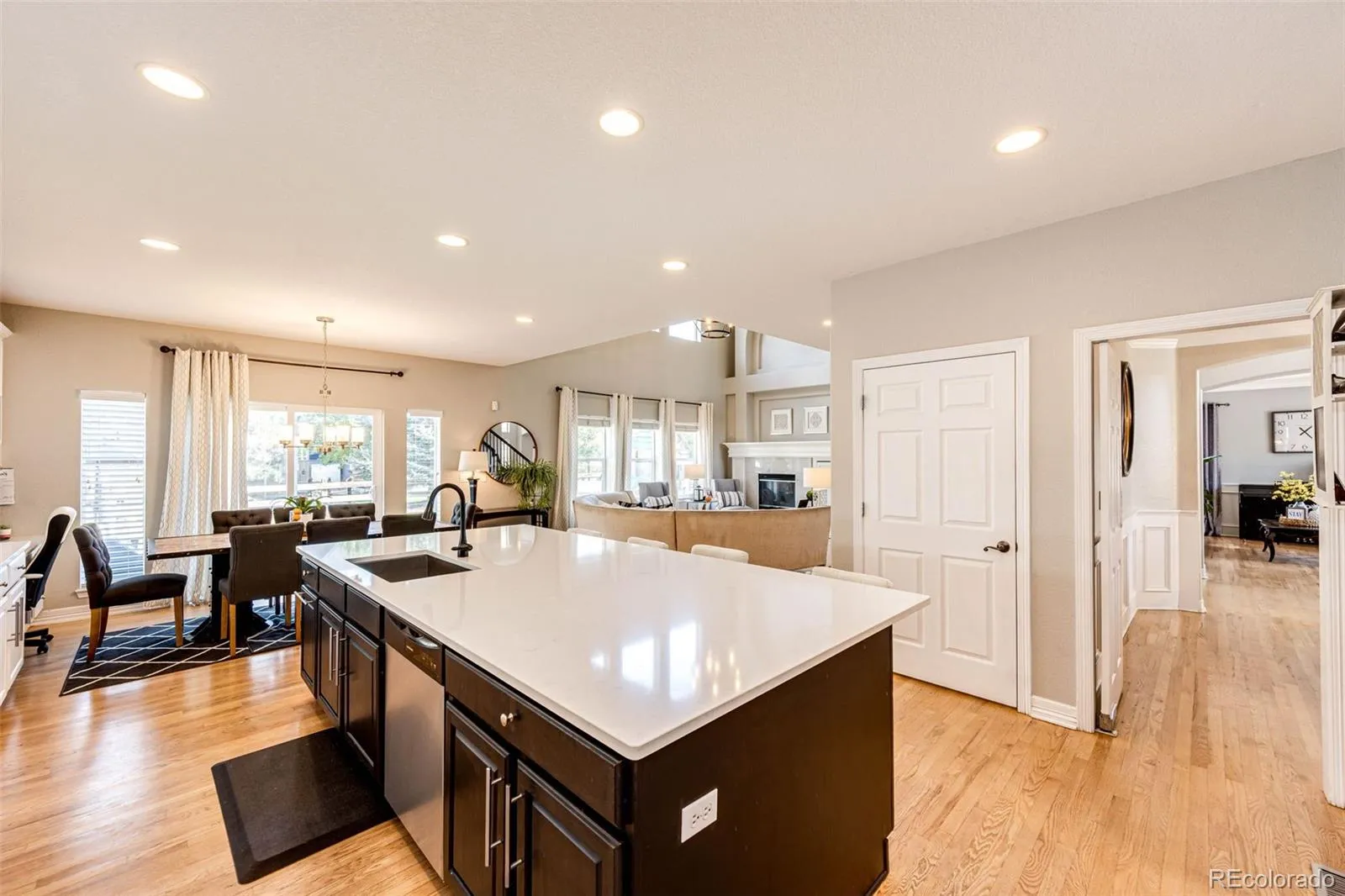 The ideal home in the perfect location has just hit the market, close to schools, parks, open space and hiking/biking trails are just minutes from this home. You will love the home the second you open the door the open floor plan that boasts of formal living and dining rooms, a 2 story great room is welcoming and invites you to relax in front of fireplace as you enjoy the light that flows through floor to ceiling windows. The updated kitchen is a chefs dream with a huge center island finished with a beautiful quartz countertop, large breakfast nook, abundant cabinets and huge walk in pantry for storage. The laundry room is just off the kitchen, the main floor is completed by a bedroom that could be used as a study, half bath and wood floors throughout. The second floor is beautiful and updated with new carpet. The primary suite is the perfect retreat, the room is large, boasts of a tray ceiling, the primary bath has a spa-like feel, beautiful tile, soaking tub, separate vanities and two large walk-in closets. Three additional bedrooms are separated from the primary suite by a cat walk that overlooks the great room, bedroom 2 boasts of a private bath. Bedrooms 3 and 4 share a hall bath that is spacious with dual sinks. The finished basement completes the home with a theatre room, large bedroom, and bathroom. The lot is oversized, as you step outside to a backyard a large patio is the perfect spot to gather, a large play area finishes the space, perfect for playing and enjoying the outdoors. The home is completed with a 3-car garage, Don’t miss out on this home, all you want is close by, community parks, scenic trails, Black Bear Golf Club, Colorado Golf Club, easy access to Parker for dining, shopping, and everyday needs. This home is just waiting for you, come see today!