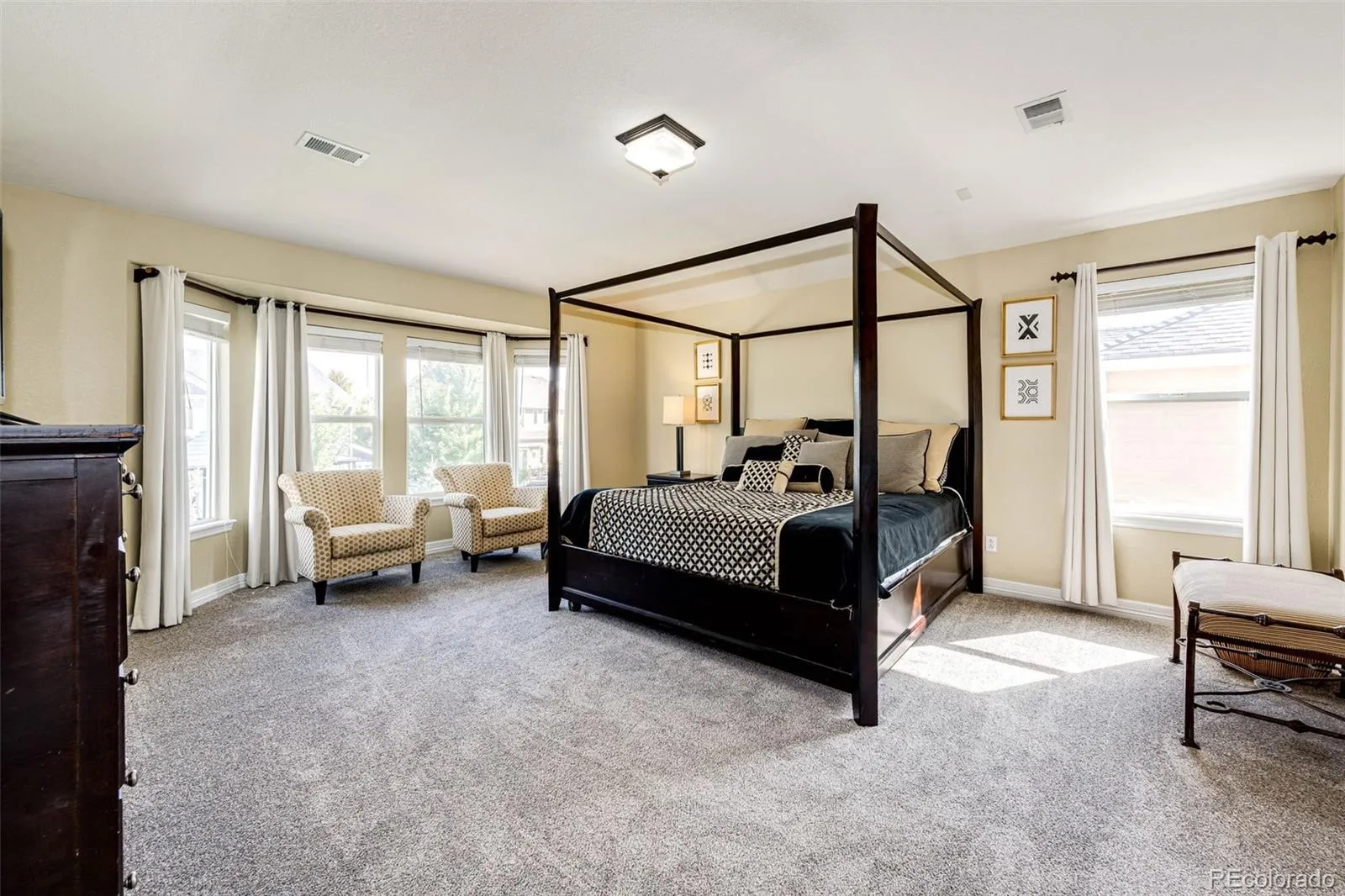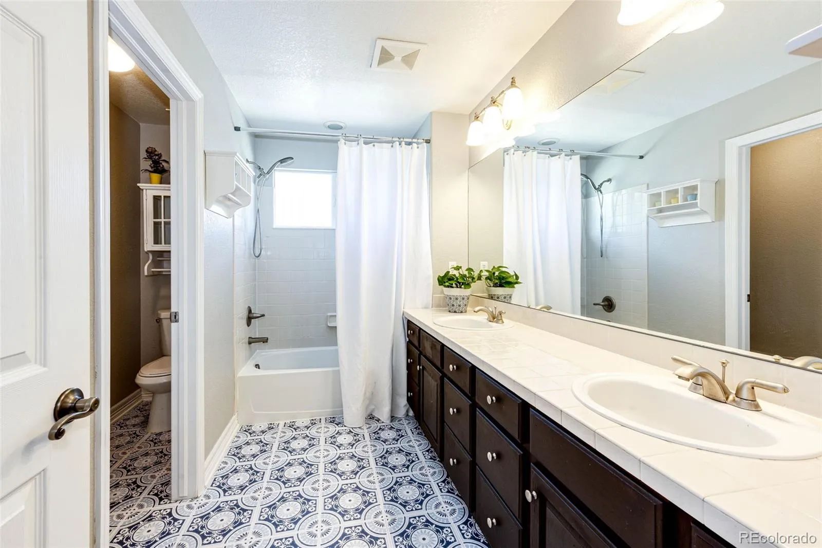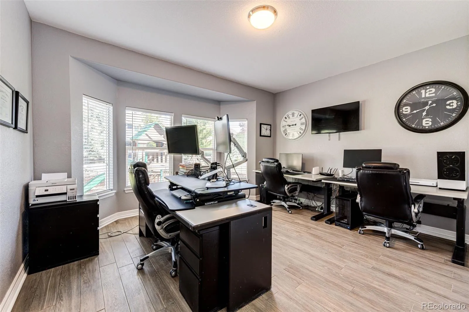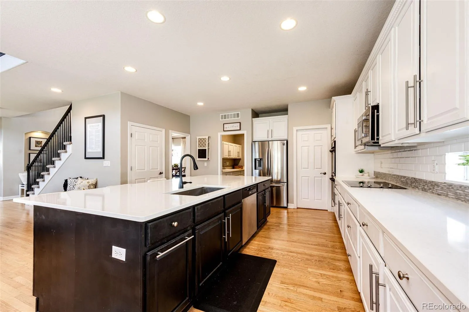 The ideal home in the perfect location has just hit the market, close to schools, parks, open space and hiking/biking trails are just minutes from this home. You will love the home the second you open the door the open floor plan that boasts of formal living and dining rooms, a 2 story great room is welcoming and invites you to relax in front of fireplace as you enjoy the light that flows through floor to ceiling windows. The updated kitchen is a chefs dream with a huge center island finished with a beautiful quartz countertop, large breakfast nook, abundant cabinets and huge walk in pantry for storage. The laundry room is just off the kitchen, the main floor is completed by a bedroom that could be used as a study, half bath and wood floors throughout. The second floor is beautiful and updated with new carpet. The primary suite is the perfect retreat, the room is large, boasts of a tray ceiling, the primary bath has a spa-like feel, beautiful tile, soaking tub, separate vanities and two large walk-in closets. Three additional bedrooms are separated from the primary suite by a cat walk that overlooks the great room, bedroom 2 boasts of a private bath. Bedrooms 3 and 4 share a hall bath that is spacious with dual sinks. The finished basement completes the home with a theatre room, large bedroom, and bathroom. The lot is oversized, as you step outside to a backyard a large patio is the perfect spot to gather, a large play area finishes the space, perfect for playing and enjoying the outdoors. The home is completed with a 3-car garage, Don’t miss out on this home, all you want is close by, community parks, scenic trails, Black Bear Golf Club, Colorado Golf Club, easy access to Parker for dining, shopping, and everyday needs. This home is just waiting for you, come see today!