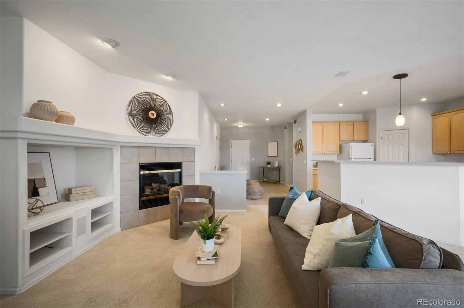 Active and social living at its best in Heritage Eagle Bend Golf Club, a 45+ age gated community in SE Aurora featuring an 18-hole, par 72 championship golf course designed by Arthur Hills! A grand clubhouse, Eagle’s Nest restaurant, indoor and outdoor pools, workout facilities, multiple sport courts including bocce, pickleball, tennis, event spaces, library, and even a billiards room for vibrant socializing opportunities or peacefully enjoying the plentiful amenities. This Legacy model 601 floorplan home features a covered front porch, 2 bedrooms and 2 bathrooms on the main floor plus a generously sized laundry room/office! Open kitchen with large walk-in pantry plus smooth counters and barstool height seating offers a versatile space for dining, cooking, and living. Gas fireplace and built-in TV nook in the living room. Two private patios for enjoying the ideal Colorado climate. Attached 2 car garage with plentiful storage and a built-in worktable and shelving. Full, walk-out basement with a covered patio outside its sliding glass doors provides unfinished square footage to double your home’s living space and bring your design dreams to life with your custom touches!