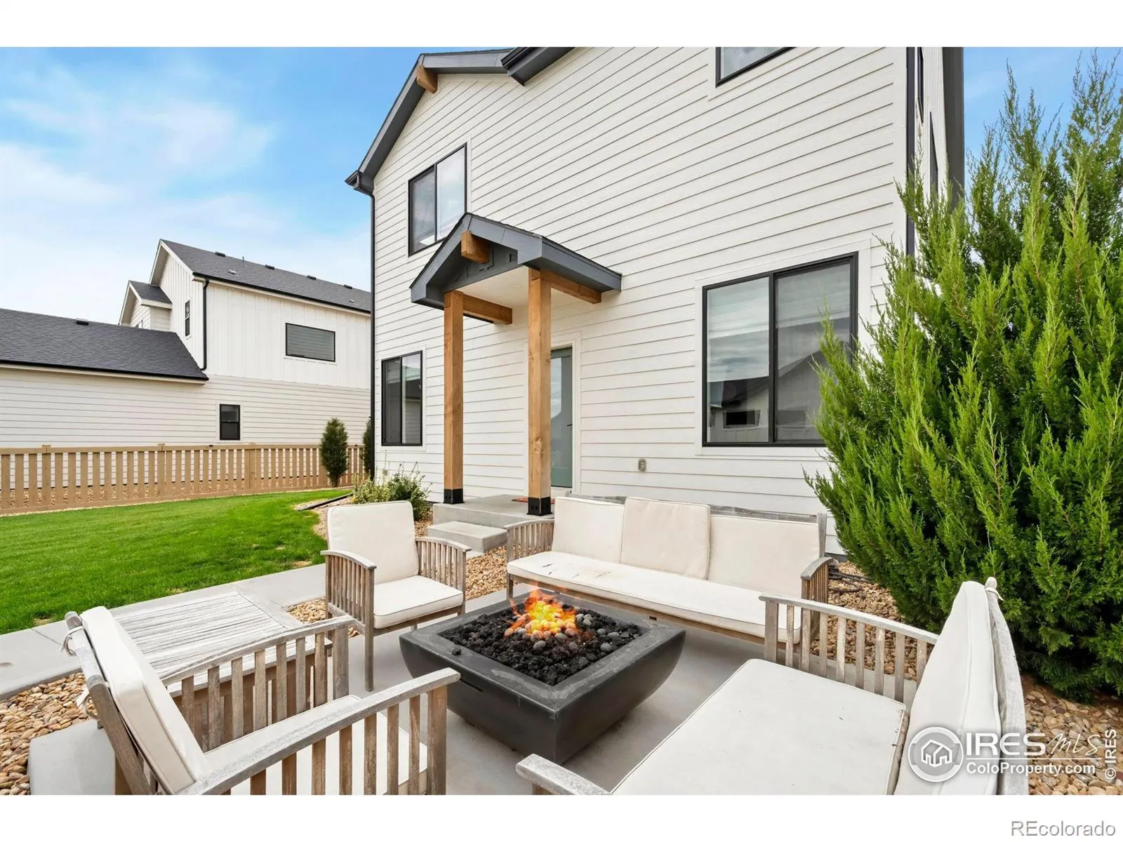 Experience modern living at its finest in this stunning 5 bedroom, 4.5 bath home in Timnath Ranch. Designed with both style and function in mind, this residence features an open-concept layout, sleek finishes, and thoughtful details throughout. The main level offers a convenient laundry space in the mudroom, while the luxurious primary suite boasts its own private laundry for ultimate ease. The exterior is just as impressive, with beautiful curb appeal, expansive covered patios perfect for entertaining, and a cozy fire pit to enjoy Colorado evenings year-round. With generous bedrooms, spa-inspired baths, and seamless indoor-outdoor flow, this home delivers the perfect blend of comfort and sophistication.