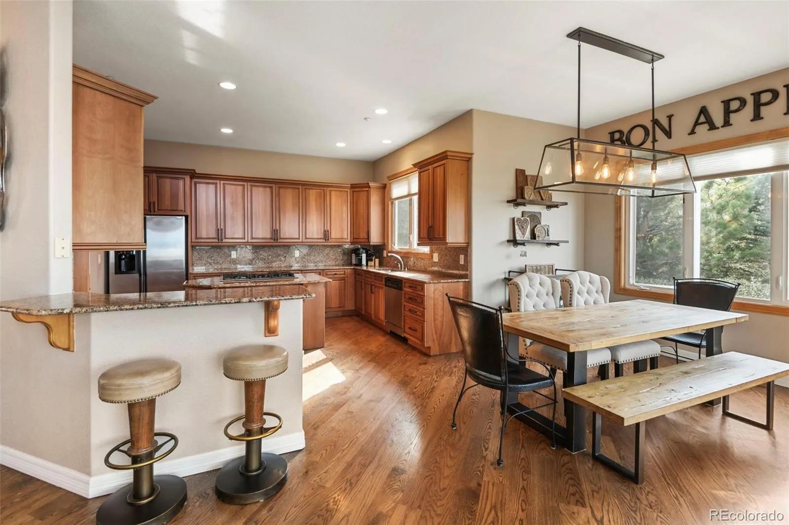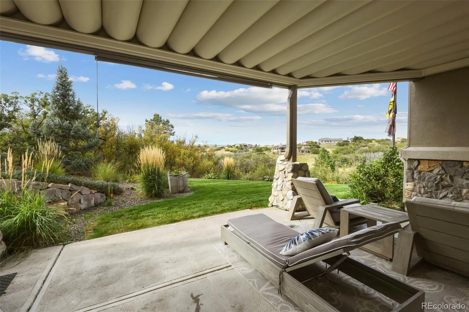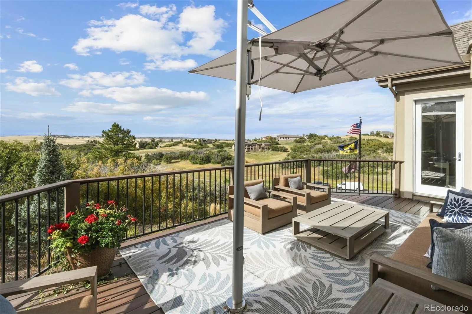 Step outside to a large Trex deck and covered patio, perfect for entertaining or enjoying serene sunsets. With trails and open space nearby, plus easy access to I-25, this home balances privacy, recreation, and convenience.