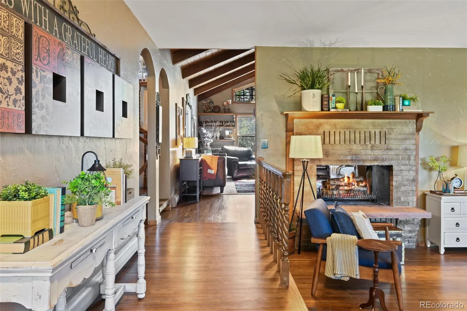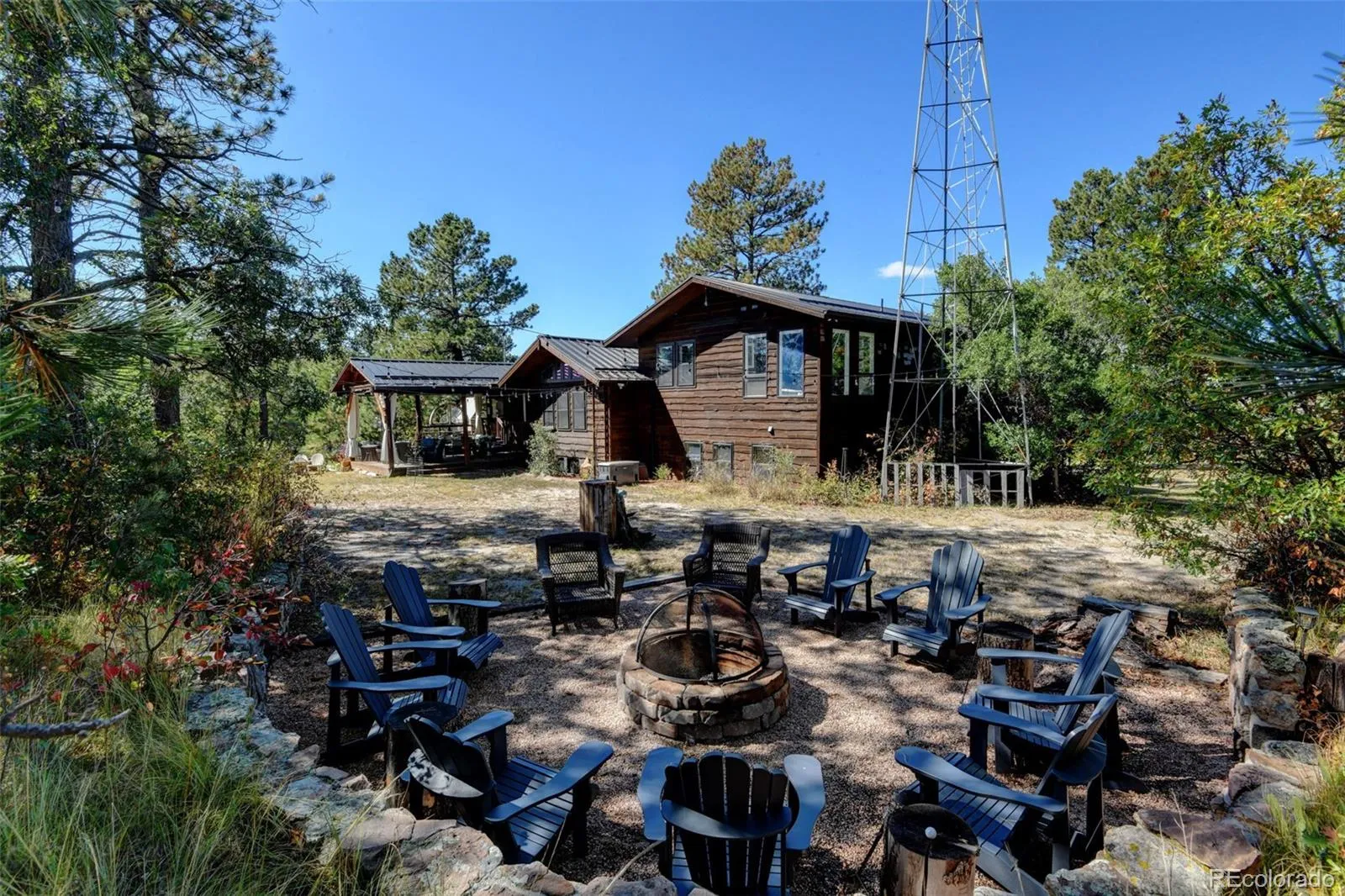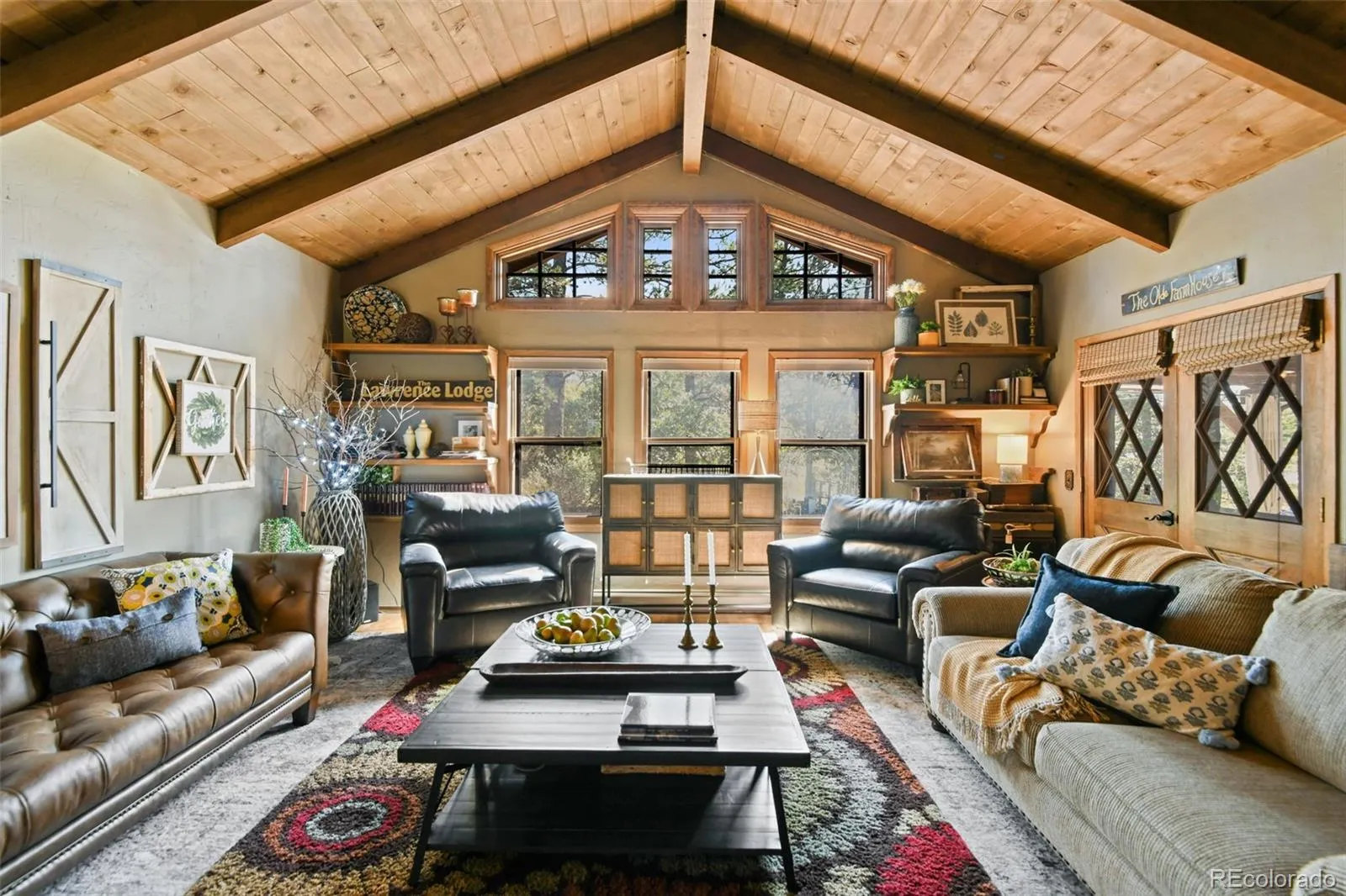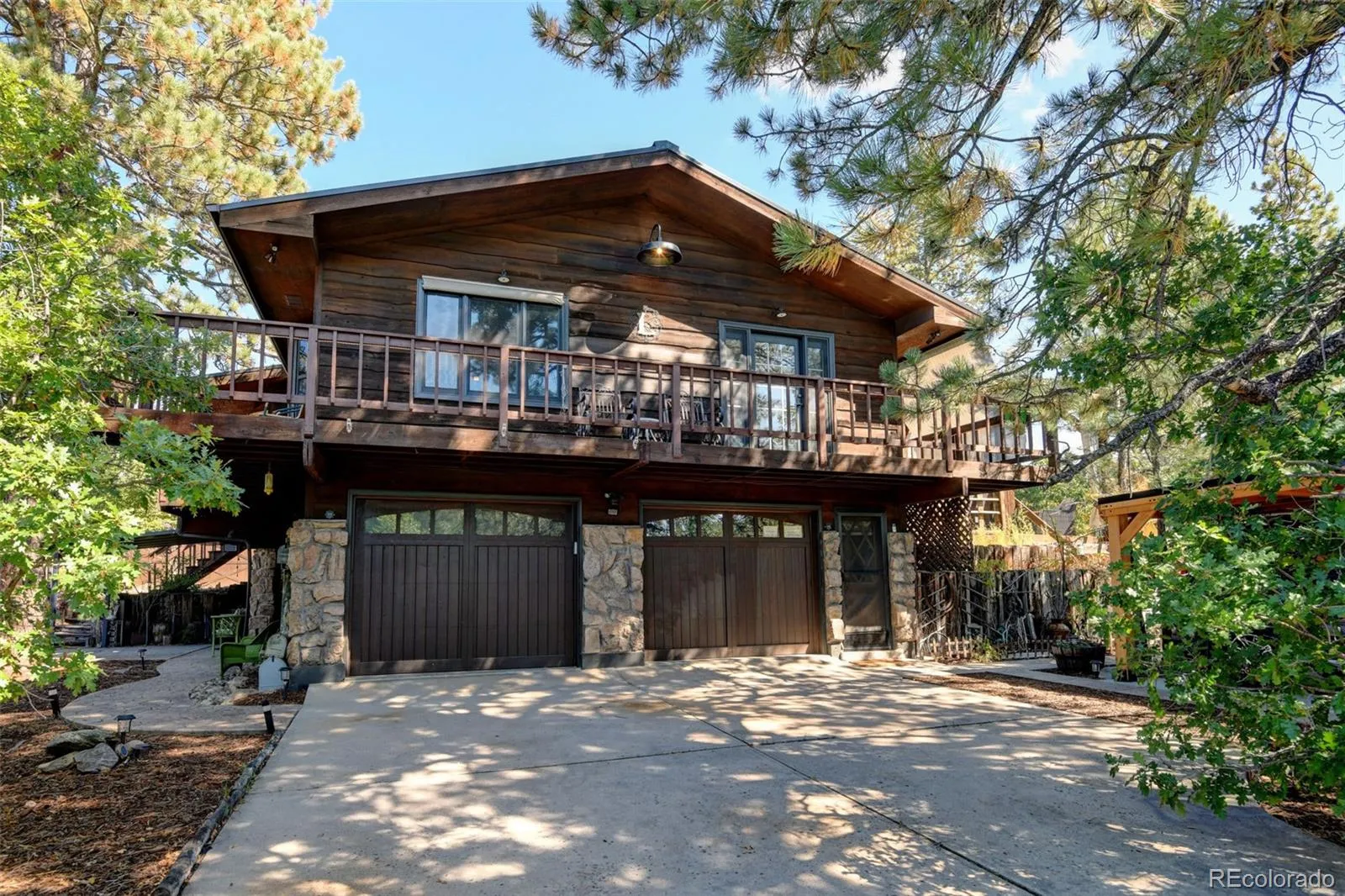 Nearly 6 acres of land! **BEAUTIFUL COUNTRY AND FOREST LIVING, YET CITY CLOSE, WITH NO HOA** Welcome to this AMAZING one-of-a-kind property where vintage charm meets modern purpose. Built by the father/son team who also built the Keystone Lodge, this home embraces style, warmth, comfort, and hospitality. From the moment you walk into the front foyer, with so many of its original features, you are immersed in authentic Colorado lodge living. With multiple and very intentional indoor and outdoor gathering areas, this property is ready for all your entertaining dreams and future special events. The living room and great room share the 2-sided wood-burning fireplace, one side anchored by the moss rock found on the property itself. The dining room and updated kitchen have so much built-in storage! The primary suite is just a few steps up from the main floor and boasts a huge bedroom with private sitting area and access to the walk-around deck where you can watch the glorious sunsets over the Rocky Mountains. A large walk-in closet, a five-piece updated bath showcasing a quaint clawfoot tub, and a separate office/den/nursery make up the entire primary suite floor. On the lower level, you will find 3 more bedrooms and a full bath. The walkout basement has a private entrance, perfect to use as an in-law suite, tenant, or for a home-school room. There is also a man-cave area, along with a 3/4 bath. What makes this home so special is that each specific area carries its own unique story! No detail was overlooked when making the necessary modern updates while maintaining the nostalgic charm. There is a barn, greenhouse, firepit, chicken coop, and His & Her sheds. ALL THE EXTRAS: a boiler for heating, 2 water heaters, generator, central vacuum system, metal roof, storm windows, cords of wood, propane tank, radon mitigation system, updated interior and exterior light fixtures, custom kitchen pieces, updated garage doors, wishing well, ceiling fans, and so much more.