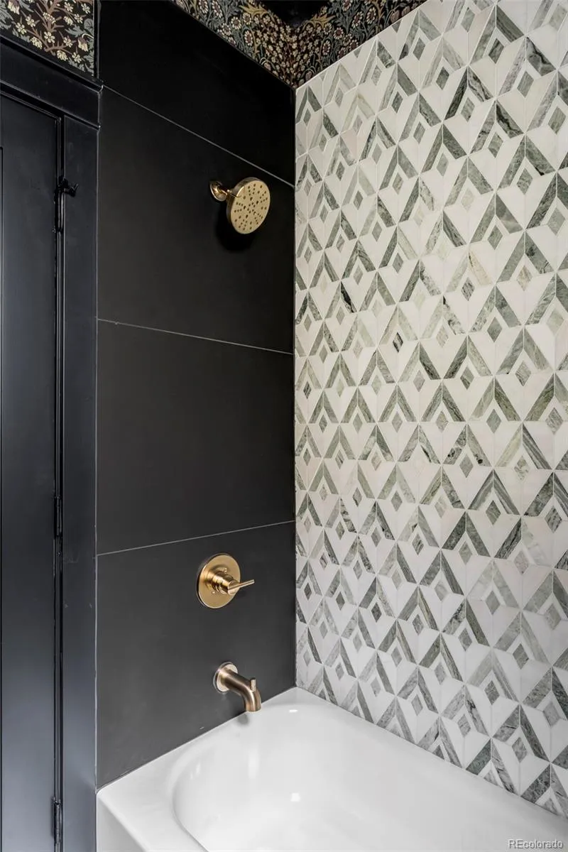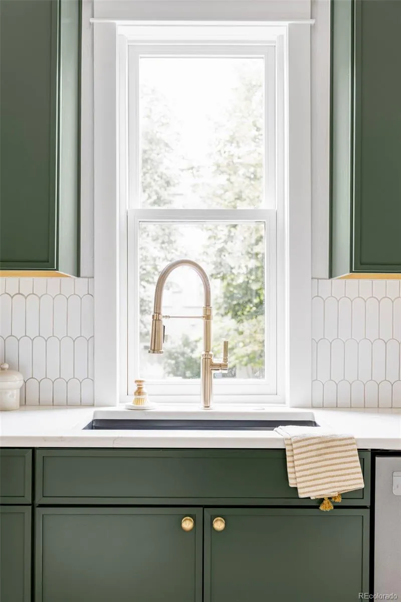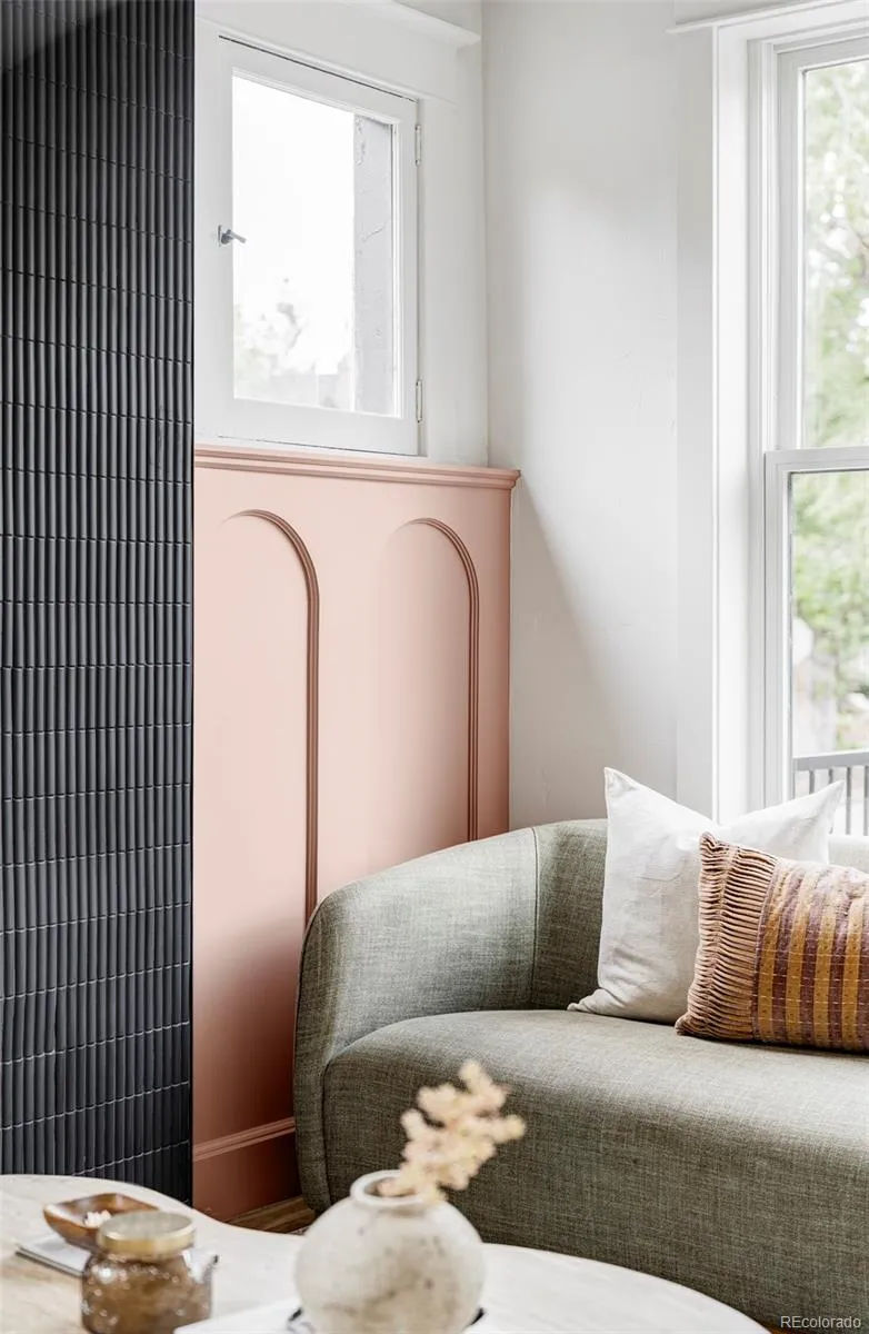 Truly Masterful Alamo Placita Renovation by Garden City Design Build. After years of neglect this charming all brick beauty finally received the love it deserved and has had a complete Top/Bottom – Inside/Out fully permitted renovation and is ready for someone to call it HOME! Perched on a little hill, 1002 is the larger half of this duplex being offered with 3 beds and 2 baths. The eco-friendly landscaping, front steps and inviting porch welcomes you in. Take it slow and notice all the details! You’ll notice straight away the historic leaded glass front windows set into energy efficient new windows and the restored Solid wood front door then step into the light filled living room streaming through the new high end Andersen E-series windows. The arched wall trim molding will stun and floor to ceiling tile grounds the space. New solid wood floors throughout the main level and into the 2 main floor bedrooms. Beautiful main floor full bath with gorgeous wall paper. The kitchen is not only beautiful with its green slim shaker cabinet and quartz countertops but functional with thoughtful cabinet design. The cute and practical mudroom leads down a few stairs to the back door or down to the bright garden level featuring a cozy family room/den and the Primary Bedroom with a walk-in closet and en-suite bathroom with a large walk-in shower enclosure and double vanity. Beauty is not just skin deep here like so many other houses! Everything you can’t see has also been done including a new foundation and exterior brick work. All the plumbing has been replaced including the main water supply line and sewer line as well as a new high efficiency water heater. All electrical wiring is new including the service panel. HVAC ducts have been replaced and high efficiency furnace and central AC installed. Newer Roof and brick 2 car Garage accessible from Ogden and not a tiny Denver alley. Perfect walkable location 2 blocks to 6th ave shops, restaurants and across the street from the park!