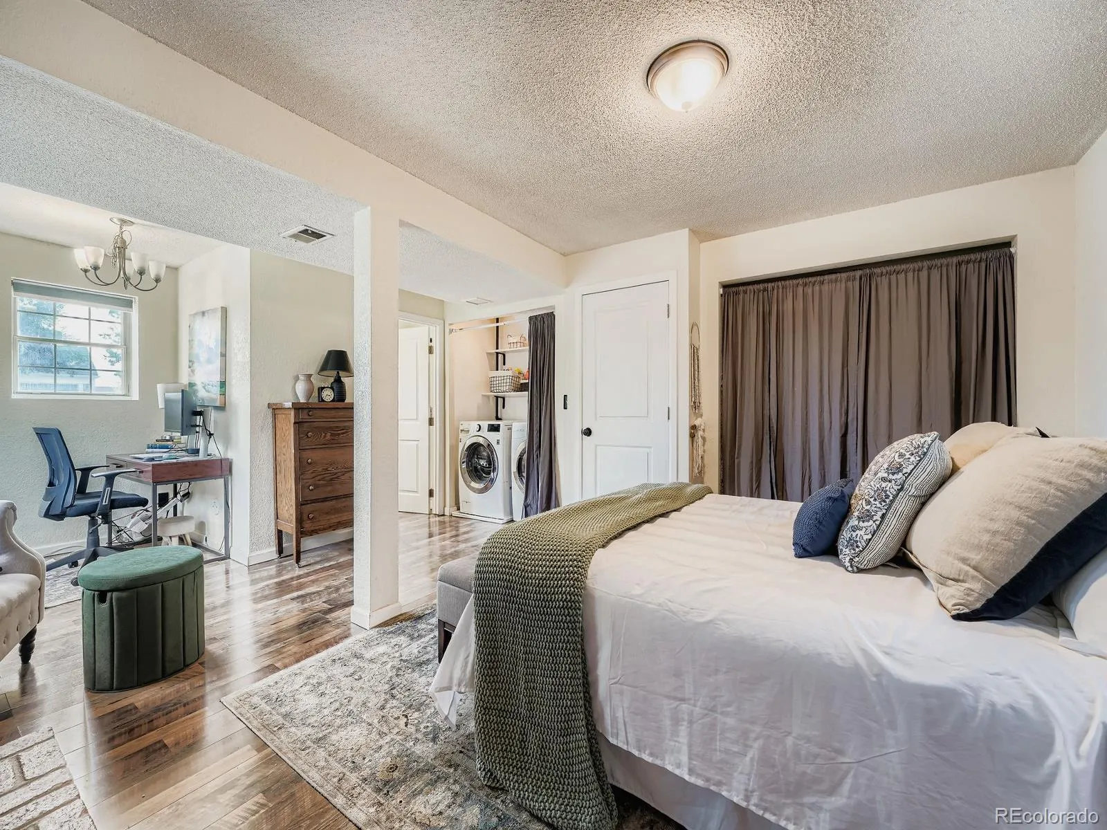 Updated home in the coveted Cherry Creek School District, close to Southlands! Garden-level basement with fireplace doubles as an additional bedroom with ¾ bath, sitting area, and wood-look laminate flooring. Fresh paint, carpet, updated fixtures, and neutral tile throughout. Living room features vaulted ceilings, bar seating to the kitchen, and sliding door to a huge yard with deck, patio, and mature trees. Upstairs offers spacious bedrooms—one with walk-in closet, the other with a full-length closet plus full bath with new flooring. Washer & dryer included. Move-in ready with endless possibilities!