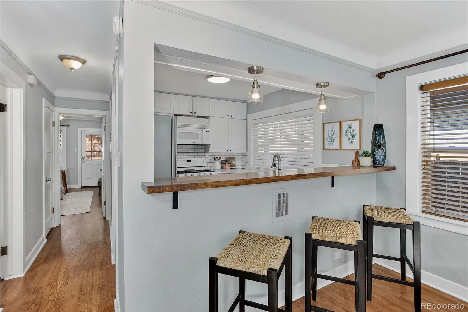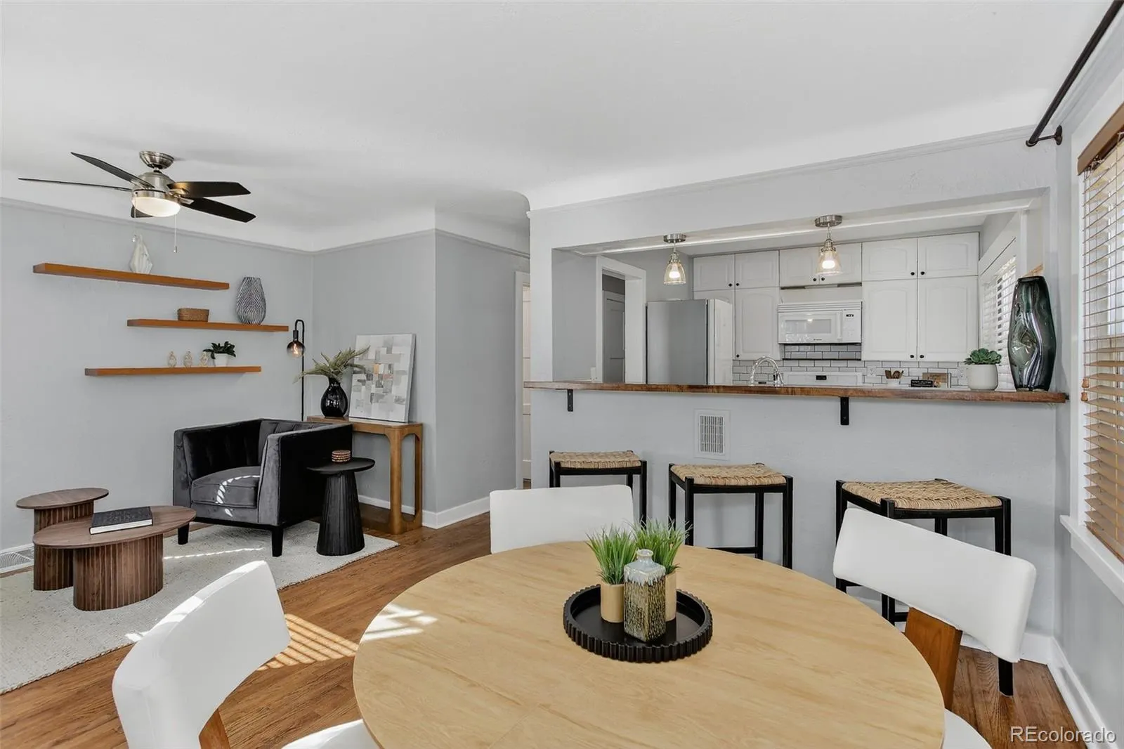 Welcome to this beautifully updated brick bungalow loaded with character and charm. From the moment you step inside, you’ll appreciate the inviting open floor plan, designed to maximize space. The fully renovated interior blends classic style with modern updates. The kitchen is open to the living area, creating a bright and functional space that’s perfect for both everyday living and entertaining. The bathroom is updated with a marble top vanity and open shelving. The 2 bedrooms are tucked away at the back of the home. The 2nd bedroom is perfect for a guest or could be used as an office for the buyer who works from home. The primary bedroom has a spacious closet and laundry area. Step outside into your own private backyard oasis — ideal for summer BBQs, relaxing evenings, or hosting friends. A large 2-car detached garage provides plenty of room for parking and additional storage. A single family house with a 2 car garage at this price-amazing! Newer water heater, roof and furnace. Located just minutes from Downtown, Cherry Creek, and shops and restaurants, this home offers the perfect blend of charm, convenience, and lifestyle. Don’t miss seeing this fabulous property.