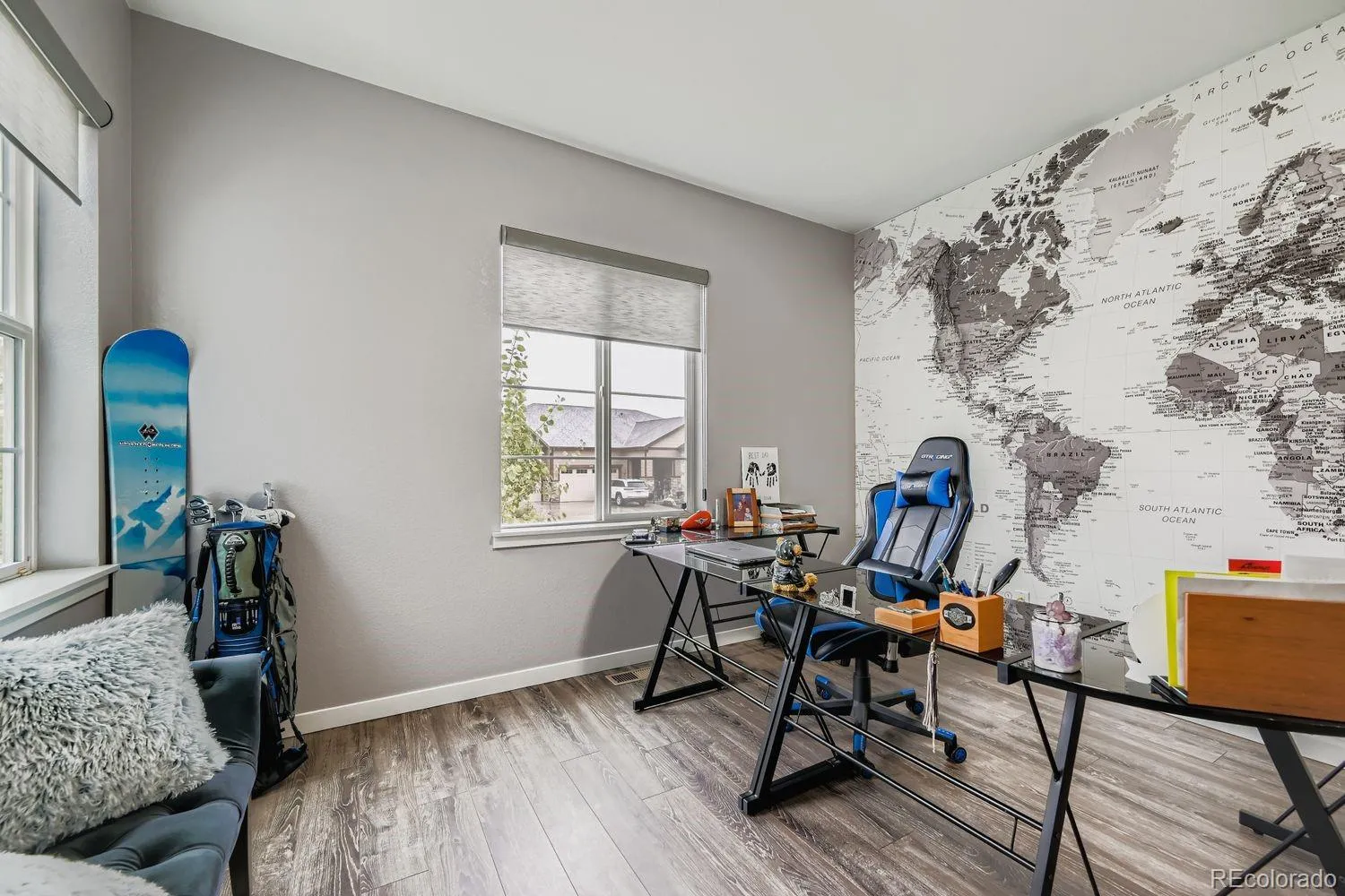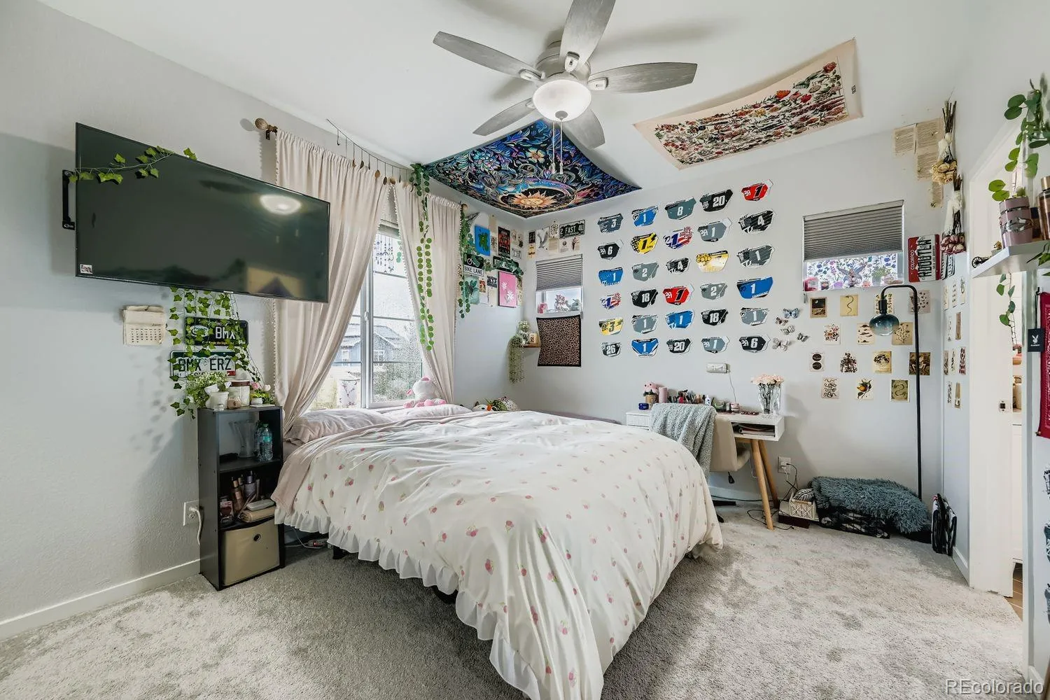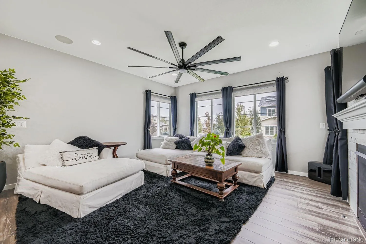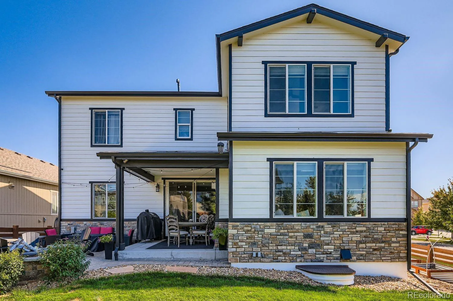 Set on a corner lot with sweeping mountain views, this Colliers Hill two-story combines space, style, and thoughtful updates. A bright two-story foyer welcomes you into the great room with a cozy gas fireplace and open dining area. The gourmet kitchen features granite counters, a large island, stainless appliances, and abundant cabinetry. The main level also offers a private study plus a bedroom with nearby 3/4 bath-perfect for guests or multigenerational living.Upstairs, the owner’s retreat impresses with a remodeled spa-like 5-piece bath and soaking tub. Two additional bedrooms each feature walk-in closets and full baths. The finished basement adds incredible versatility with a workout room, bedroom, 3/4 bath, and spacious great room.Outdoors, enjoy updated curb appeal, a covered patio, and a backyard designed for entertaining with mountain views as your backdrop. Added perks include a brand-new roof, owned solar, total home automation, a tankless on-demand water heater, and a heated 3-car tandem garage with epoxy floors-plus energy-efficient upgrades throughout.Directly across from The Overlook amenity campus-with community lounge, demo kitchen, fitness studio, and pool-this home delivers comfort, convenience, and a vibrant lifestyle near shopping, dining, and commuter routes.