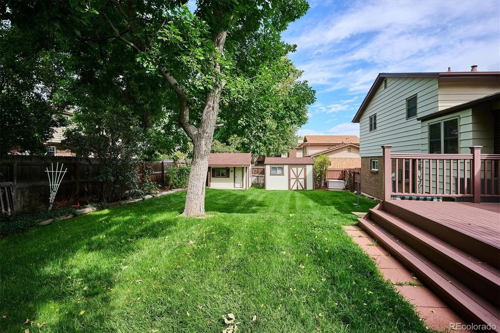 Welcome to this beautiful home in the sought after Southern Gables neighborhood. Sitting just a few blocks from Green Gables Elementary School, this home offers a variety of updates that includes professionally refinished hardwood flooring, new carpet, new interior paint, a fully fenced-in backyard, 2 sheds (one is a kids dream: playhouse), and central air all within this quiet community in the heart of Lakewood. Enjoy walking up to this house, passing a lush green front yard, greeted by a covered front porch, and entering into the house to find plantation shutters with a relaxing main level flow. Upon entry, you’re welcomed by a large living room, formal dining room, secondary dining area, and kitchen all on the main level. Travel upstairs to discover refinished beautiful hardwoods, a full bathroom, 3 bedrooms, and an ensuite bathroom that includes your own double-closet that accompanies the primary bedroom. All interior doors are new. Head outside to the backyard and find a private back deck, mature trees, a fully fenced backyard that includes 2 sheds, one that doubles as a fun playhouse, and plenty of space to entertain. Back inside, your lower level conveniently offers a laundry area with a 1/2 bath for your guests. And, when you think the tour is over, just round the corner you will see the lower level basement which offers a huge family room and additional (non-conforming) bedroom. Step back upstairs to the garage where there’s an oversized 2-car garage with an extra workspace. This home truly offers everything. Schedule you’re tour today and see why Southern Gables is such a great place to live!