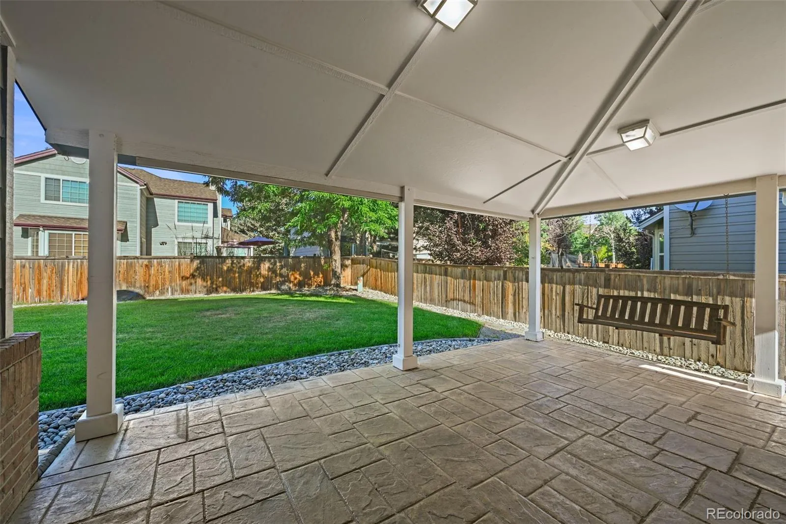 Enjoy a beautifully landscaped large backyard with a covered patio and stamped concrete ideal for outdoor dining or gatherings year round. The property sits within walking distance of community swimming pool, tennis courts, Pickleball Courts and trails, and is just minutes from grocery shopping, dining, and highly rated schools. Quick access to I-25 and C-470, everything you need is just minutes away.
