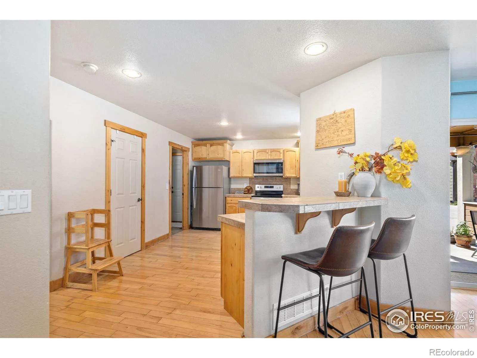 Investment Opportunity Knocks! WITH LEASE IN PLACE THROUGH June 2026 here is a worry-free property ready for you in every way. Step under the expansive front porch and onto the durable hickory hardwood floors which span nearly the entire main level. The living room features a cozy gas fireplace and is interconnected to the dining space and outstanding kitchen. With the included set of sleek stainless-steel appliances, breakfast bar, plenty of cabinets and a pantry this is a great place to cook up your favorite meal. Just off the attached garage is the laundry room with a drop zone for easy transition each and every day. Also on the main floor is a powder bathroom. Upstairs awaits the primary suite boasting a walk-in closet and full private bathroom. There are also two secondary bedrooms and a shared full bathroom on this upper level. In addition to the front porch there is a porch on the west side that provides another great outdoor space to enjoy. The unfinished basement awaits your own custom finishing and storage needs. Community features include an outdoor swimming pool, nice walking/biking spaces, and easy access to I-25 for regional commuting needs. This property is respectfully priced and pre-inspected for your confidence and convenience. Call today to schedule your own private tour.