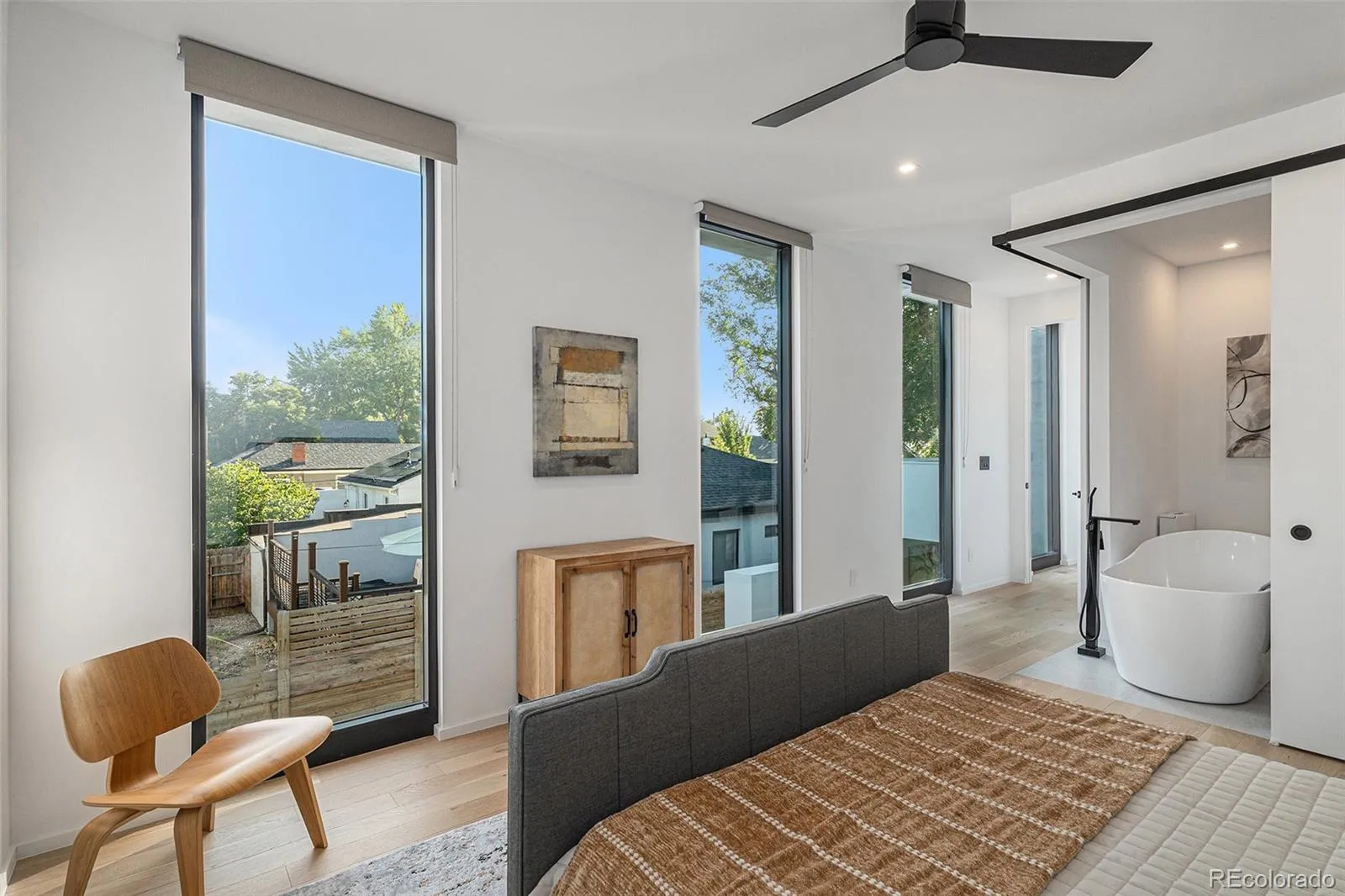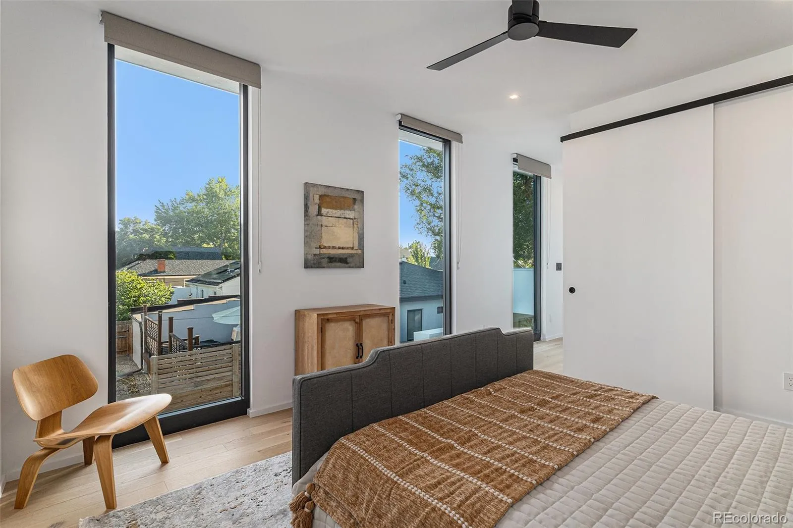This home is a modern marvel. Near new and barely lived in. Every detail was thought through from the true floor to ceiling glass, the level 4 drywall, screw less switches and outlets, to the gorgeous hardwood floors, Italian tile and floating sinks. Really the whole home is a work of art, including the ADU. The open concept floorplan with a 20′ stacked glass floor to ceiling panel opens the house to the ultimate in indoor and outdoor living. Frank Lloyd Wright would be proud. The 12′ ceiling office features a glass pocket door that opens to a view of the main patio and manicured grounds. The living room could double as a formal dining room, with a white oak floating staircase to the upper level as the main attraction. The kitchen is brilliantly designed with an 11′ island to host the party, integrated hardware free soft close cabinets, Fisher Paykel appliances and an amazing butler pantry with an additional refrigerator, full sized wine cooler, tons of storage, hidden microwave and a coffee bar for your espresso machine. The upper level has two en-suite bedrooms and the primary suite which again has floor to ceiling glass. The primary bath is open concept that can be closed off or gather the southern light from the massive windows, Italian tile flush floor shower, dual floating sinks and a stand-alone soaking tub. The basement has 10′ ceilings with an additional two bedrooms, a full bath and an awesome family room. Did I mention the 2.5 car garage with a fully separate 1 bedroom ADU to complete your compound? The ADU has all of the high end finishes of the main home including the same kitchen finish as the main house and it even has a roof top deck. The back yard features professional landscaping, a patio and a fireplace and designed to allow for an inground pool. There is a gas line plumbed for a grill. All of this is just a few blocks away from the vibrant South Pearl Commercial district, Platt Park and even Washington Park is an easy walk away.