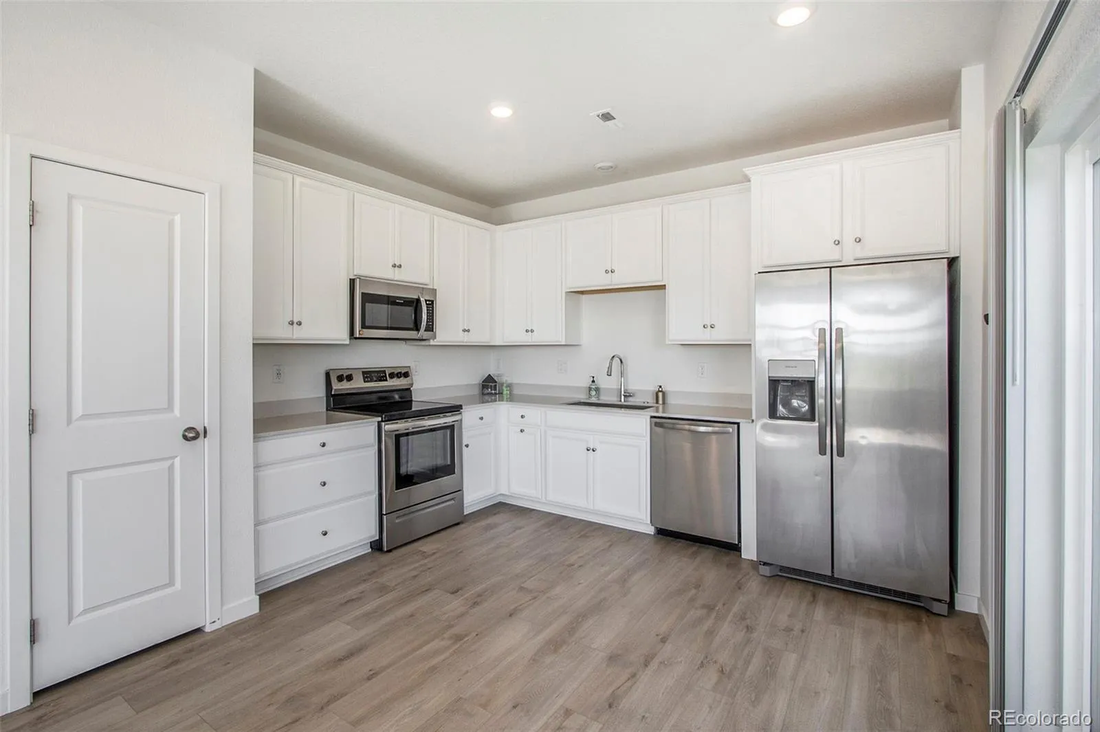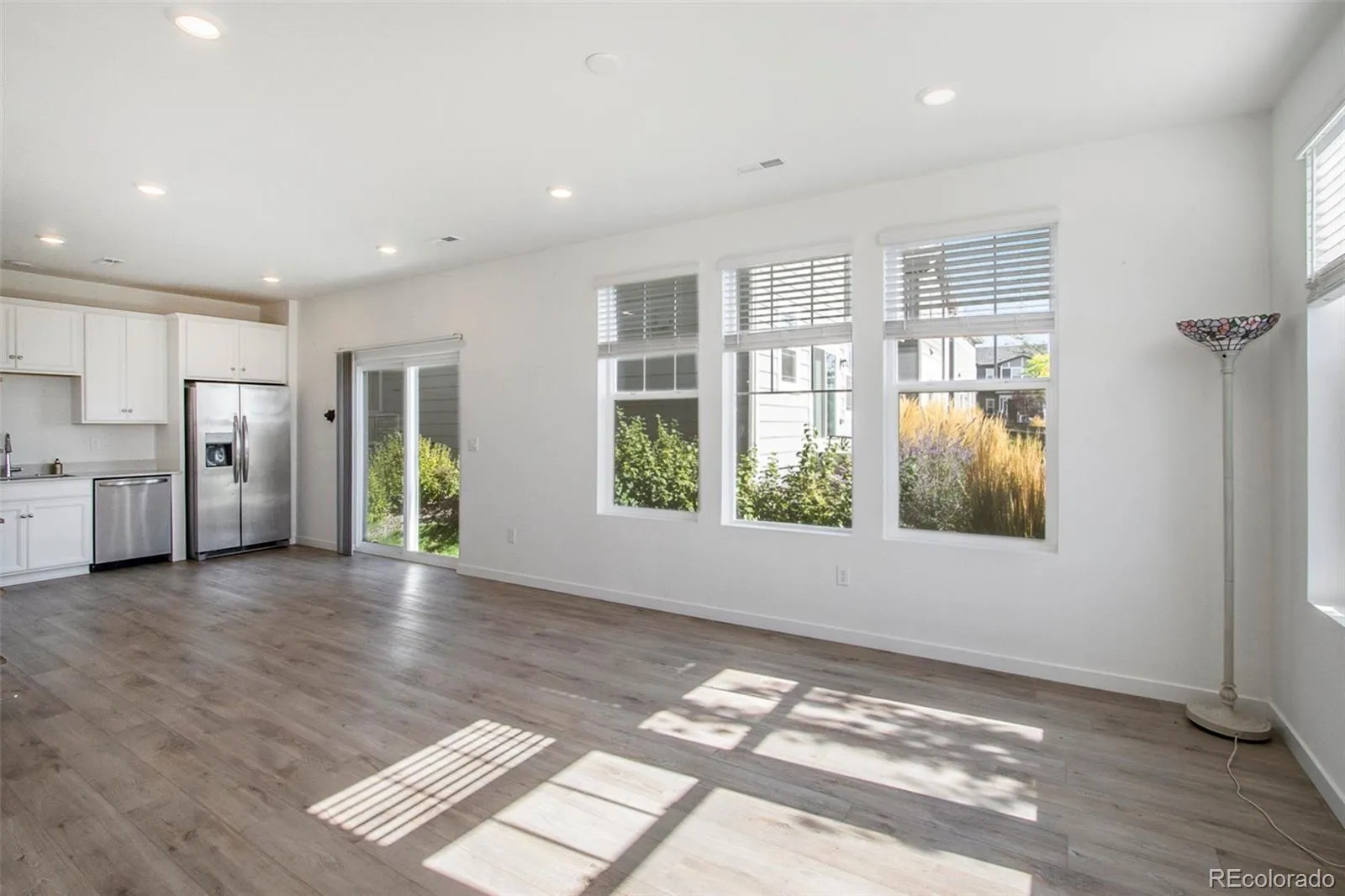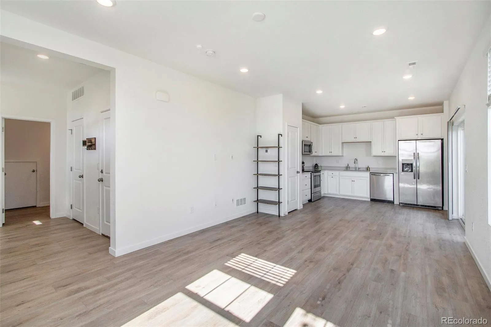 From the moment you arrive, the open green space in front of the home creates a serene backdrop, perfect for peaceful mornings and evening sunsets. Inside, a bright and open floor plan flows seamlessly from the living area into a modern kitchen with stainless steel appliances, a pantry, and durable plank flooring.