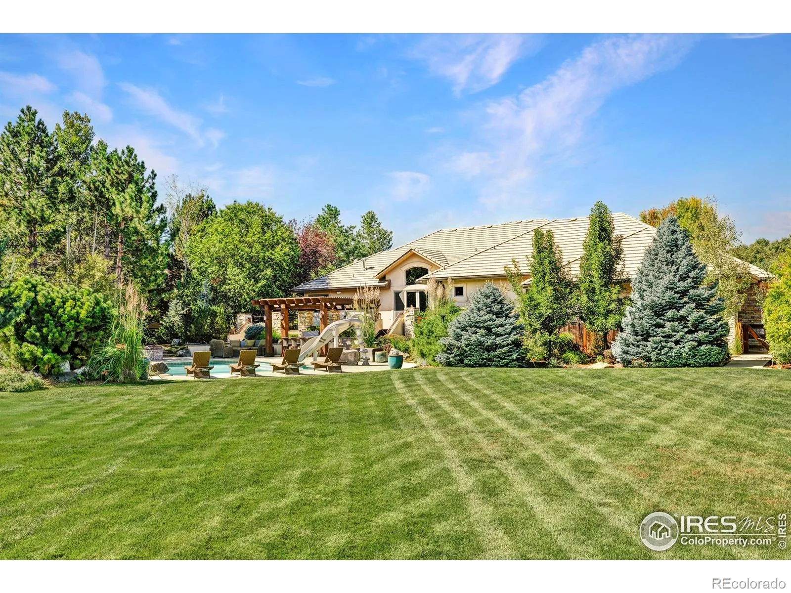 Set on 1.35 acres in Boulder’s White Hawk Ranch, 9022 Jason Court offers resort-style amenities and expansive living. This 8,512-square-foot, six-bedroom, seven-bathroom residence pairs privacy with connection, featuring sprawling lawns, a pool and sport court, and interiors anchored by a main-level primary suite with multiple spaces for gathering, entertaining, and retreat. A marble foyer sets the tone with timeless finishes and generous scale. To the left, a dedicated office enjoys floor-to-ceiling windows, while ahead, the formal dining room impresses with tall ceilings and French doors to the backyard. A serving area with a walk-in pantry connects to the chef’s kitchen, where two large islands-one with bar seating, the other with a six-burner range-create the ultimate culinary workspace. Custom cabinetry, a sunny breakfast nook, and sinks overlooking the grounds complete the kitchen, which flows into the living room with stone fireplace, built-ins, and a wall of windows. Hardwood floors extend throughout the main level, including into the private living quarters. The primary suite features a fireplace, sitting area, spa-like bath with dual vanities, soaking tub, walk-in shower, and an oversized closet. Two additional en suite bedrooms, a powder room, and a mudroom with custom storage and laundry facilities complete this level. The lower level is designed for recreation, with a vast rec room featuring fireplace and wet bar, exercise room, powder room, two bonus rooms, and a private guest suite. Two more bedrooms share a full bath. Outdoors, a deck overlooks the fenced yard with pool, hot tub, outdoor kitchen, sport court, gardens, and terraces. A circular drive, motor court, and three-car garage add convenience and curb appeal. Located on a quiet cul-de-sac, this estate combines neighborhood charm with proximity to Boulder and Lafayette’s shopping, dining, schools, and trails-an exceptional opportunity to enjoy Colorado living at its most refined.