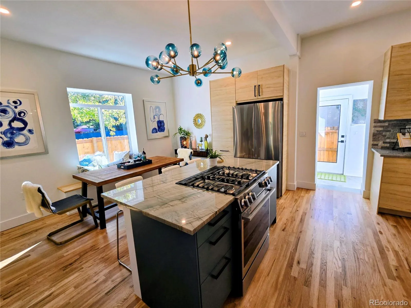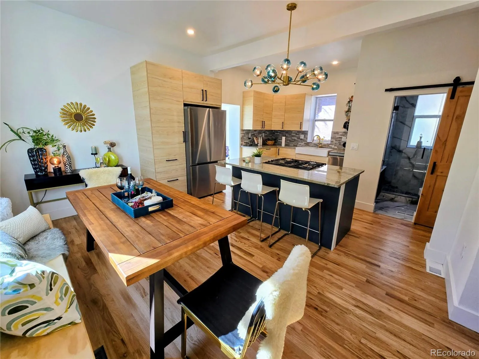 Welcome to this re-imagined Urban Contemporary Dutch Colonial! Situated on a lush quiet corner lot in Wash. Park, this fabulous sophisticated gem will not disappoint! Enjoy Autumn nights on new front deck. Original Victorian front door opens into a tiled formal entry with coat closet and stunning chandelier. The 12 foot soaring ceilings thru-out and natural stained brand new oak floors give this house a light spacious feeling. Center hallway with dimmable crystal sconces add sheer elegance as you make your way to the back of the house. The elegant living room is the perfect place to cozy up to the fireplace and stone hearth. Opening into the expansive chefs kitchen and formal dining area, friends and family gatherings come to mind. The center island offers a new LG gas stove, large b-bar, spectacular quartzite countertops and stone splash. Tons of storage, LG appliance suite & stunning custom pot rack! Dining room can seat up to eight people and has a custom built-in bench. Tiled Sun/mud room has another custom bench and new back door to patio. Main floor 3/4 bath is striking with designer details and barn door. Dual barn door slides either way to close off basement or laundry room. 2nd floor has 3 generous sized bedrooms, tons of closets space, lush new carpeting, & tall ceilings. Master bedroom has a nook for a king sized bed w/ two built-in sconces for reading. Sumptuous 2nd bath features striking custom finishes, deep soaking tub, dual vanity, gorgeous tile. Front bedroom has dual closets and a vintage Austrian Crystal chandelier! Adorable child’s room or study completes the 2nd floor. Basement is simply adorable with seating nook and bookcase, perfect for late night tv viewing. A cozy office has egress window and built-ins as well. Back yard is low maintenance with new storage shed and concrete patio and steps. All systems completely updated including new roof, gutters, landscaping, windows & radon system. Walk to all the fabo amenities Wash Park Has to Offer!