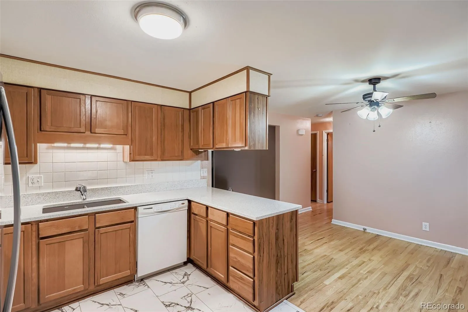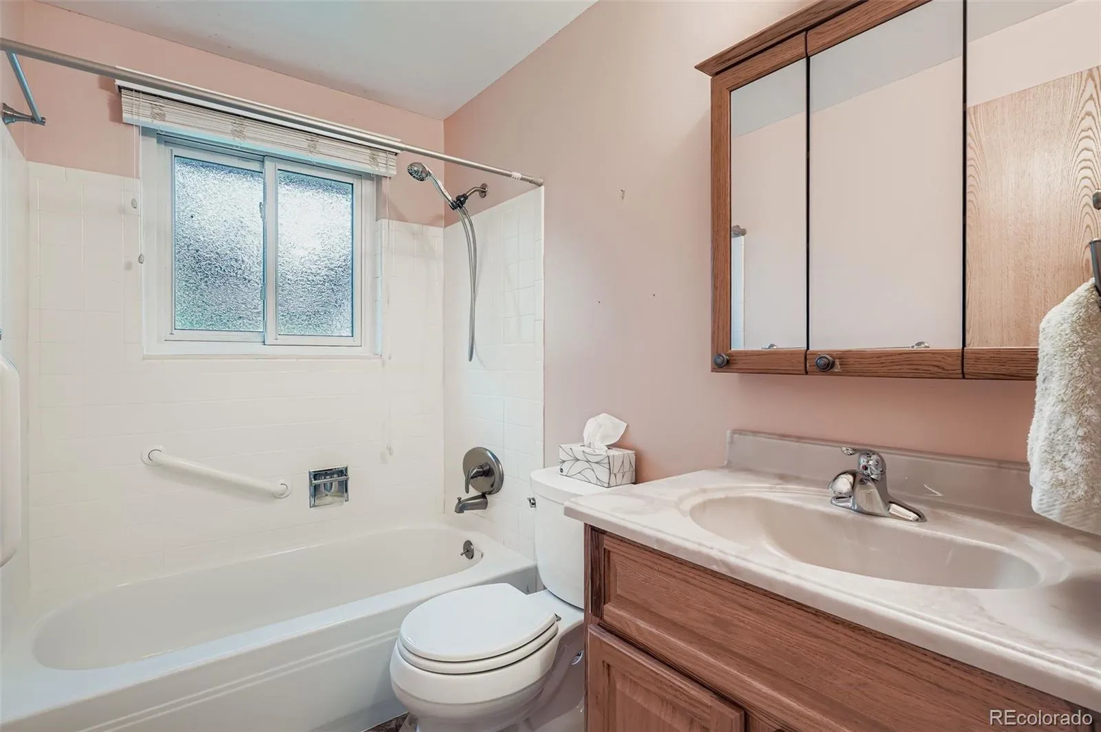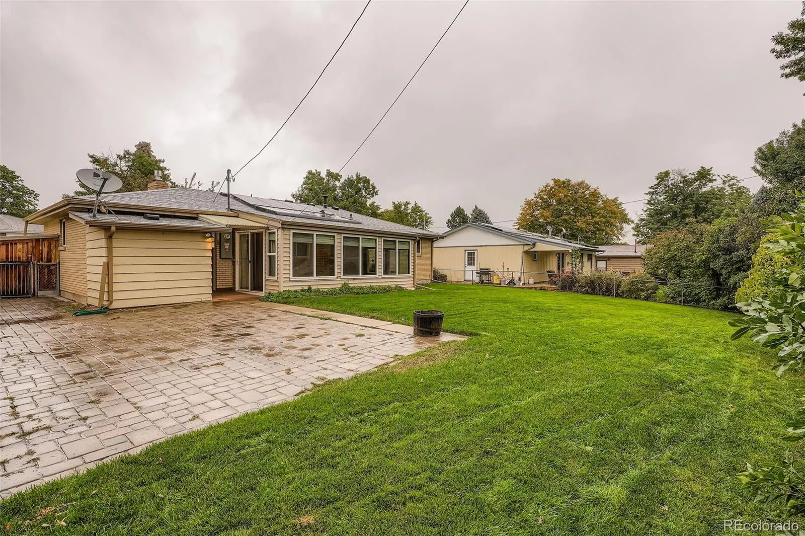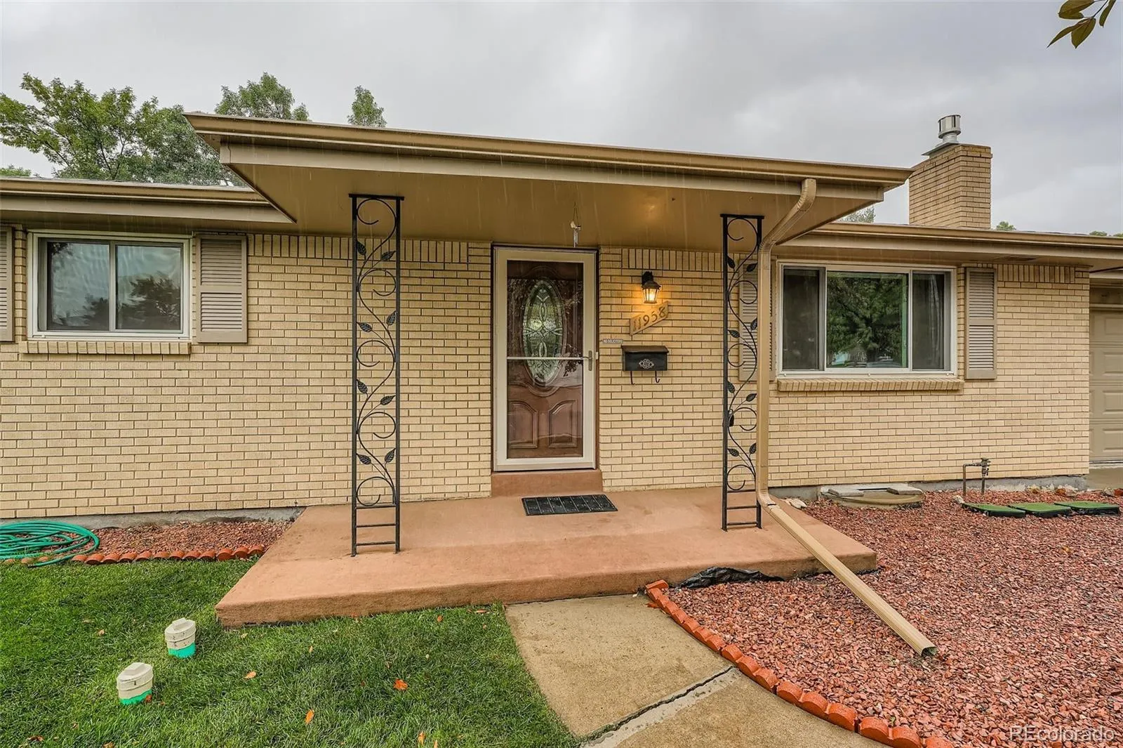 Welcome home to this solid brick ranch close to Olde Town Arvada in the desirable Allendale area of West-Central Arvada! Warm and inviting one-level living that is move-in ready! Gleaming HW floors throughout the formal areas of the main level! The inviting front living room has a large window and a built-in bookshelf near the entry and coat closet! Upgraded kitchen with newer traditional-style cabinets plus quartz counters! The included kitchen appliances are the range/oven, refrigerator and dishwasher! The kitchen overlooks an enclosed patio/sunroom offering a wonderful place for conversations and coffee! A small formal dining room offers an area for entertaining guests! The main-level primary bedroom includes dual windows and a ceiling fan! A second main-level bedroom is adjacent to the full hall bath! A large open family room in the basement has a gas FP and traditional paneling! Two non-conforming bedrooms in the basement share a three-quarter bath! The full-size side-by-side washer and dryer are included! There is also a large basement utility room that also has additional storage! Enjoy time in private park-like yard with a large cobblestone-like patio and an attached shed! Single car garage plus a small carport! Solar panels, too! You will fall in love with this inviting, well-maintained home and its cozy mauve paint scheme! Estate sale. Property is being sold AS-IS.