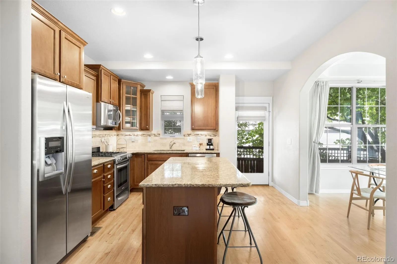 This cheerful home is situated in the middle of all the wonderful amenities of Central Park. A charming lot, nestled in a tree-lined courtyard provides the perfect balance of a social yet private location. This popular floor plan has blonde hardwoods that shine throughout the main level. An efficient kitchen boasts a true prep island to make cooking a joy and creating the perfect setting for entertaining, especially with the dual basin sink placed under the window, where a sink belongs. The gas fireplace is a statement that sets the tone for festive holidays or a quiet evening in. Upstairs, find two bedrooms that share a tidy full bath and a convenient laundry center. The primary suite provides a sunny retreat with architectural details, en-suite bath with ample natural light & an awning window to let fresh air in all year round, plus a closet completed by Elfa. Enjoy the versatility of the finished basement, built to accommodate an office, homework or gaming space, a theater or a rumpus room and impressive storage options. The cozy bedroom in the lower level is adjacent to a fourth bathroom with bright, clean finishes. The yard is a hidden gem not common for Wonderland homes in the area. Bring your gardening gloves or just enjoy time outside under the shade or the stars. All this, just steps from Westerly Creek Open Space, Central Park, Rec Center, Stanley Marketplace, and Eastbridge restaurants & shops. Buyer to verify schools, 80238 is a choice neighborhood.