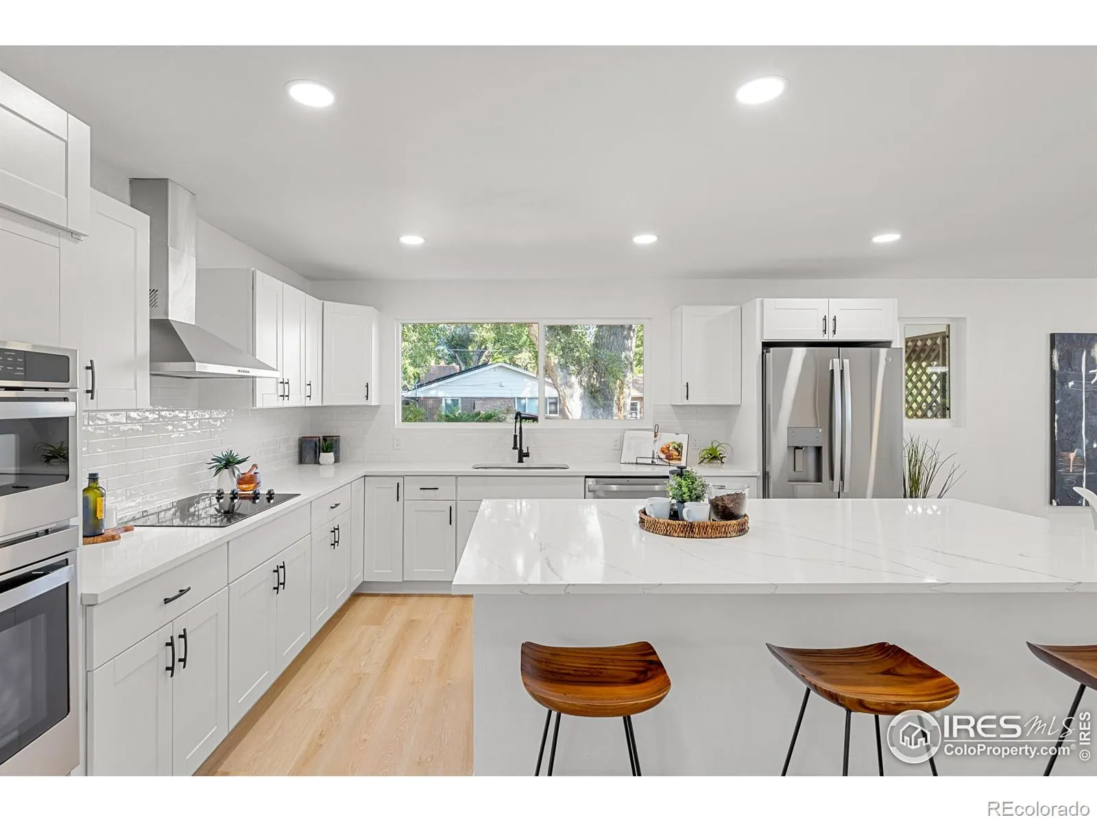 Dreaming of a fully remodeled home on a quiet Cul-de-sac in an established neighborhood, just steps to a park, near restaurants, coffee shops, and shopping? This is it! Welcome to this elegantly updated ranch-style home in the heart of Littleton. Sitting on a desirable corner lot, the home’s unique exterior immediately stands out. Inside, you’ll be impressed by the open-concept layout, seamless flow, and abundant natural light. The spacious living room is both stylish and inviting, featuring beautifully designed gas fireplace and modern slatted accent panels with LED lighting. The dreamy kitchen boasts sleek white cabinetry, stunning quartz countertops with waterfall edges, high-end stainless steel appliances, a designer backsplash tile, and a pantry for extra storage. An everyday dining nook and a large formal dining room provide flexible spaces for meals and entertaining. The primary suite is a true retreat with large windows, a walk-in closet, and a luxurious en-suite bath. A secondary bedroom and an elegantly updated full bath complete the main level. Downstairs, the finished full basement offers endless possibilities with a generous family room, wet bar, spacious bedroom, stylish full bath, and a flexible office or potential additional bedroom. The backyard is one of the largest in the neighborhood and perfect for enjoying Colorado’s beautiful days. Relax under the covered patio, surrounded by mature trees that offer natural shade, or bring your landscaping dreams to life with the ample outdoor space. Large two car garage and generous driveway. Everything NEW! Enjoy nearby Ketring Park and Bemis Library, visit the Littleton Historical Museum, or explore the many dining options in Downtown Littleton. Commuters will love the easy access to light rail, Highway 285, and C-470. Welcome home!