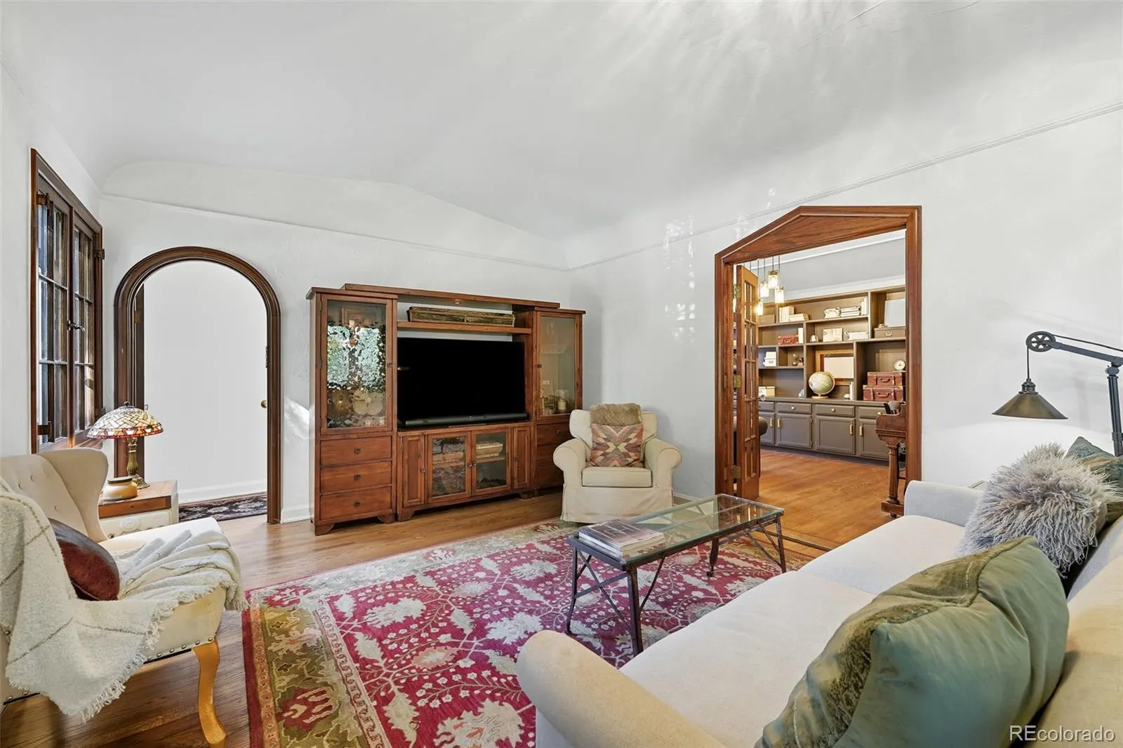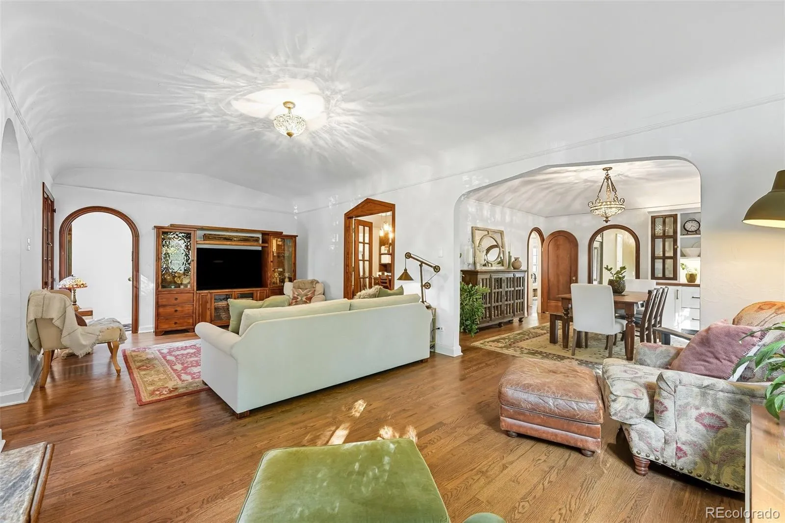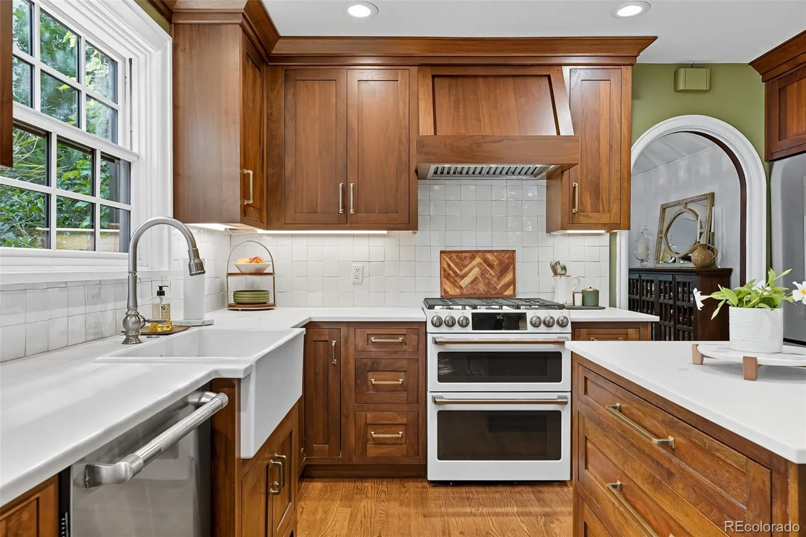 Enter into a lifestyle of refined elegance and sustainable luxury in this exceptional Tudor nestled in the heart of South Park Hill. This home has been meticulously cared for and thoughtfully redesigned to offer the perfect marriage of old world character with modern functionality & design. Each spacious room flows beautifully to the next, offering expansive windows, soaring ceilings, meticulous woodwork, period details, and elegant hardwood floors that enhance the open, airy ambiance. The kitchen is the true heart of the home. Recently renovated to perfection in 2023, you’ll adore the custom walnut cabinetry, handmade zellige tile backsplash, 6-burner range with hood, dbl oven, marble countertops, farmhouse sink, kitchen island for additional storage, and a stunning eat-in nook complete with seating bench and new windows overlooking the lush garden. The uniquely spacious primary suite is on the main floor offering coved ceiling, stunning walk-in closet with perfect built-ins, and calming views of the manicured yard. The private bathroom is your zen oasis offering heated floors, steam shower, marble flooring, designer tile, dual vanity, and beautiful fixtures. Rounding out the main level is a spacious secondary bedroom, which doubles as a home office complete with french doors and built-ins and a powder room for guests that is dripping in style! The basement is finished to perfection, offering two more spacious bedrooms, hardwood floors throughout, lovely Jack n Jill bath, and two additional rec rooms to use as you wish as guests quarters, media room, game room and more. The whimsical outdoor space is a sight to behold with its lush landscaping, gorgeous concrete paver patio, cozy fireplace for entertaining on chilly evenings, pergola-covered outdoor living space, and mature trees offering ultimate privacy, and plenty of space to run and play. The location cannot be beat, just blocks to Bistro Vendome, Lucina Eatery & Bar, Cake Crumbs, Scoops, and so much more.