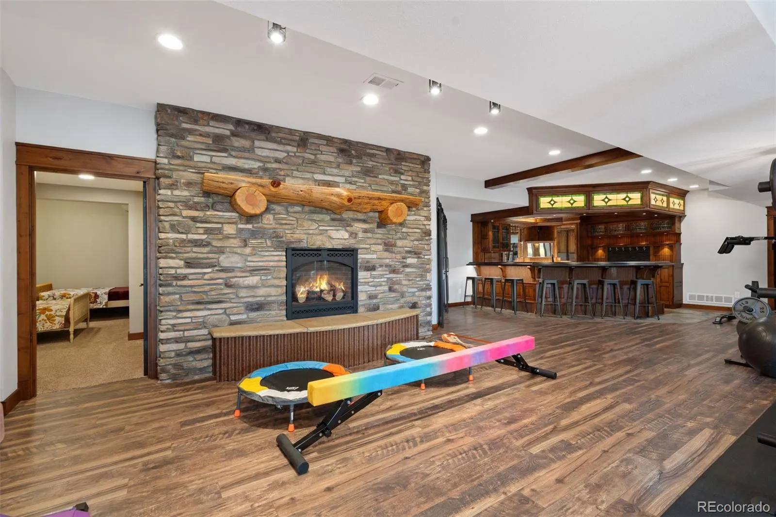 Upstairs offers a charming bedroom with an attached sitting room/playroom and en-suite bath. The finished basement provides an entertainer’s paradise with a spacious family room (currently a gym), walkout doors to spa, custom full bar, luxury home theater, wine cellar, two large bedrooms with en-suite bathrooms, bonus room, and half bath.